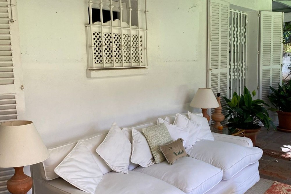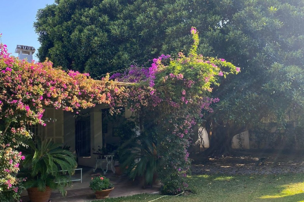 - Charming Villa for Renovation in Casasola Nestled in the serene urbanization of Casasola, this independent villa offers a unique investment opportunity just a stone's throw from the pristine beaches of Guadalmina Baja, because the Villa could be extended onto a new big and modern villa or the plot could also be divided in 2 plots and buld 2 Villas, 1 in each resulting plots. Situated on a generous 2,085 m² plot, the property is perfect for those looking to embark on a renovation project and create a dream home or lucrative resale opportunity. With the potential to divide the plot and construct two separate villas, the possibilities are endless. The villa boasts a spacious 200 m² built area, featuring an entrance hall, a large living-dining room, three double bedrooms, and an office. The kitchen comes with an additional service bedroom, complemented by two bathrooms and a guest toilet. Outside, you'll find a large garden with mature trees, a private pool, and charming pergolas and covered terraces for outdoor relaxation. Located just 200-300 meters from the beach and a short drive to the Guadalmina golf course, this property combines tranquility with convenience. Whether you're looking to design a permanent residence or a holiday getaway, this villa offers endless potential in a sought-after location. Don't miss out on this fantastic investment opportunity!
