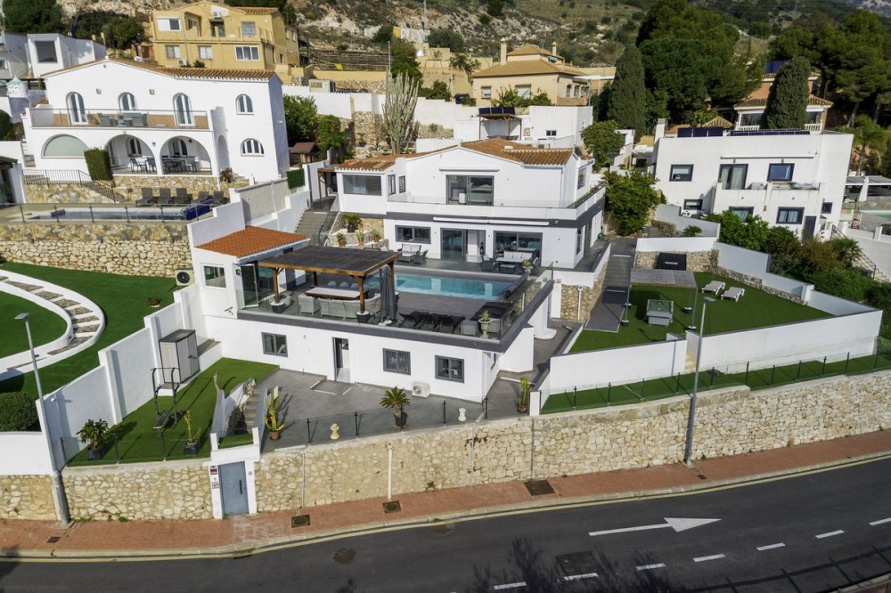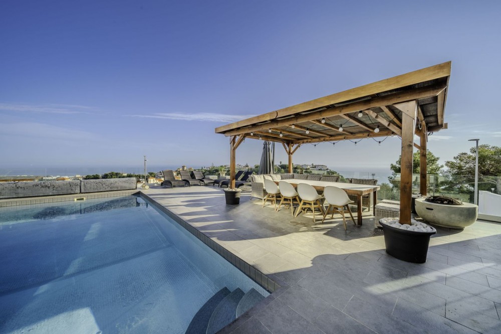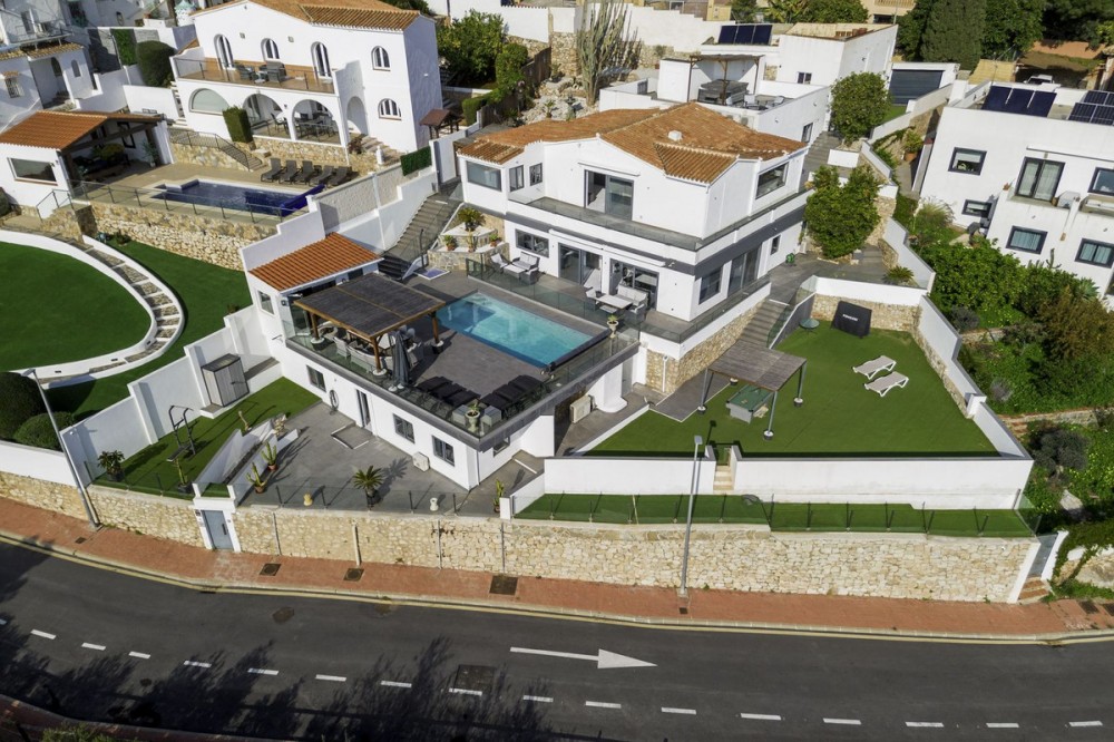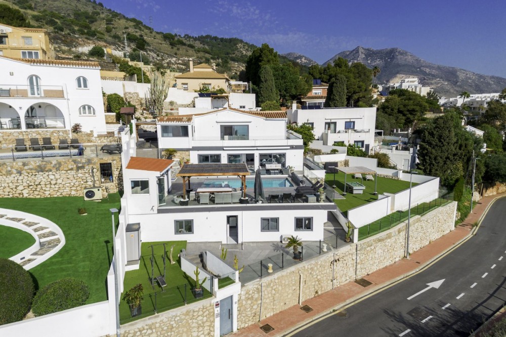 - "*Exclusive Villa with Tourist License in the Best Area of Benalmádena* We present this magnificent villa located in one of the most sought-after areas of Benalmádena. Set on a *1,048 m² plot* with a built area of *287 m²*, this property stands out for its spacious design, luxurious features, and unique potential—perfect for enjoying the Mediterranean lifestyle or as an investment opportunity. *Layout and Spaces* The villa boasts *6 bedrooms, each with its own en-suite bathroom, plus an additional **guest toilet by the pool* for added convenience. One of the bedrooms is fully independent, designed as a self-contained apartment with its own *private kitchen* and *separate entrance*, making it ideal for long-term rentals or hosting guests with total privacy. Inside, the villa features a *spacious kitchen integrated into the living room, perfect for entertaining and family gatherings, as well as an **outdoor kitchen on the terrace, designed for alfresco dining with breathtaking views. In total, the property offers **three kitchens*. *Outdoor Areas and Entertainment* The villa’s exterior is a true oasis of luxury. It includes a *heated swimming pool, multiple chill-out zones strategically placed throughout the property, and a **jacuzzi with panoramic views of the sea and the iconic Buddhist stupa*. Every detail has been carefully crafted to provide relaxation and take full advantage of the sunny Costa del Sol climate. *Parking Facilities* The property also features excellent parking options, including a *closed garage for two cars* and an *open space that can accommodate a third car*, ensuring plenty of room for vehicles. *Investment Opportunity* This villa comes with a *tourist license*, making it an excellent choice for generating income through vacation rentals. Additionally, the independent apartment can be rented separately for long-term stays, ensuring an additional source of revenue. *Prime Location* Situated in one of the best areas of Benalmádena, the villa enjoys *sun all day long, unbeatable views of the sea and the stupa, and is within **walking distance to the charming Pueblo*, offering convenient access to local shops, restaurants, and services. Completely renovated in *2018*, this villa seamlessly blends timeless charm with modern comforts. It is the perfect choice as a permanent residence, vacation home, or a profitable investment on the Costa del Sol."