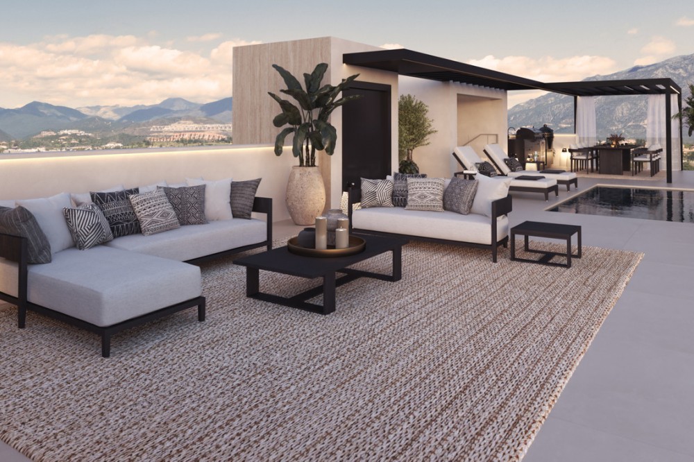 - New Development: Prices from €3,990,000 to €3,990,000. [Bedrooms: 4] [Bathrooms: 5] [Built size: 396m2]. We present these exclusive villas, a development of 7 villas in a gated complex with 24-hour security, within walking distance to the beach and Puerto Banús. These residences represent the pinnacle of architectural elegance and offer an unparalleled lifestyle. Each villa has been designed by top professionals, offering high-quality materials and luxurious amenities. With a blend of contemporary lines and classic elegance, the villas seamlessly integrate into their surroundings, providing a serene oasis close to the sea and local attractions. The villas feature a special collaboration with BANG & OLUFSEN to provide a superior sensory experience in image and sound. The main entrance connects to a spacious living and dining room, separated by a double-sided fireplace. The kitchen, equipped with the prestigious BULTHAUP brand and Siemens appliances, is ideal for cooking enthusiasts. The outdoor area includes a garden with a pool of varying depths, a Pool Bar, a waterfall from the terrace, and a covered dining area. The upper floor houses a master bedroom with a walk-in closet and en-suite bathroom, along with two additional en-suite bedrooms. The solarium features its own pool and barbecue area. The basement includes a bedroom for guests or staff, a multi-purpose area, and a laundry room. The villas also feature advanced technologies such as underfloor heating, an aerothermal system, an electric vehicle charging point, LUTRON home automation, an integrated sound system, and an elevator.