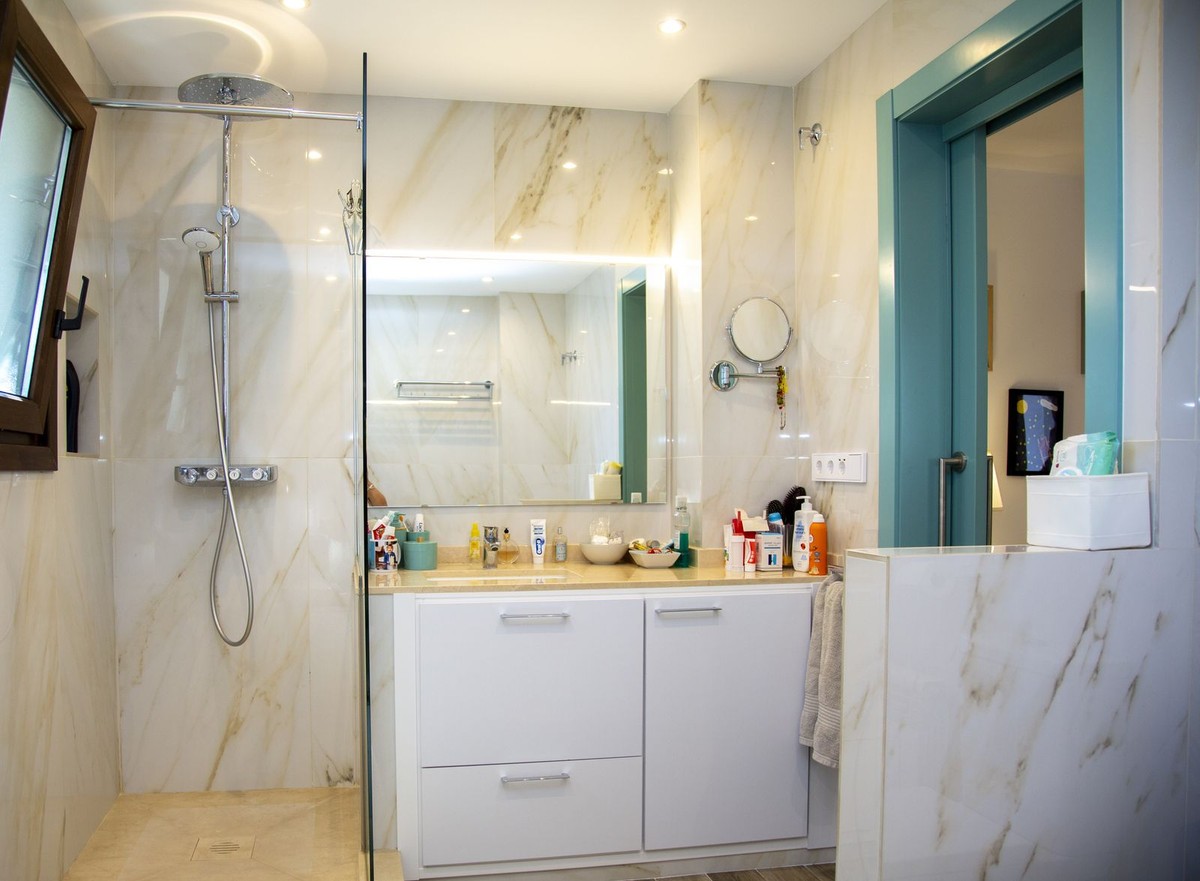 - Charming villa in La Cala Golf area. Villa with 6 bedrooms with 4 bathrooms and toilet. The property consists of 575 m2 built, as well as charming outdoor spaces, such as porches, terraces, patios totalling 144 square metres, and gardens throughout the property to enjoy different sensations, environments and views. The property is situated on a plot of 10.000 m2, where there are, apart from the house, wide spaces to enjoy different activities: the swimming pool area of 12 metres long, surrounded by a large bermudagrass lawn, to swim, sunbathe and relax or practice some sport on the high quality tennis court with night lighting . A building of 85 m2 independent of the house, formerly used as stables, is now converted into an office and workshop equipped with all the machinery and tools necessary for the maintenance of the estate. This building, if desired, could easily be converted into a guest or staff house. The property has splendid gardens all around the plot. The property is distributed on two floors: on the ground floor, there is a large entrance hall with double height and wooden coffered ceiling, a guest toilet, the dining area, kitchen, office and living room. In the west wing there is a bedroom with bathroom ensuite, dressing room and direct access to the porch and garden and 2 bedrooms with a bathroom. In the east wing there is a bedroom with bathroom ensuite and private terrace with pergola, ideal for guests and the garage with space for two cars. All around the house there are different terraces, porches and designer patios. On the upper floor, going up the stairs, with a spectacular coffered wooden ceiling in the form of a tower, there is a large hallway that leads to 2 bedrooms with access to the terrace, a bathroom and a large office/library room that can be used for different purposes depending on the needs. In this property you will find everything you need to be able to relax, work from home if necessary in a private and quiet way or simply exercise at home surrounded by nature. As you walk through the property you will discover charming corners and carefully decorated, making it incredibly cosy. If you are looking for a property with these characteristics, do not hesitate to contact us and make a visit. The property has photovoltaic panels that provide a self-supply of 50% of the total energy consumed during the year, practically during the day. 10 min La Cala de Mijas with its amazing beaches on the Mediterranean Sea and all the necessary services. 20 min by bike if you want to exercise at the same time. 5 min to La Cala Golf Resort, for those who like to practice this sport or simply go to the SPA area or to the restaurants and leisure areas. 5 min to Santana Golf 10 min to Mijas Golf 5 min to equestrian facilities 10 min to international schools ( English and German) 15 min to Fuengirola. 30 min Marbella, Puerto Banus 25 min AGP Malaga, Malaga International Airport 30 min Malaga City