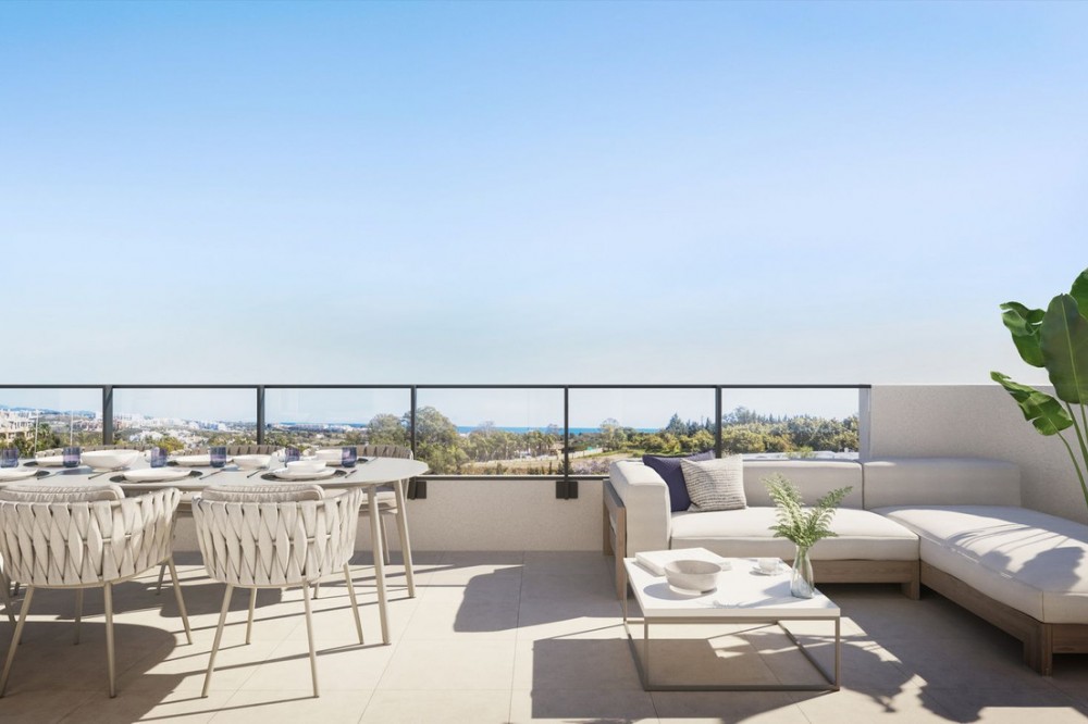 - Move-in Ready Penthouse in Aranya, Estepona Discover this exceptional penthouse in the Aranya development, located in sunny Estepona. This property features three bedrooms and a spacious sun-oriented terrace, perfect for enjoying the Mediterranean climate and panoramic views. The penthouse comes with a private parking space and an individual storage room in the basement, adding to its convenience and practicality. Prime Location and Easy Mobility Thanks to its strategic location, you can easily reach the beach with an electric bike and relax at the charming chiringuito Sonora Beach. The exclusive Laguna and Estepona is also just a short distance away, offering a variety of shops, restaurants, and beach clubs. Combine luxury living, an ideal location, and modern amenities in this penthouse that promises to be a dream home for anyone who values comfort and style.