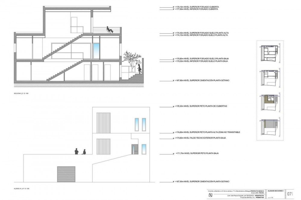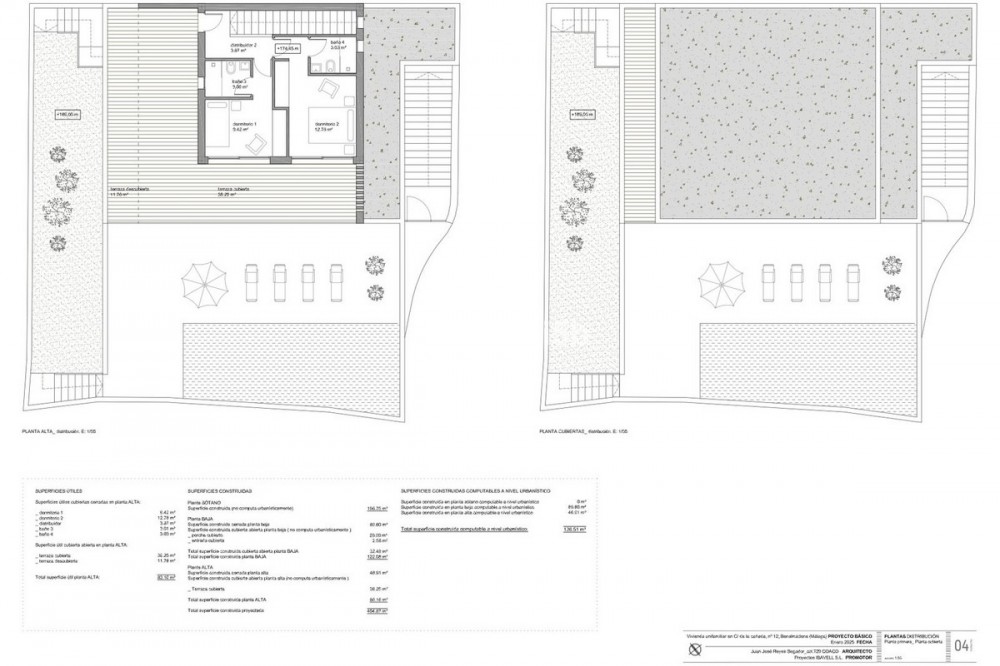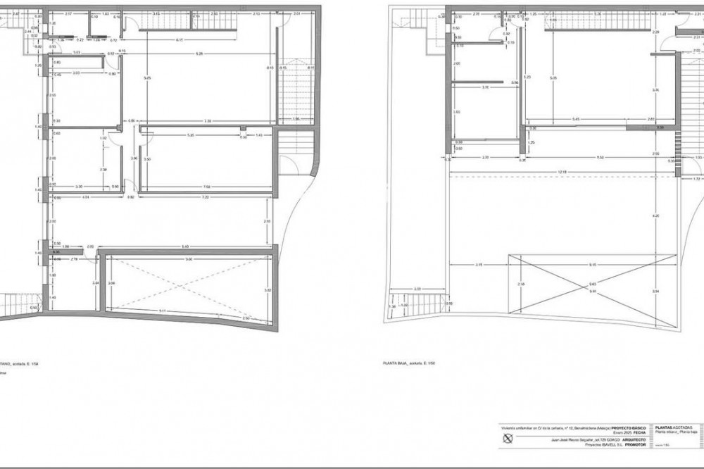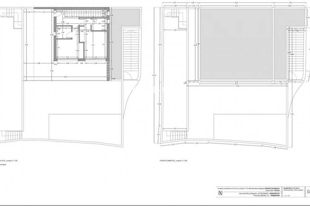 - Building plot with project in Rancho Domingo, Benalmádena Pueblo. Very attractive location on a corner plot at the end of a dead end street close to the village with all kinds of amenities. The project which is ready for the building license consists of a detached villa with private swimming pool and garage. It is developed to have basement, ground floor and first floor, with a garage for two vehicles and a swimming pool. It has been oriented so that the main views are directed to the points where there are no buildings, thus increasing the feeling of privacy. Basement level with gym, storage rooms, installation room, ironing room, wine cellar, bathroom 1, laundry room, garage and patio. Total usable area of basement 223.97 m2. Ground floor level with living room, dining room, kitchen, master bedroom, bathroom 2, dressing room, toilet, hallway, covered entrance, covered porch and swimming pool. Total usable area ground floor 212.43 m2. Closed constructed area on ground floor 89.60 m2. First floor with bedroom 1, bedroom 2, hall, bathroom 3, bathroom 4, covered terrace and open terrace. Total usable area first floor 83.10 m2. Closed constructed area on the first floor 46.91 m2 Total projected usable area 519.50 m2. Total built area computable at urban planning level 136.51 m2. The planned building is located in a consolidated urban environment of the development. The plots in the area are either built or in the process of being built.