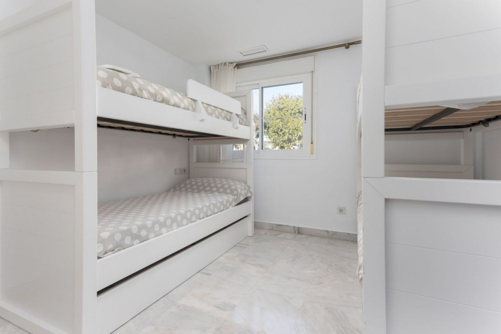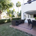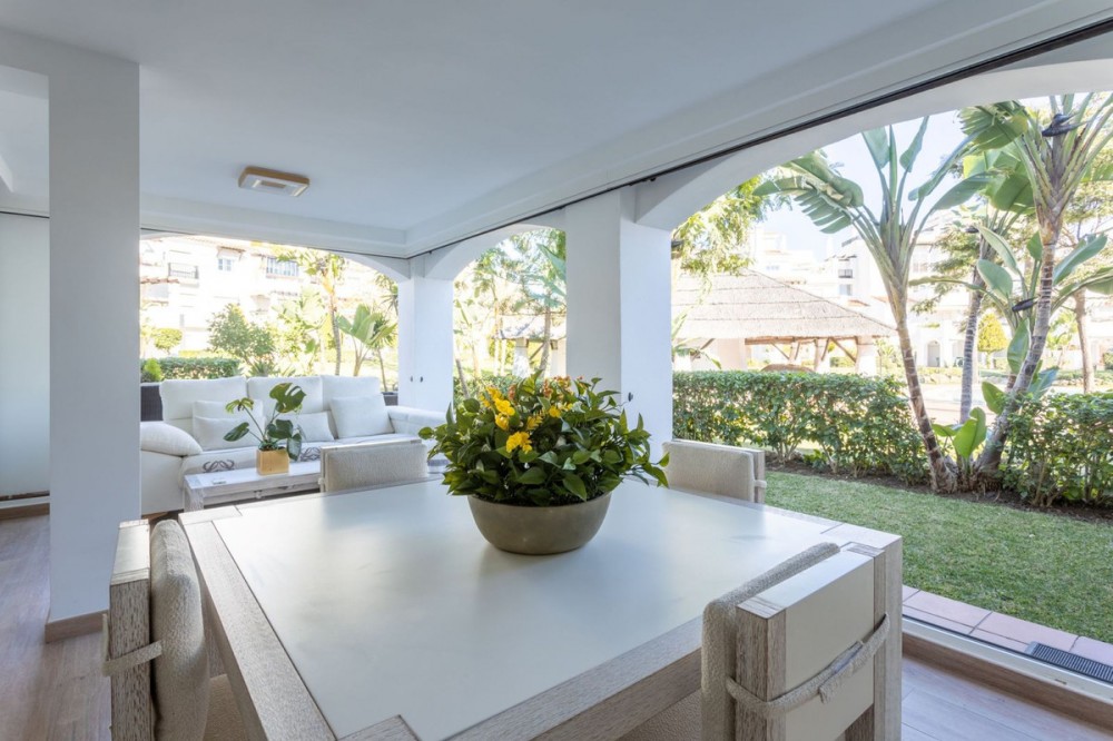 • Discover luxury and comfort in this exclusive ground floor apartment in the prestigious urbanization of Las Adelfas!. Located on the seafront promenade of San Pedro de Alcántara, this spectacular apartment offers you the opportunity to live just a few steps from beach bars, restaurants and just 4 minutes from Puerto Banús. The gated community has 24-hour security, large gardens cared for in detail and two impressive lake-type communal swimming pools, ideal for enjoying the Mediterranean climate. This corner property is one of the largest in the urbanization, with 240 m² built that are distributed in an elegant entrance hall, a spacious living-dining room, and a glazed terrace overlooking the garden and pool. The kitchen is fully equipped and renovated, and the five bedrooms offer maximum comfort, highlighting three en-suite bedrooms, two of them with direct access to the main terrace. In addition, it has two parking spaces and a storage room with direct access by elevator. Built in 2003, this well-maintained apartment is ideal for families or as an investment. With adapted access for people with reduced mobility, electric heating and air conditioning, this home offers all modern comforts. Don't miss the opportunity to live in an exclusive environment with all the facilities at your fingertips. Come and see your new home in Las Adelfas! The kitchen and bathrooms are completly refurbished.