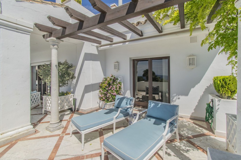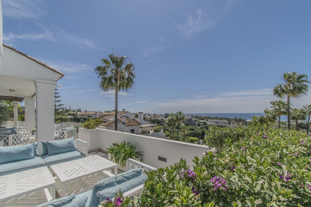 - GREAT LUXURY PROPERTY IN MARBELLA WITH SEA VIEWS Spectacular luxury property with sea views established in one of the best residential areas of Marbella, at the foot of Sierra Blanca just a few minutes from the Golden Mile, Puerto Banus and the center of Marbella. Spacious property in excellent condition (originally two joined properties) with a total of four large bedrooms, four bathrooms plus a toilet, a huge living room divided into two rooms, a separate kitchen and a fantastic terrace with sea views. It also includes four parking spaces plus two storage rooms. The property is located within an exclusive urbanization with 24-hour security, outdoor swimming pools and beautiful gardens. An ideal property for clients who want to enjoy a large property with sea views in one of the most exclusive areas of Marbella.
