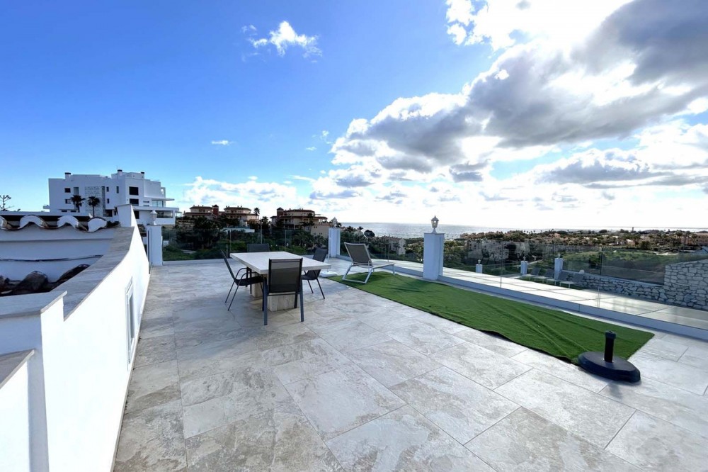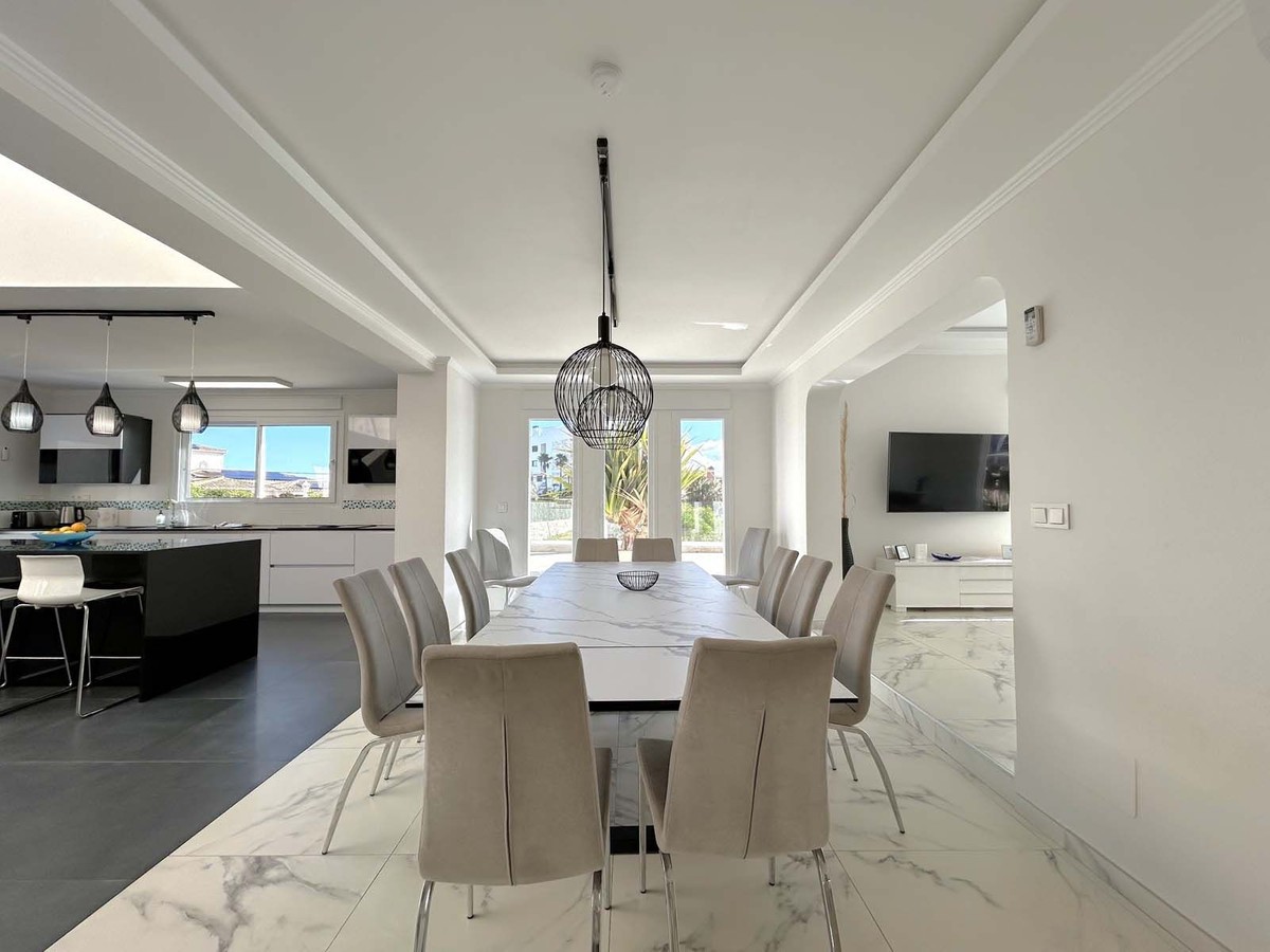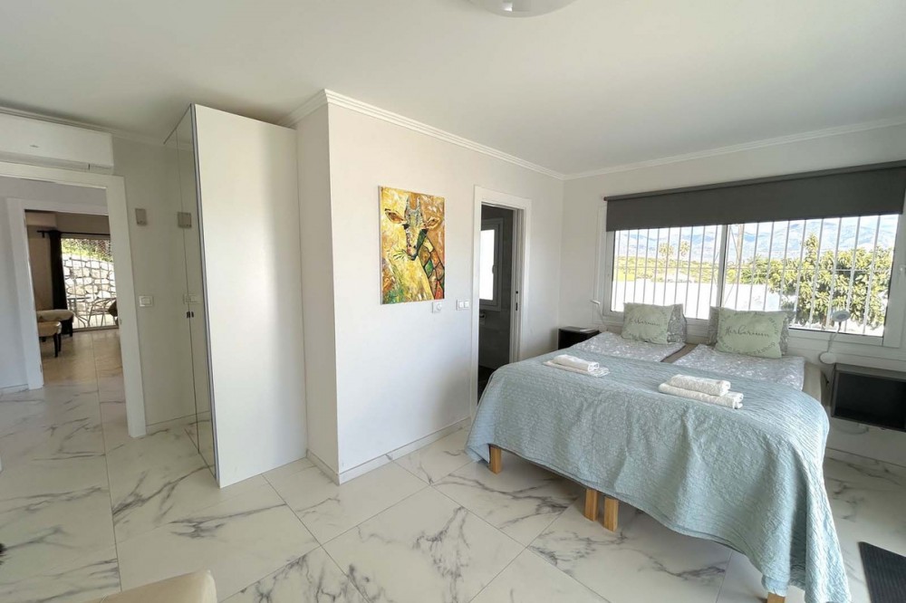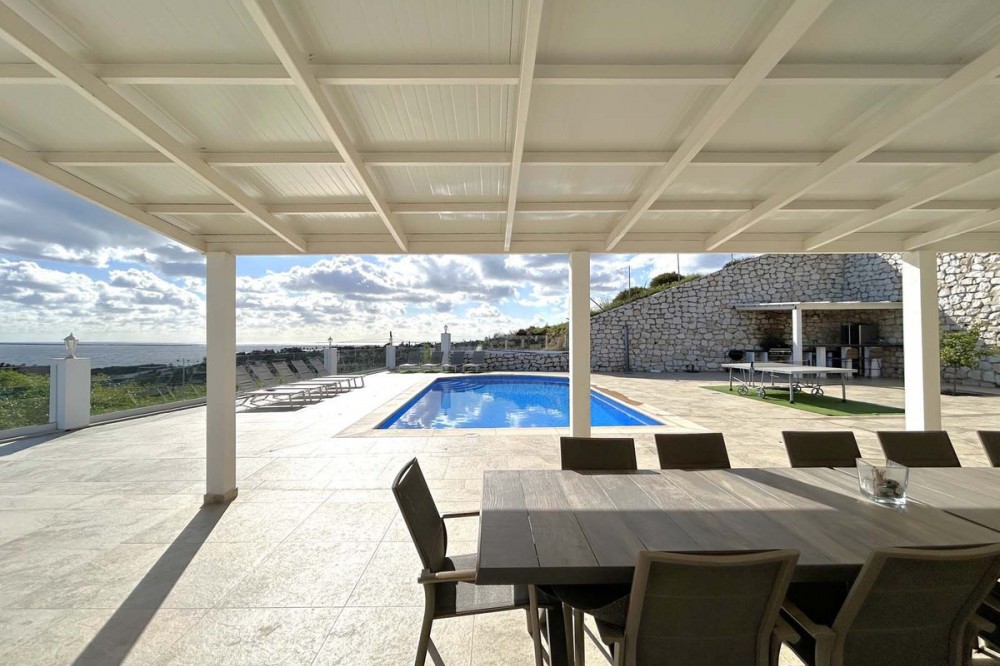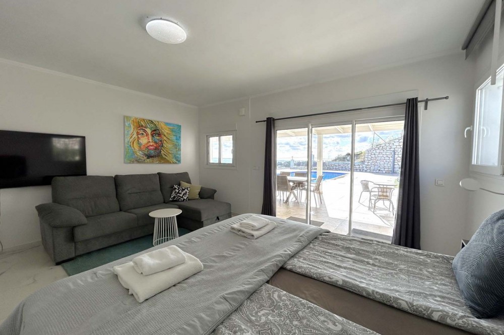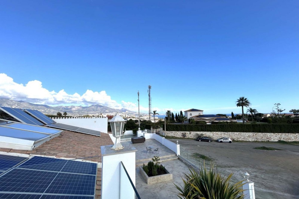 - Located in the beautiful area of El Faro, Mijas, this stunning villa offers the perfect blend of luxury and convenience. Just minutes from shops, restaurants, and the beach, the villa provides a peaceful yet accessible retreat. With breathtaking views of the countryside and coastline, it offers a serene living experience. The spacious villa features six bedrooms, each with an ensuite bathroom, a fully equipped kitchen, and a separate guest apartment with its own kitchen, bedroom, bathroom, and living room. Outdoor spaces include large terraces, gardens, a solarium, a heated pool, and an outdoor dining and barbecue area. The villa also boasts air conditioning, underfloor heating, and solar panels for power and water heating. Additional amenities include a laundry room, covered garage for two vehicles, and exterior parking for up to three more cars. This exceptional property combines comfort, style, and sustainability in a prime location, offering an ideal home for year-round living or entertaining.