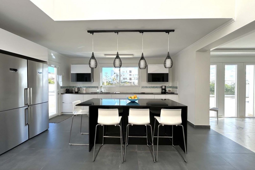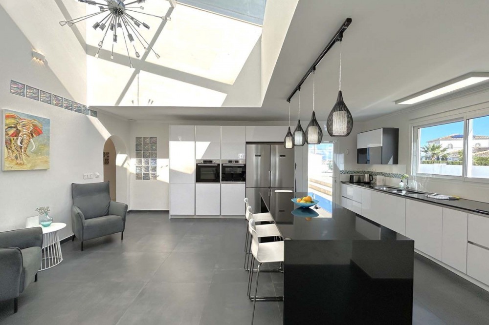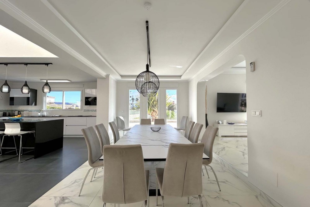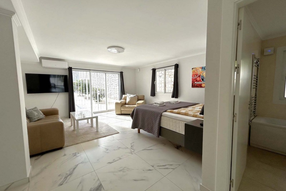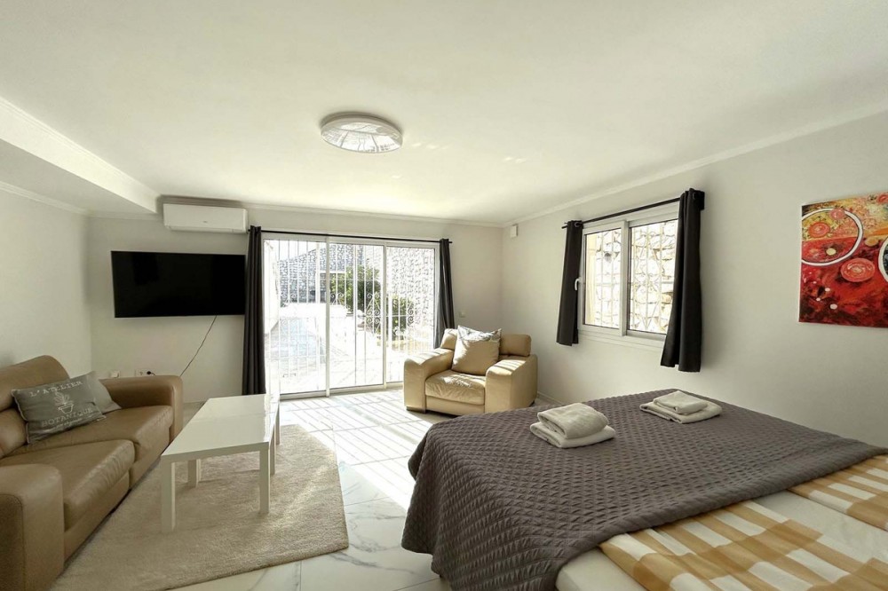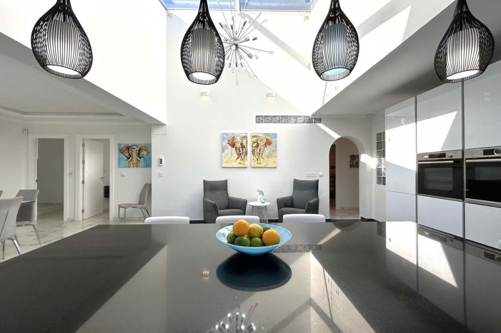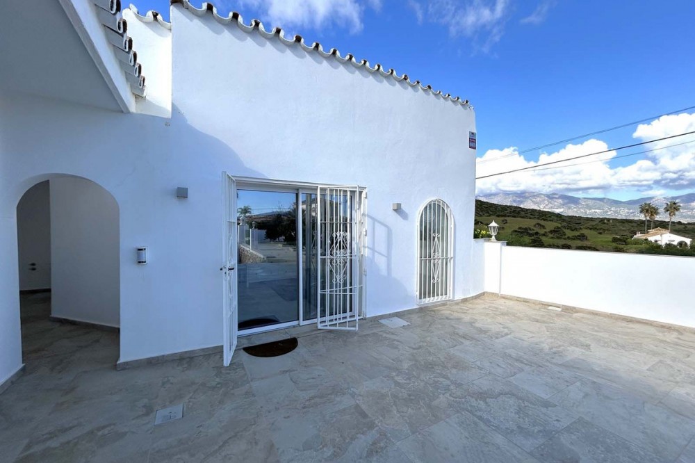 - Located in the beautiful area of El Faro, Mijas, this stunning villa offers the perfect blend of luxury and convenience. Just minutes from shops, restaurants, and the beach, the villa provides a peaceful yet accessible retreat. With breathtaking views of the countryside and coastline, it offers a serene living experience. The spacious villa features six bedrooms, each with an ensuite bathroom, a fully equipped kitchen, and a separate guest apartment with its own kitchen, bedroom, bathroom, and living room. Outdoor spaces include large terraces, gardens, a solarium, a heated pool, and an outdoor dining and barbecue area. The villa also boasts air conditioning, underfloor heating, and solar panels for power and water heating. Additional amenities include a laundry room, covered garage for two vehicles, and exterior parking for up to three more cars. This exceptional property combines comfort, style, and sustainability in a prime location, offering an ideal home for year-round living or entertaining.