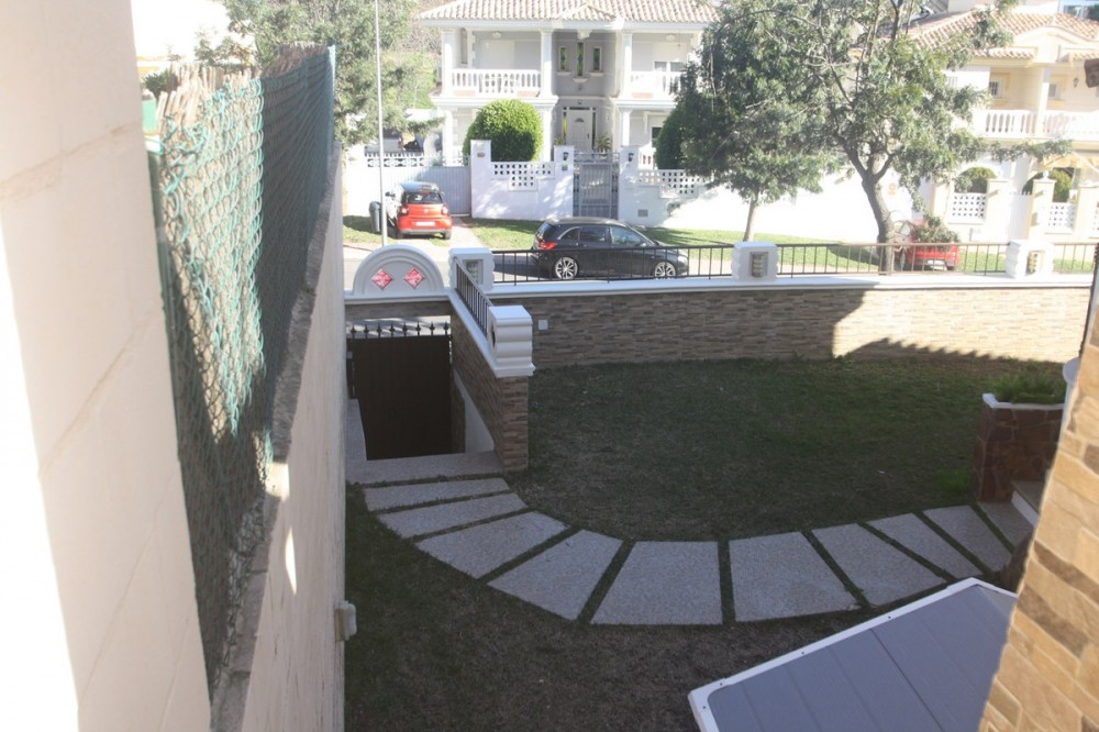 - Discover your oasis on the Costa del Sol! This spectacular detached villa in the sought-after area of Cortijo de Torrequebrada, Benalmádena, offers the perfect balance between luxury and comfort. Just 400 meters from the idyllic Sunset Beach, this property places you close to supermarkets, restaurants, and all the services you may need. Built in 2008 and in excellent condition, the home is spread over three levels. On the first floor, enjoy a spacious living room, a fully equipped kitchen, a cozy bedroom, and a terrace with direct access to a private pool. Unwind in the hydromassage bathroom after a day in the sun. The second floor features the master bedroom with an en-suite bathroom and walk-in closet, along with two additional bedrooms and another bathroom with a shower. The basement is a versatile space with a multipurpose room, two additional rooms, a bathroom, and a large garage. Additionally, the 45 m² solarium is the ideal spot to enjoy the Mediterranean climate. With 234 m² of built space and 136 m² of usable area, this villa offers more than enough room for the whole family. The 500 m² plot ensures privacy and tranquility. Facing south and east, it takes full advantage of natural light throughout the day. Don’t miss the opportunity to live in this coastal paradise with all modern conveniences. Come and see it!