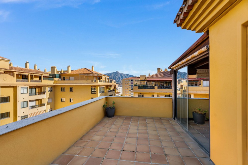 - **Stunning Penthouse in San Pedro de Alcántara** Discover the epitome of luxury living in this stunning penthouse located in one of the most sought-after areas of San Pedro de Alcántara. Just 2 minutes from the vibrant boulevard and a leisurely 15-20 minute walk to the picturesque promenade and beach, this property offers unparalleled convenience and breathtaking views of both the sea and mountains. With all essential services just steps away, this is an opportunity not to be missed. Spanning a generous 293 m², this penthouse boasts a well-designed interior of 143 m² complemented by an expansive 150 m² terrace. The terrace features a quality pergola with lumon-style glass curtains, perfect for enjoying the outdoors year-round. Inside, you'll find 3 spacious bedrooms, including a master suite, and 2 well-appointed bathrooms. The large living room, complete with a cozy fireplace, provides an inviting space for relaxation. The modern kitchen offers direct access to the terrace, making it ideal for entertaining. Additional features include built-in wardrobes, air conditioning, and electric heating for year-round comfort. The property is accessible for individuals with reduced mobility and includes a parking space in the building. Enjoy the added luxury of a communal pool and garden, making this penthouse a true oasis. Built in 2002 and maintained in excellent condition, this home is ready for you to move in and start enjoying the best of coastal living. Don't miss your chance to own this exceptional property!