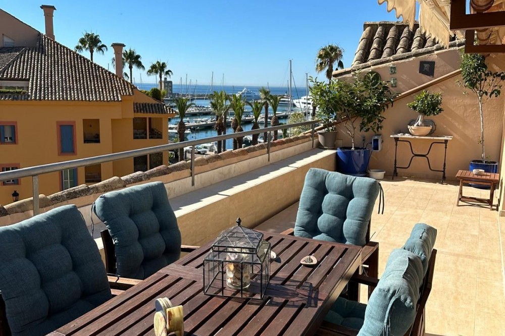- Spectacular Penthouse in Sotogrande Marina Located in the exclusive Ribera del Dragoncillo in Sotogrande Port, this 160 m² penthouse with 40 m² of terraces offers luxury, comfort, and breathtaking views. Key Features: - 3 bedrooms with en-suite bathrooms. - Fully renovated: Modern kitchen, updated bathrooms, high-quality PVC windows, and a hot/cold air conditioning system with 14,000 BTU capacity. - Spacious 60 m² garage, ideal for two vehicles and extra storage. - Private mooring in Ribera del Dragoncillo: 12 x 4.5 meters, perfect for boating enthusiasts. Spaces to Enjoy: - Large terraces totaling 40 m² with stunning views of the marina. - Prime location in the heart of Sotogrande Marina, just steps from restaurants, shops, and services. This penthouse is a unique opportunity to experience the exclusive Sotogrande lifestyle, combining an unbeatable location with top-notch amenities. Contact us now for more details or to arrange a viewing!