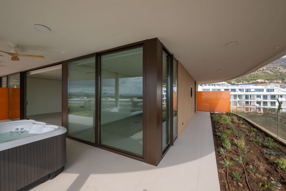 - Tucked away in the tranquil hills of El Higueron, this stylish newly built community is an exceptional residential urbanization that beautifully combines the best of luxury living, nature, and modern design. Just a short 3-minute walk from the renowned Higueron Resort, residents have easy access to exclusive amenities including the Sport Club, Spa, gourmet restaurants, a shopping center, and even the train station, ensuring ultimate convenience alongside indulgence. Set in the sun-drenched town of Fuengirola, the urbanization immerses you in the stunning Andalusian landscape, where sweeping views of lush greenery meet the gentle Mediterranean climate. The expansive natural surroundings provide the perfect backdrop for relaxation and outdoor adventures, with scenic hiking trails just steps from your doorstep. The serene Carvajal Beach, famous for its calm waters, is just 10 minutes away, offering the perfect escape to unwind by the sea. Designed to blend seamlessly with its surroundings, this stylish resale apartment offers spacious 3-bedroom, 2-bathroom home where nature and comfort coexist in perfect harmony. The apartment is equipped with underfloor heating, a private garden, a jacuzzi, and partial sea views, creating an elevated living experience that prioritizes both elegance and relaxation. Sustainability is at the heart of this development, with the community adhering to Breeam and Wellness certifications, ensuring eco-friendly living without compromising on luxury. The project spans over 20,000 square meters of lush Mediterranean vegetation and aromatic plants, providing a serene environment where nature lovers can truly feel at home. With six beautiful swimming pools scattered across the development, offering ample opportunities to enjoy the outdoors and create unforgettable moments with family and friends. Experience Mediterranean living at its finest, where every detail is designed to enhance your lifestyle and bring you closer to the natural beauty that surrounds you.