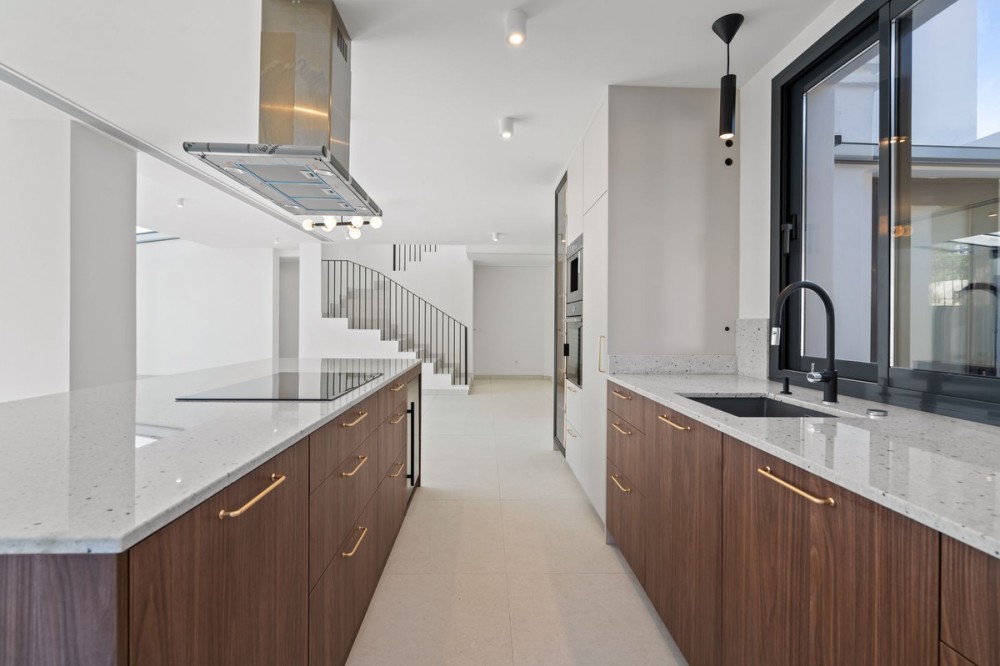 - Spectacular villa after major renovation with sea views! It is located in Avda. de las Cumbres, close to the center of Elviria. Close to shops, schools, church, and restaurants. Within walking distance to Michelin Star restaurant El Lago next to Elviria Hills. The lower level of the house has 3 bedrooms and 2.5 bathrooms, while the top floor consists of the master bedroom with its own bathrooms and walk-in wardrobe. There is underfloor heating throughout the entire house, as well as new 5 system A/C, and a pellet fireplace in the living/kitchen area. On the bottom floor next to the kitchen there is a laundry room with its own outside access door that leads to the parking area. On the bottom floor there is also a small room that could be used for storage or office space. The property has a swimming pool and a covered parking area with space for two cars.