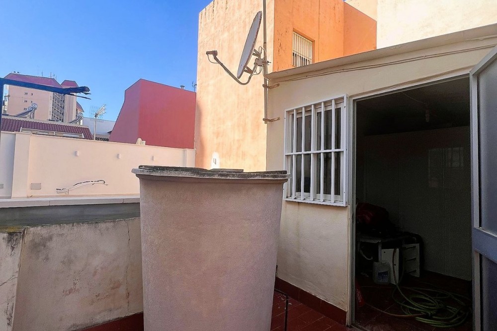 - Central House for Sale in the Second Line of Fuengirola's Seafront Promenade This property offers a total of 115 m² on one floor, with a solarium and storage room. The current layout includes a spacious living-dining room, 3 bedrooms, an independent kitchen, a large bathroom, storage room, patio, covered porch at the entrance, and a top terrace. Expansion Possibility: This property also offers the possibility to build a basement, ground floor, first floor, and attic. According to the urban planning report and local regulations, a setback is required, allowing for 87.39 m² per floor, plus the attic. Ideal for those seeking a central location near the seafront promenade with the potential to expand or modify the property to meet personal needs.