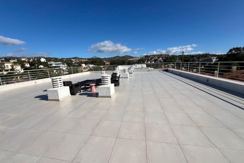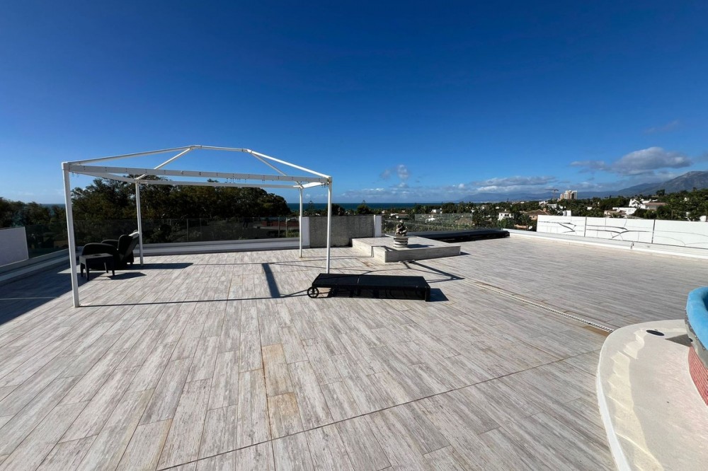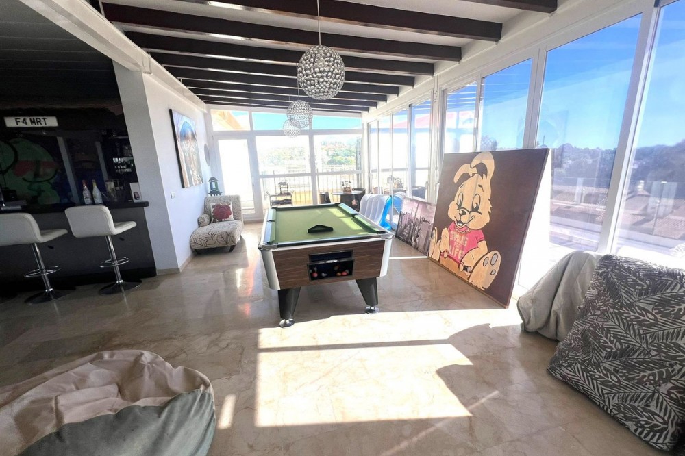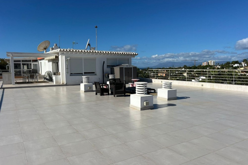 - Investors dream A rare and unique opportunity to purchase triplex penthouses with panoramic sea views less than 300m from one of the best beaches on the coast, properties linked via the roof with a walkway the apartment has either room or has 5 bedrooms with the top floor opening out onto this vast roof area. one of which has a 16 person built jacuzzi the apartments are in good condition,but may benefit from some modernising and changing the layout of the rooms, it has a separate games room and bar area on the top floor, the real value to these properties are the ability to increase living accommodation/leisure areas on the roof subject to the local planning laws. Clearly stated in the deeds and on the note simple are developers rights which lasts until 2076. the owner also owns the other penthouse which they would also consider selling this is fully reformed at comes at a price of 1.35m or a combined price could be arranged apartment 1 lounge diner. separate kitchen terrace downstairs 3 bed 3 bath steam room, small gym area top floor bar, lounge area, bathroom jacuzzi this can be converted into additional bedrooms approx build 330sm total inc terraces 730sm Penthouse Duplex, Carib Playa, Costa del Sol. 4 Bedrooms, 3 Bathrooms, Built 330 m², Terrace 700 m². Setting : Beachside, Close To Sea. Orientation : South, South West. Condition : Good. Pool : Communal. Climate Control : Air Conditioning. Views : Sea, Mountain, Country. Features : Covered Terrace, Lift, Fitted Wardrobes, Private Terrace, Guest Apartment, Storage Room, Utility Room, Ensuite Bathroom, Marble Flooring, Double Glazing. Furniture : Part Furnished. Kitchen : Fully Fitted. Garden : Communal. Parking : Garage. Utilities : Electricity. Category : Investment.