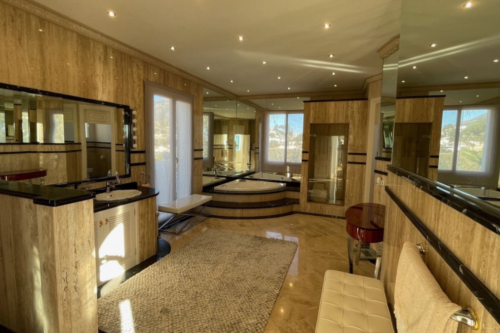 - SPECTACULAR MANSION WITH PANORAMIC VIEWS IN MIJAS PUEBLO Located in one of the most privileged areas of the Costa del Sol, this impressive villa combines luxury, large open spaces, and an unparalleled natural environment. The main villa has 3 bedrooms; outside there are 3 more bedrooms. Located between Malaga capital and Marbella, just minutes from the charming white-washed village of Mijas, this property offers a haven of exclusivity and privacy with panoramic views of the Mediterranean sea and surrounding mountains. Architecture and Design: From the first moment, the house impresses with its majestic entrance hall, crowned by an elegant vault and a large greenhouse, which gives direct access to the main terrace. Its interior design has high ceilings, large and tall windows that fill each room with natural light. It has several living spaces, including a formal lounge with integrated doors, a spacious and bright dining room, and a second, more cozy living room with fireplace and TV. All the rooms have direct access to lovely covered porch. In total, the house has four fireplaces and an underfloor heating system that ensures comfort throughout the year. Kitchen and Guest Areas: The kitchen is spacious and elegant, with large bay-windows. There is a breakfast area and direct access to the garden. Additionally, the property includes a separate apartment for guests or staff, with its own kitchen, fireplace and a large bathroom with a balcony. Landscaped Gardens: The mansion is surrounded by magnificent tropical gardens with automatic irrigation and an ornamental fountain. The large main terrace is decorated with lamp posts, other sunny terraces offer ideal spaces for rest and contemplation. In the southwest corner, a white pergola with a cane-roof houses a lovely BBQ area equipped with a refrigerator and night lights. Many palm trees. There is a helicopter landing pad. Guest house and Pool: The private 12 x 20 meter swimming pool is truly magnificent, with a uniform depth of 1.60 m, there is a raised platform with sun loungers for the ultimate experience in relaxation. The self-contained guest house has views and direct access to the beautiful swimming pool. Lovely covered porch. It consistes of a central lounge with open-plan fitted kitchen. Air con h+c. Two bedrooms, both en suite, with plenty of cupboard space. This is the ideal property for entertaining guests and enjoying the sun and pool with the whole family. Extras and Amenities: Air conditioning h/c throughout. Electrical and telecommunications installations with fiber optics. Large cistern in the garden for water storage. Exterior lighting and ample space for solar panels. Storage room below with air chamber under the villa. There are no community fees. Privileged Location. Just 15-20 minutes from Malaga airport and 20 minutes from Marbella, the villa boasts a strategic location in a peaceful yet well-connected area. Mijas Pueblo, with its Andalusian charm, is only 4 minutes by car, while the beaches of Fuengirola are just a short drive away. Property tax: 4.800 €/year Rubbish: 160 € /year A unique spacious property for those discerning clients seeking exclusivity and tranquility in a beautiful natural environment. Request a visit and discover its true potential!