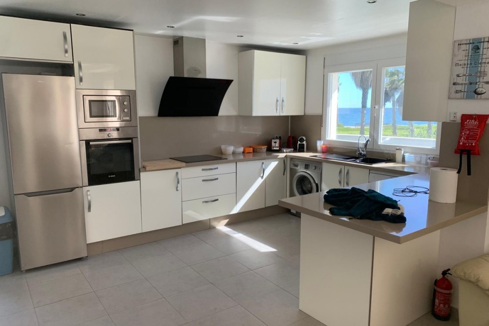 - Available for Sale and For long term rent this beautiful house on the first line beach with spectacular sea views. With natural grass and heated swimming pool. It has 3 bedrooms and 2 bathrooms. Private parking and premium location, with easy access to the beach, promenade, restaurants and beach bars. Very good area in Estepona The house is fully furnished and equipped. If you are looking for tranquility and comfort this is your home! Do not hesitate to contact us for more information.