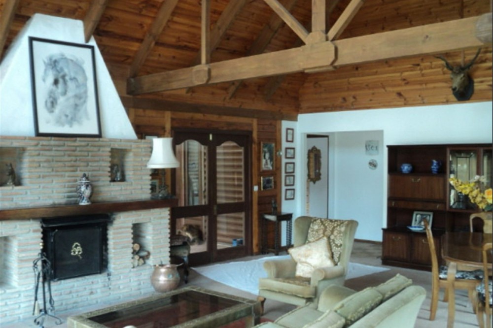 - Don’t miss out on this incredible opportunity to own a stunning South African-style wooden lodge set in a breathtaking location, bordering the Sierra de las Nieves Natural Park and the Turon River. With a generous 230m² of living space and an expansive 34,468m² plot, this property offers panoramic views of unrivaled natural beauty—all year-round! The spacious home features: 3 Bedrooms – Ample room for comfort and relaxation. 2 Bathrooms – Plenty of space for your needs. Rustic Kitchen – Ready to be updated with your personal touch. Large Lounge with Fireplace – Ideal for cozy evenings and entertaining guests. Covered Terrace with BBQ Area – Perfect for outdoor dining and enjoying the views. Swimming Pool – Relax or swim in the sun-drenched setting. While the property is in good overall condition, it does offer exciting potential for modernization, particularly in the kitchen and bathrooms. Bring your vision to life and make this unique space your dream home! The vast land is fully fenced and mainly planted with olive, almond, fig, and apple trees, creating a peaceful and private atmosphere. You’ll also enjoy the self-sufficiency of the property with its own solar panels and abundant water supply from a private well. Additional Features:... 3 Stables – Ready for renovation, perfect for horse enthusiasts or farming. No OCA License currently – But we are happy to assist with local contacts to make this process easier. Proximity to Camino del Rey & El Chorro Lakes – Located just 5km from Ardales village, offering easy access to all amenities, restaurants, bars, and medical facilities. Malaga is just an hour’s drive away, making this an ideal getaway or permanent residence. With exceptional views, privacy, and a unique design, this property offers immense potential. Seize the opportunity to own a piece of paradise at an unbeatable price!