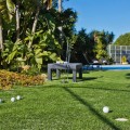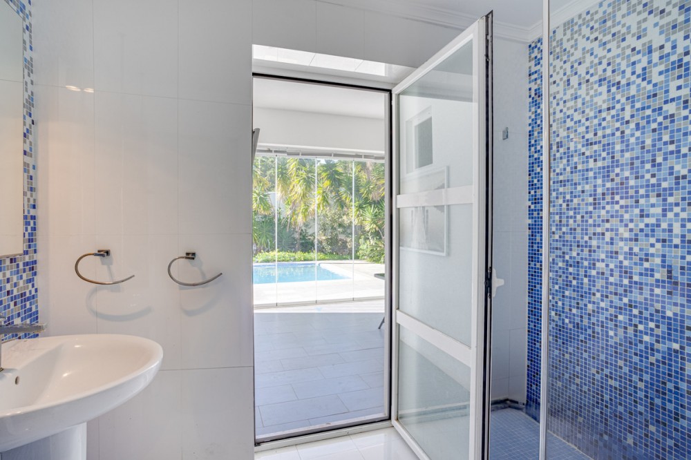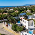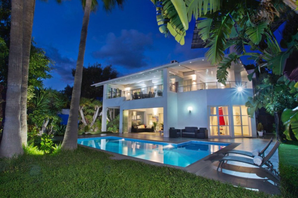 - Unique eight bedroom south facing villa, in a tranquil area of Elviria, Marbella. Located close to the beach, schools and local amenities, this fantastic property is also a successful operating Bed & Breakfast. The property consists of the main house, two apartments with independent access and an additional two bedrooms with access from the garden. The house is equipped with everything you would need for year-round living or holiday rentals including a heated swimming pool, golf putting green, outdoor sauna, and BBQ area. The terrace and solarium boast stunning sea views. Other features include hot and cold air conditioning, private parking space, storage area and solar panels that supply the electricity to run the whole property, as well as a back-up generator.