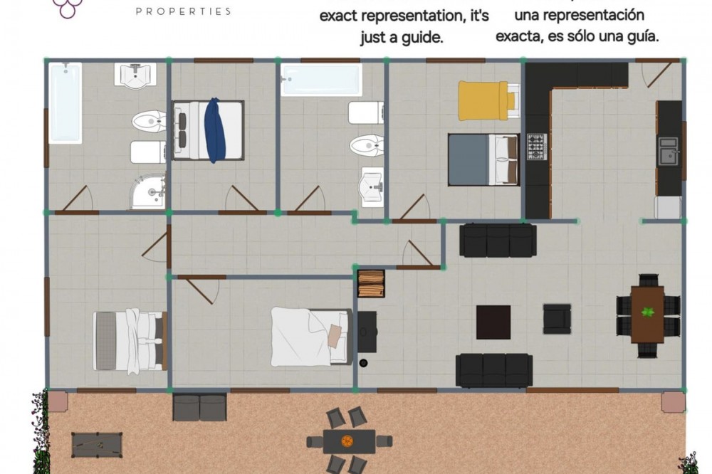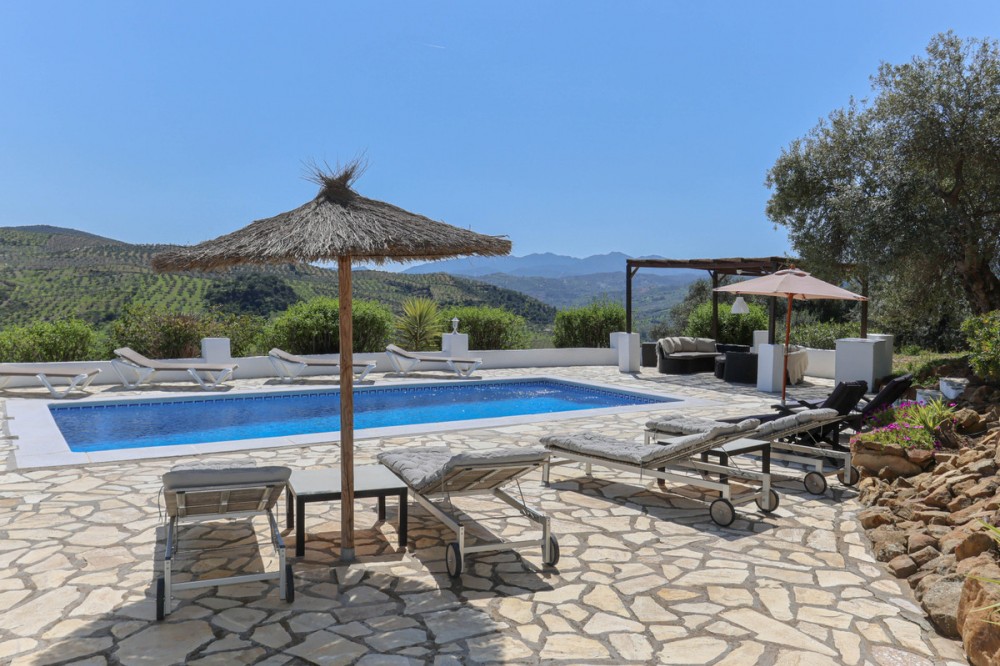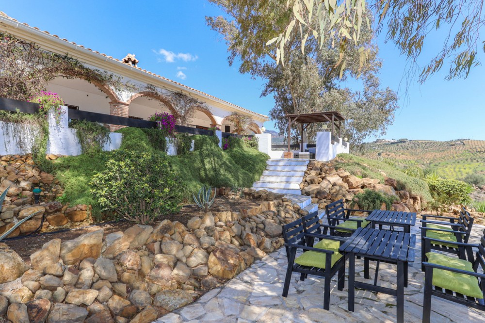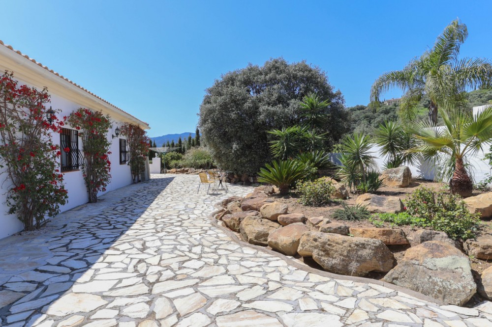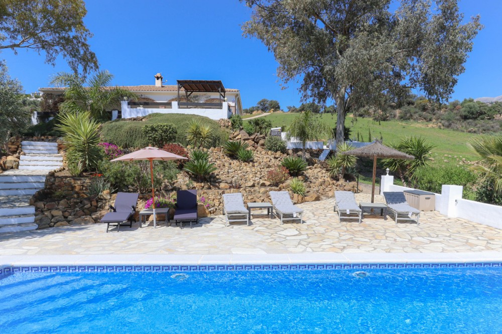 - DREAM Villa . Privacy . Fantastic Pool Area . Two lovely pueblos close by . Possible Rental Income . Large basement What can we say about this propety? I think the photographs show you that this property is pretty stunning! This is very immaculate villa sits in the hills between both Alozaina and Tolox. The plot is extremely beautiful surrounded by natural rocks, olive and almond trees... there is also an Era on the land (an ancient circle of laid stones originally used for threshing wheat). Property Details A shaded terrace runs along the rear of the property providing the much needed shade during the summer months. With music system, soft seating area and of course those lovely views this is the perfect spot to sit and relax. Patio doors lead from the terrace to the lounge... the perfect layout! From the lounge you have access to the fully fitted kitchen. The house boasts 4 large double bedrooms the master is especailly spacious and also has the luxury of an ensuite bathroom. The property sits on the top of a large basement that is currently used for storage and a garage. Outdoor area and land The land at this property is very pretty with lots of natural features to include a mediteranean garden.. the plot leads down to the stream at the bottom of the land. The owner has designed the garden to be easily maintained with an irrigation system. 16 Solar Panel and Batteries. Views Beautiful andaluican countryside to include olive and almond groves. Access Excellent, all concrete.