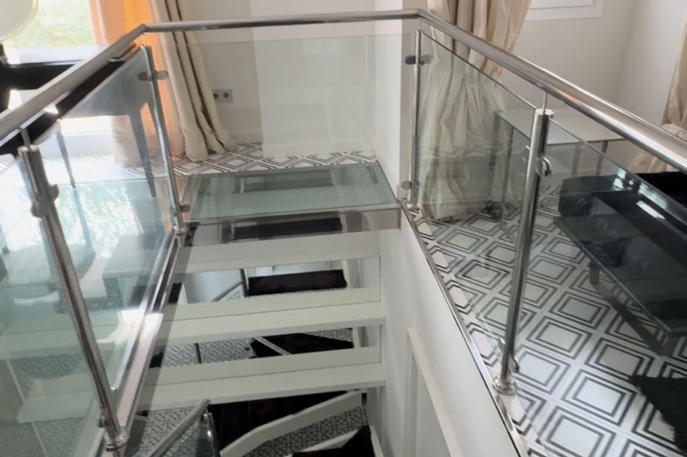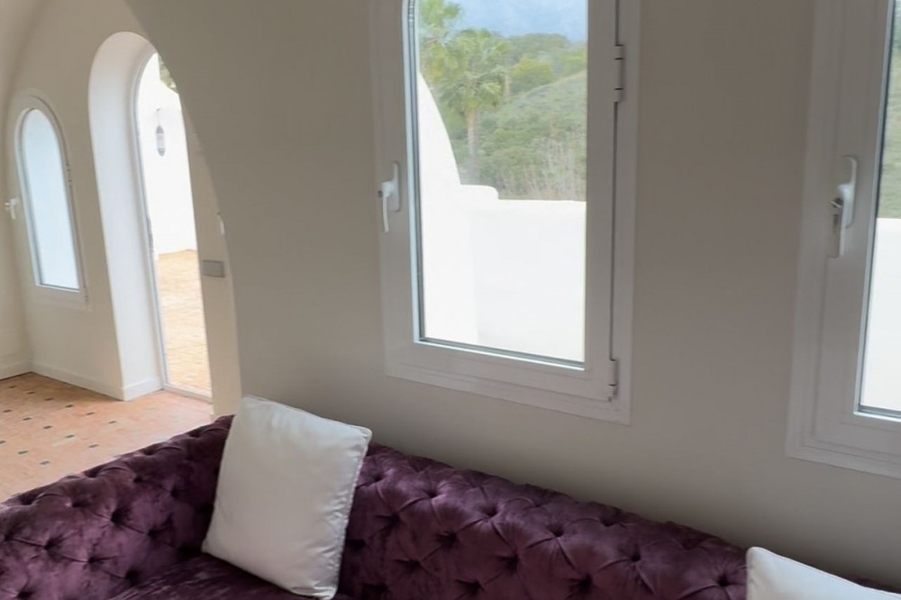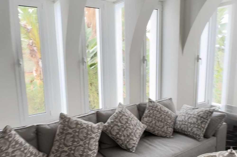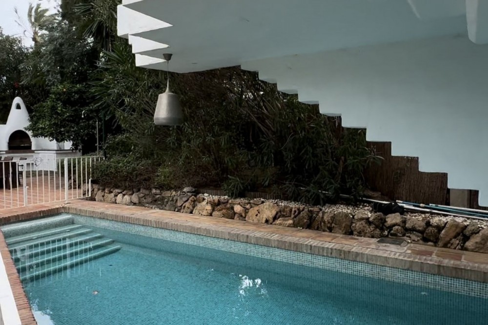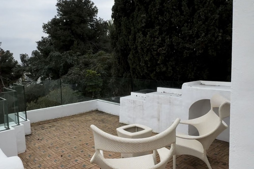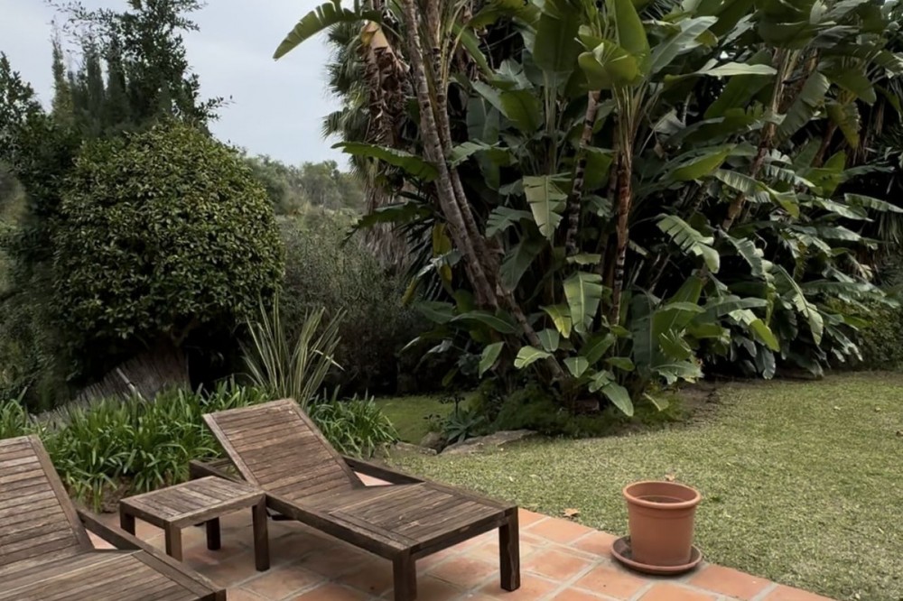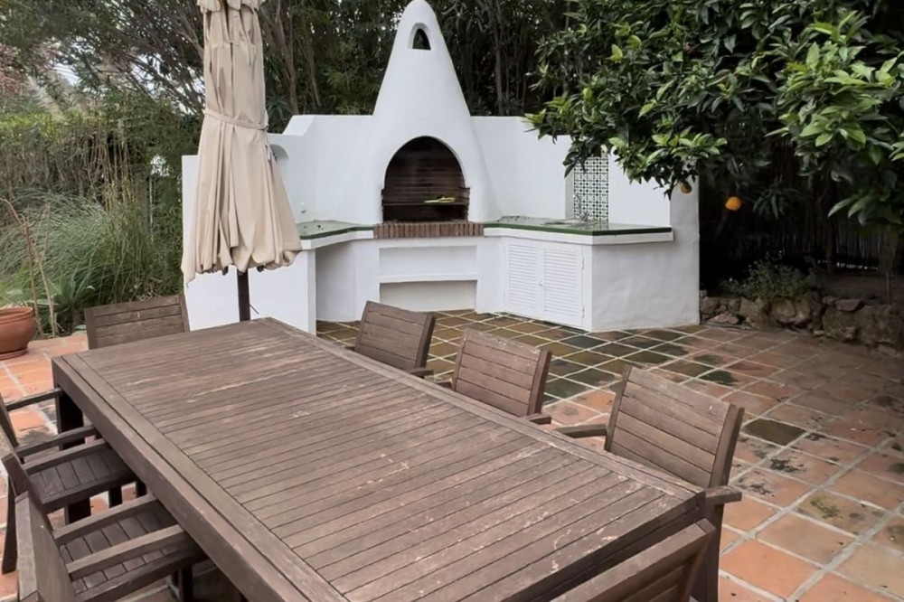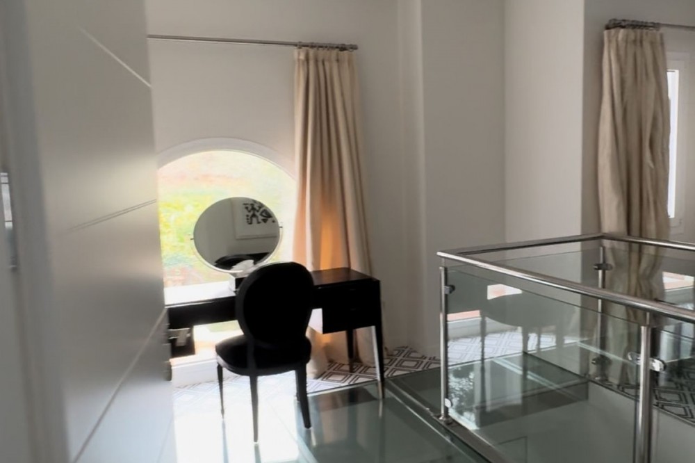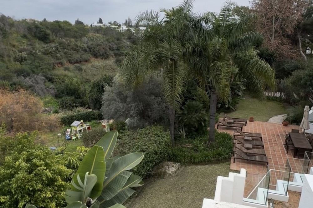 - For Sale: Elegant Fully Renovated Townhouse near Puente Romano This exceptional and stylish townhouse, completely renovated, meets the highest standards of comfort and design. Prime Location: Ideally situated near the renowned Puente Romano and Marbella Club hotels, as well as the palace of the King of Saudi Arabia, this property is nestled within a private residential community designed by the acclaimed architect Ángel Taborda. Located on a quiet street with minimal traffic, it is just a 7-minute drive from the beach, making it ideal for a relaxing vacation that combines tranquility with proximity to the city. Property Features: This charming townhouse boasts 5 bedrooms and 5 bathrooms, ensuring an excellent level of privacy while providing stunning views of the sea to the south and La Concha mountain. Though it is an end unit, it feels fully detached with mature gardens, expansive terrace areas, a barbecue/outdoor kitchen, and a heated private pool. It also includes a driveway with a garage and numerous additional features, all of which are detailed below. Spacious and Sunlit Interior: Spread over 4 levels, all connected via a state-of-the-art glass elevator, this home offers generous spaces and an optimized layout. The open-plan concept includes an entrance hall, a living room with a vaulted ceiling and an open fireplace, an elegant dining area, and a modern, fully-equipped Gaggenau kitchen with sleek black granite countertops. At the back of the living area, you can access a sunny, well-furnished terrace that connects to the garden via stairs. On this level, there is also a versatile room with a sofa bed and a large television, which can serve as a fifth bedroom or a cozy retreat, complete with an ensuite bathroom. Taking the elevator down to the main floor, you’ll find the fabulous master bedroom, featuring an oversized king-size bed and a round open bathtub overlooking the pool and garden. The luxurious decor, elegant lighting, high-quality furnishings, and exquisite silk curtains give this space a touch of opulence. The spacious master bathroom, like all the bathrooms in the house, is adorned with luxurious black marble and includes a large double shower, a double sink, a toilet, and a bidet. There is a door from the bathroom that opens directly to the garden, providing outdoor access without needing to use the elevator. Each bathroom is filled with natural light thanks to well-placed windows. To the left of the elevator, you enter the second bedroom (BR2), designed in a unique layout featuring an elegant king-size bed, a separate shower and toilet, and an adjacent sink area, all adorned with beautiful silk curtains. A lovely staircase guides you from the master suite to a custom-made dressing area located on level -1. Adjacent to this area, on both sides of the elevator, are two guest bedrooms. To the right, the spacious children's room (BR3) features a single bed with an ensuite bathroom that includes a bathtub and sink, as well as a separate toilet. On the opposite side, there is another guest room (BR4) equipped with a double bed and an ensuite shower room, with a charming underwater window looking into the pool. Now, let’s take the elevator up to the rooftop level, which features a cozy TV lounge with stunning sea and mountain views. This space can also serve as an office, providing the perfect work-from-home environment while the rest of the family enjoys the other levels or the garden. This property is perfectly suited for longer stays, allowing you to work from home while your family is comfortably housed nearby. The adjoining terrace leads to a laundry room equipped with a washer and dryer, as well as a guest toilet. Outdoor Space: The enchanting private garden boasts a barbecue area, a dining table for 8, and 6 lovely sun loungers. It's beautifully green, featuring grass, lovely shrubs, and shade trees, meticulously maintained by a dedicated gardener who also cares for the heated private pool, which is enclosed and has a unique hydrosight feature at level -1. At the back, there is a small separate garden with a private playground, complete with swings, a slide, a trampoline, and a small Hollywood swing—ideal for children to play while adults relax on loungers or enjoy a sunset. From this wonderful private garden, you also have access to the communal area, which features a vast green garden with a large swimming pool and sun loungers. However, in your own garden, you’ll experience complete tranquility. This property is the end unit at the far edge of the La Joya community, ensuring ultimate privacy with no visibility or access from the outside. This residence perfectly blends luxury and comfort, making it an ideal setting for enjoying the Mediterranean lifestyle. Don’t miss this unique opportunity to own a true oasis!