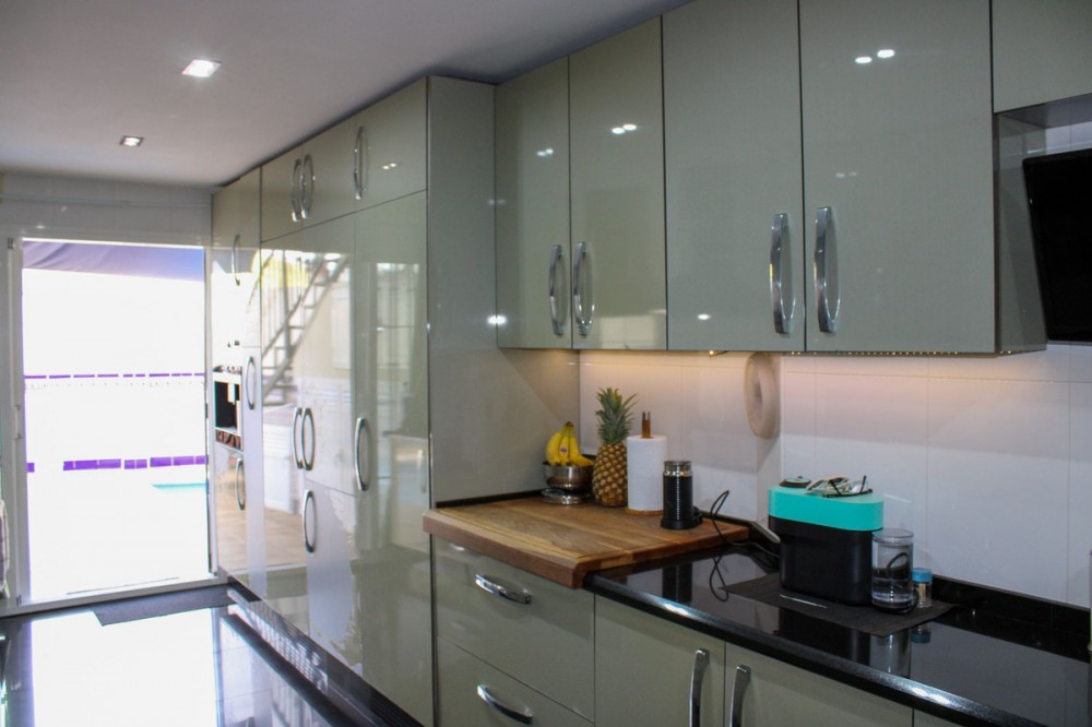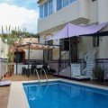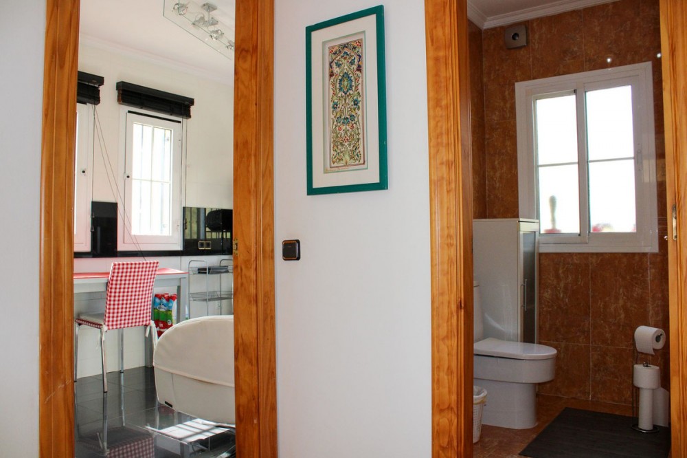 - Spacious Exclusive pool villa in La Noria, Nerja. Welcome to this spacious villa on three levels, 4 bedrooms, 3 bathrooms and 1 toilet. Private pool with large terrace and private parking, located in a cul-de-sac with no through traffic. The nearest large supermarket is 3 minutes by car, or a quarter of a walk. The entrance floor welcomes us with a spacious hall, which connects the entire house. Directly to the right is a large living room with dining area, where the whole family can fit. On this floor there is also a toilet, as well as a living room that was previously the house's kitchen. This room can be restored to a kitchen, as all water connections are still there. We go down the stairs with the beautifully decorated wrought iron railing, to three bedrooms and two bathrooms. One of the bedrooms has its own bathroom and there is also access to the house's natural meeting place, the large terrace with private pool. There is also a fully equipped modern kitchen, as well as a washing machine and dryer. The terrace can also be accessed from the private parking, which is located at the entrance to the house. We continue down to the basement, where we find a large bedroom with jacuzzi and shower. There is also a good-sized storage room. This house must be seen, plenty of space for the large family. Malaga airport takes just under 45 minutes by car, but there is also regular bus service from Nerja. The renowned Baviera golf course is only 15 minutes by car from your new home. In winter you only have an hour and a half drive to Granada with skiing in Sierra Nevada, the best of both worlds.