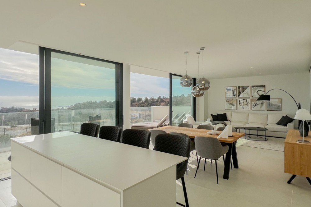 - Best pool area and desirable sea views highlight this modern apartment in Higuerón West. This particular apartment enjoys what many consider the best pool area in all of Higueron West. Beyond the fantastic pool, residents here benefit from a luxurious residential community with access to a spa, sports facilities (tennis, padel), a 5-star hotel, nine restaurants, multiple other pools, a co-working space, and concierge services. A private beach club with two restaurants and a pool is also part of the community, accessible via shuttle bus. The location provides easy reach to the beach, chiringuitos, public transport, and all essential amenities. This elegant home features three double bedrooms. The master bedroom boasts a spacious en-suite with a walk-in shower (double rainfall heads) and a walk-in closet, with patio doors leading to a private balcony offering sea and Fuengirola port views. The other two bedrooms have fitted wardrobes and overlook the Mijas mountains, sharing a good-sized bathroom with a walk-in shower. A guest toilet is also included. The apartment is just a stone's throw from the dedicated swimming area. The open-concept layout creates a bright and inviting atmosphere. Large patio doors lead to the main terrace, an ideal entertaining space overlooking the pool area, with room for lounging, dining, and a barbecue. The terrace offers a lovely spot to enjoy sunsets. The kitchen is fully fitted with modern, high-quality appliances and a striking island, perfect for social gatherings. The combined dining and living area is designed for comfort and ease, whether entertaining or simply enjoying a morning coffee with Mediterranean sea views. Underfloor heating is installed throughout the entire apartment. The property includes two parking spaces with direct lift access and a large storage room in the basement. The community benefits from 24-hour security for peace of mind. This home truly offers a lifestyle to be experienced.