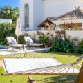 - Located in the exclusive area of Los Porqueroles, this villa is much more than just a residence: it’s a space designed to enjoy comfort, privacy, and the beauty of the Mediterranean. Its surroundings combine the tranquility of a residential neighborhood with the convenience of being close to everything you need: schools, shops, restaurants, and the best beaches on the Costa del Sol are just minutes away. Additionally, Marbella and Puerto Banús are a short drive away, and Málaga Airport is only 40 minutes via the AP-7 highway. The villa has been designed to offer a unique experience in every corner. Its open-plan layout allows for a seamless connection between the living room, dining area, and kitchen, creating a spacious and welcoming atmosphere. Natural light floods every room, highlighting the elegant design details. The kitchen, with a central island and modern finishes, is the perfect gathering spot for informal meetings or family dinners. The bedrooms have been designed with comfort and privacy in mind. Each one has its own terrace, perfect for enjoying moments of relaxation outdoors. The master suite, in addition to its spacious walk-in closet and luxury bathroom, offers access to a balcony with panoramic views. What truly makes this villa exceptional is its outdoor area. The private pool, surrounded by a spacious terrace, invites you to cool off during sunny days. The pergola with a seating area, along with the built-in barbecue and wood-fired oven, create the perfect setting for outdoor gatherings and evenings. The well-maintained gardens and exterior patio add a touch of exclusivity and harmony. This villa is the perfect combination of style, location, and quality of life. A home designed to be enjoyed to the fullest, whether relaxing by the pool, hosting unforgettable gatherings, or exploring all that San Pedro de Alcántara and its surroundings have to offer.