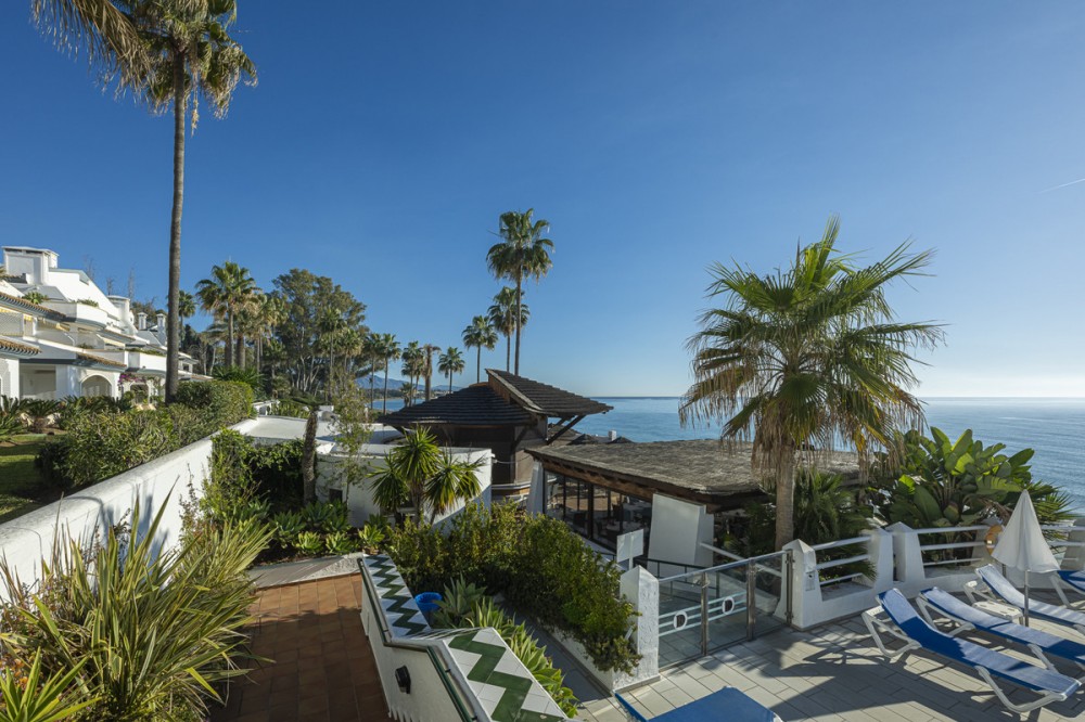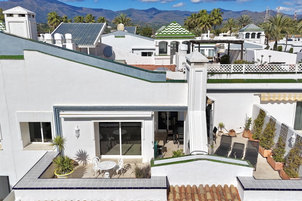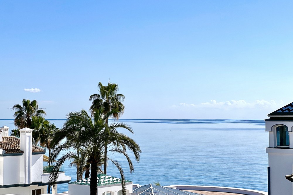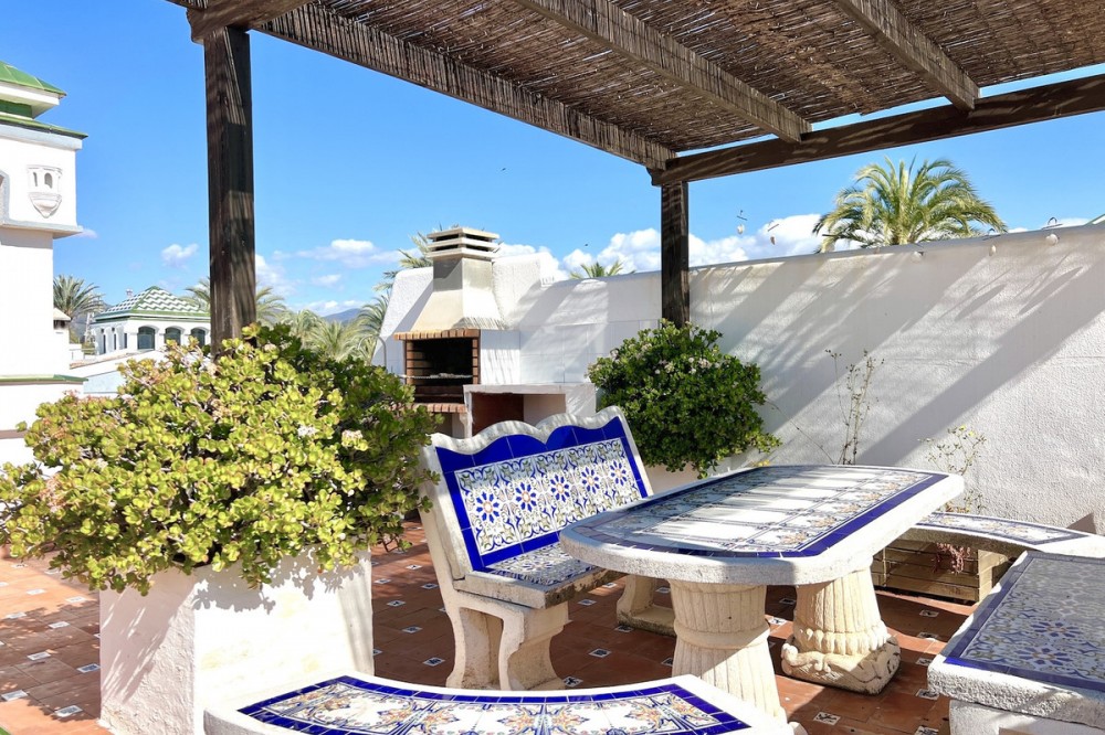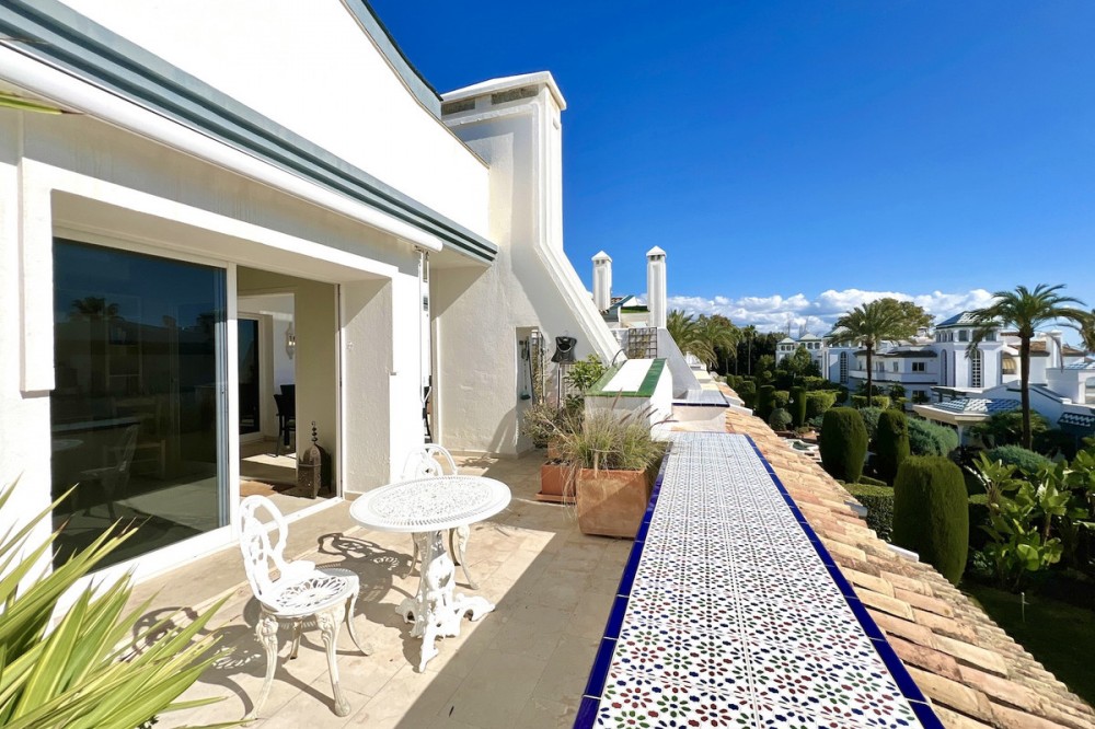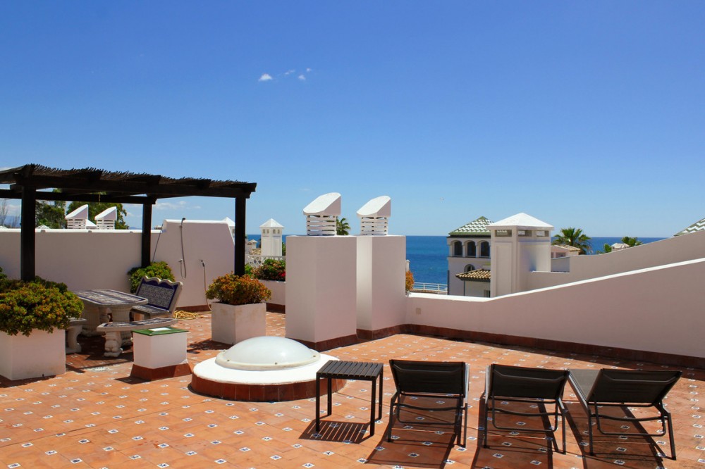 - Located in the prestigious Dominion Beach area of Estepona East, this luxurious duplex penthouse offers a combination of elegant living and unbeatable convenience. Situated along the renowned New Golden Mile, the property enjoys a prime location, with direct access to the beach through beautifully landscaped communal gardens. Estepona Centre is just a short drive away, and the property benefits from excellent road connections, including the A-7 coast road, ensuring easy access to Marbella, Puerto Banús, and beyond. The area is well-served by international schools, making it a perfect location for families, while nearby golf courses, sports facilities, and supermarkets cater to various needs. Spanning a total of 270m², including 130m² of interior space and an expansive 160m² terrace, this penthouse provides ample space for relaxation and entertaining. The property features three spacious bedrooms and two bathrooms, including a master en-suite. The open-plan living and dining areas are complemented by large windows, creating a bright and airy atmosphere. The fully fitted kitchen has modern appliances, which are ideal for preparing meals in style. The living area and bedrooms have air conditioning and electric blinds, ensuring comfort throughout the year. A guest toilet, fitted wardrobes, and high-speed fibre-optic internet are additional features that enhance the convenience of this home. Optional furniture is available, offering a hassle-free move-in experience. Dominion Beach is a well-established residential complex known for its distinctive Andalusian architecture and lush subtropical gardens, creating a serene and tropical environment. The complex boasts several top-notch amenities, including three outdoor swimming pools, a children’s pool, and a wellness centre with massage services. The communal beach terrace offers direct access to the beach, perfect for enjoying the Mediterranean climate. In contrast, the summer beach bar and full-service restaurant provide a relaxed dining experience by the sea. The gated community features 24-hour security for peace of mind, a gymnasium, a social area, and an administration office. For water sports enthusiasts, there is a private slipway for easy access to jet skis, waterskiing, and windsurfing. The area is well-connected to local shops, restaurants, and playgrounds, making it an ideal choice for families and professionals. With its tranquil surroundings, superb amenities, and prime location, this duplex penthouse offers a perfect blend of luxury and convenience in Estepona. All property information provided comes directly from the owner. The listing agent acts solely as an intermediary and cannot guarantee the accuracy or completeness of these details. Prospective buyers are encouraged to conduct their own due diligence to verify important information. Thank you for your understanding.