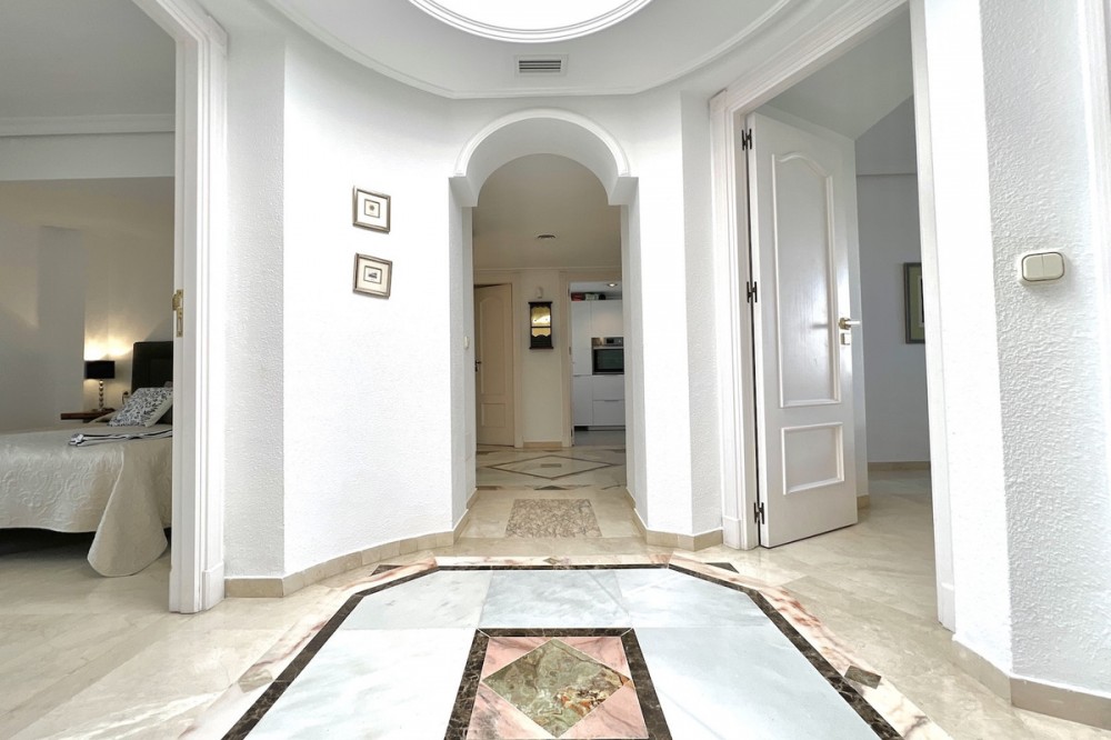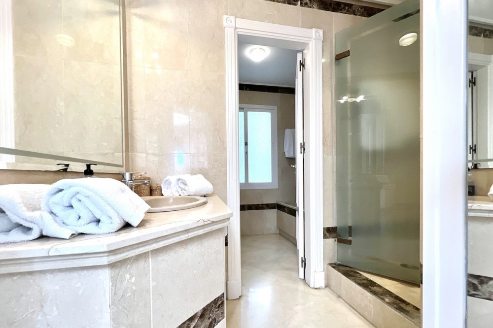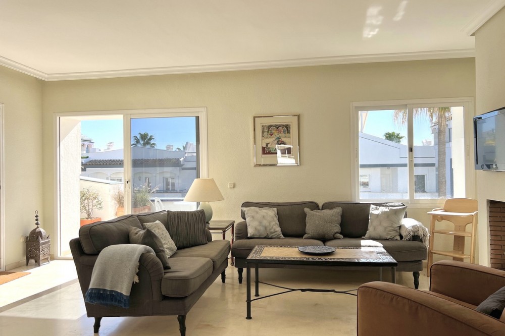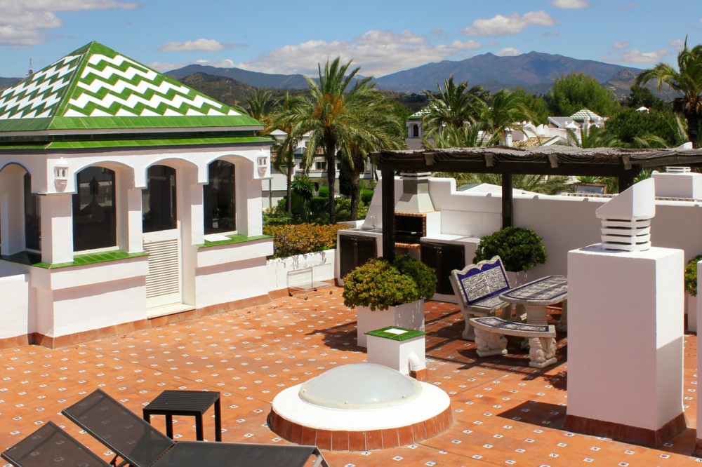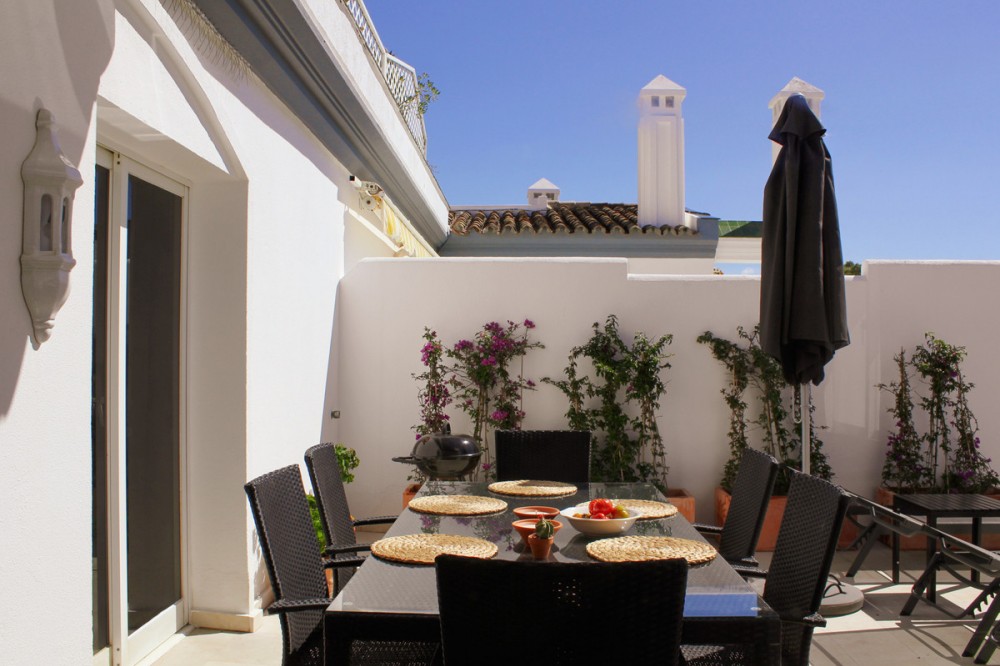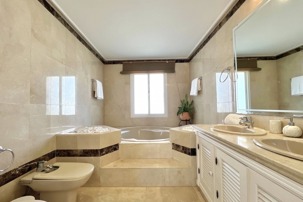 - Located in the prestigious Dominion Beach area of Estepona East, this luxurious duplex penthouse offers a combination of elegant living and unbeatable convenience. Situated along the renowned New Golden Mile, the property enjoys a prime location, with direct access to the beach through beautifully landscaped communal gardens. Estepona Centre is just a short drive away, and the property benefits from excellent road connections, including the A-7 coast road, ensuring easy access to Marbella, Puerto Banús, and beyond. The area is well-served by international schools, making it a perfect location for families, while nearby golf courses, sports facilities, and supermarkets cater to various needs. Spanning a total of 270m², including 130m² of interior space and an expansive 160m² terrace, this penthouse provides ample space for relaxation and entertaining. The property features three spacious bedrooms and two bathrooms, including a master en-suite. The open-plan living and dining areas are complemented by large windows, creating a bright and airy atmosphere. The fully fitted kitchen has modern appliances, which are ideal for preparing meals in style. The living area and bedrooms have air conditioning and electric blinds, ensuring comfort throughout the year. A guest toilet, fitted wardrobes, and high-speed fibre-optic internet are additional features that enhance the convenience of this home. Optional furniture is available, offering a hassle-free move-in experience. Dominion Beach is a well-established residential complex known for its distinctive Andalusian architecture and lush subtropical gardens, creating a serene and tropical environment. The complex boasts several top-notch amenities, including three outdoor swimming pools, a children’s pool, and a wellness centre with massage services. The communal beach terrace offers direct access to the beach, perfect for enjoying the Mediterranean climate. In contrast, the summer beach bar and full-service restaurant provide a relaxed dining experience by the sea. The gated community features 24-hour security for peace of mind, a gymnasium, a social area, and an administration office. For water sports enthusiasts, there is a private slipway for easy access to jet skis, waterskiing, and windsurfing. The area is well-connected to local shops, restaurants, and playgrounds, making it an ideal choice for families and professionals. With its tranquil surroundings, superb amenities, and prime location, this duplex penthouse offers a perfect blend of luxury and convenience in Estepona. All property information provided comes directly from the owner. The listing agent acts solely as an intermediary and cannot guarantee the accuracy or completeness of these details. Prospective buyers are encouraged to conduct their own due diligence to verify important information. Thank you for your understanding.