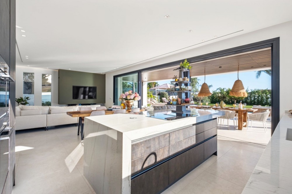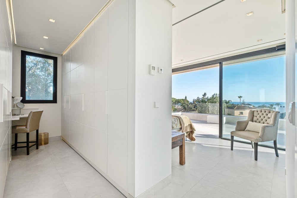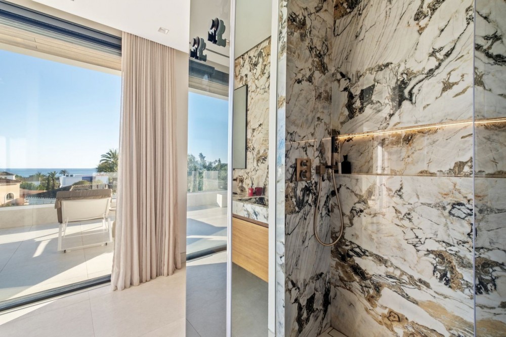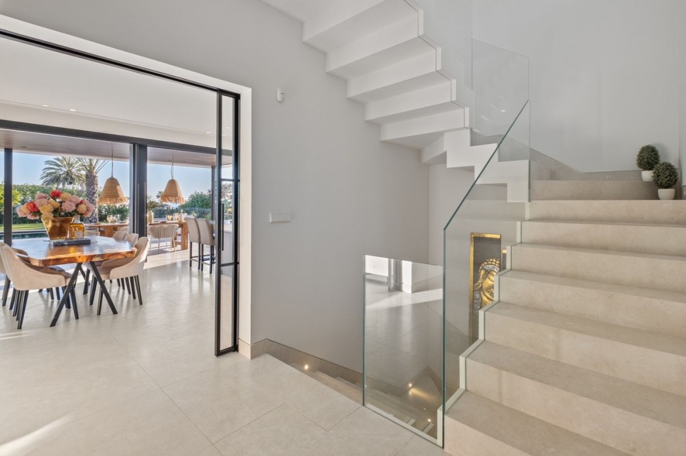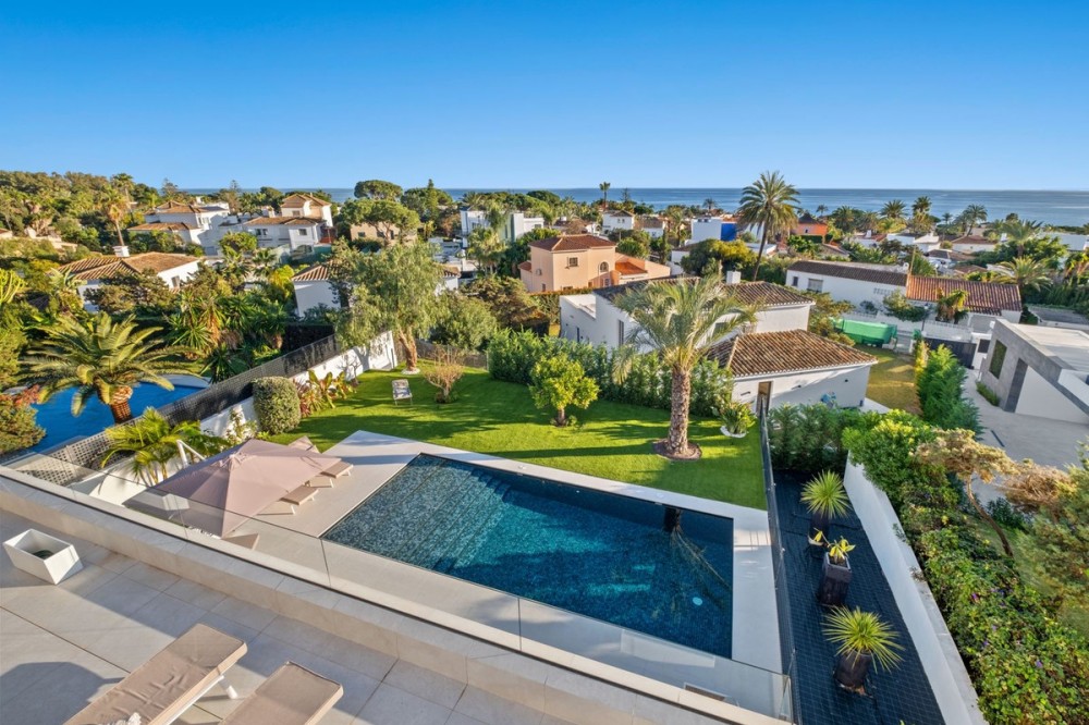 - Exclusivity and Comfort on the Coast of Marbella Located in the prestigious Marbesa area, just steps from the beach, this villa redefines the concept of luxury by the sea. This exceptional property offers contemporary architecture and premium finishes, featuring a spacious 227m² living area, a covered terrace of 44m², seamlessly extending into the garden, a 31m² first-floor terrace with stunning sea views, and a 65m² rooftop terrace complete with a luxurious jacuzzi. This provides the perfect outdoor space for year-round enjoyment. An unparalleled opportunity for those in search of a refined, functional home that combines modern elegance with comfort. Design and Spaces Boasting 4 spacious bedrooms and 5.5 bathrooms and fitness and relax room, this residence has been designed to maximize comfort and elegance. The upper floor features the master suite, with an open-concept bathroom and direct access to an impressive private solarium with a Jacuzzi, perfect for enjoying Mediterranean sunsets. The heart of the home is its open-concept kitchen, equipped with Siemens appliances, a hidden pantry, and a Liebherr fridge, all seamlessly integrated for an impeccable culinary experience. Luxury and Technology This villa stands out not only for its design but also for its state-of-the-art features: ✔ Underfloor heating on all levels ✔ Hot and cold air conditioning in every room ✔ Solar panels for instant hot water system ✔ Alarm detection in and outside ✔ Gas fireplace for a cozy ambiance ✔ Sonos audio system, dimmable LED lighting, and magnetic door locks Outdoor Spaces and Setting With a layout that encourages seamless flow between indoor and outdoor areas, the villa offers expansive terraces, perfect for entertaining or relaxing. The pool, with its Bali-inspired colour, becomes the visual centrepiece of the garden, designed for minimal maintenance (only €250/month for weekly upkeep garden and pool). Additionally, the property features electric awnings and automatic mosquito screens all around the covered terrace, ensuring privacy and comfort year-round. An Exclusive Home in the Best Location Situated in one of Marbella's most desirable areas, Villa Nani is ideal as a permanent residence or for those seeking a luxury second home by the sea. Want to discover everything this spectacular property has to offer? Contact us for more information or to schedule a private viewing.