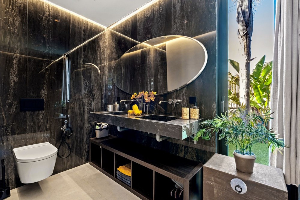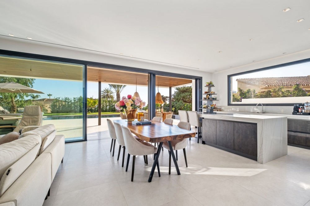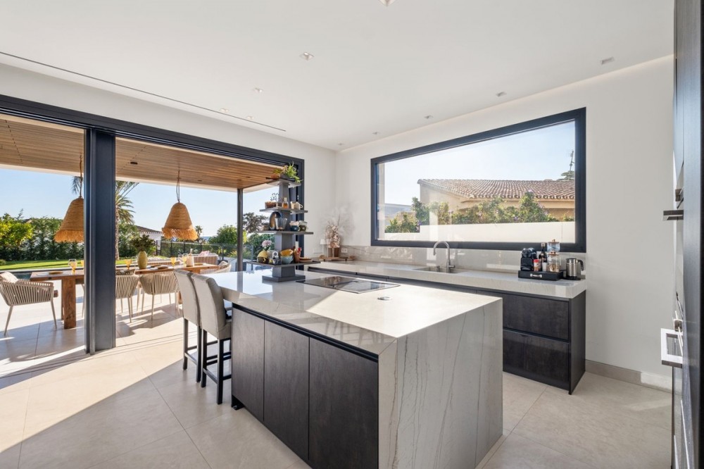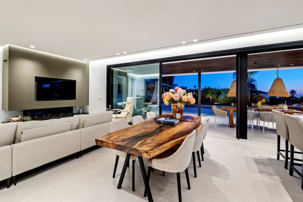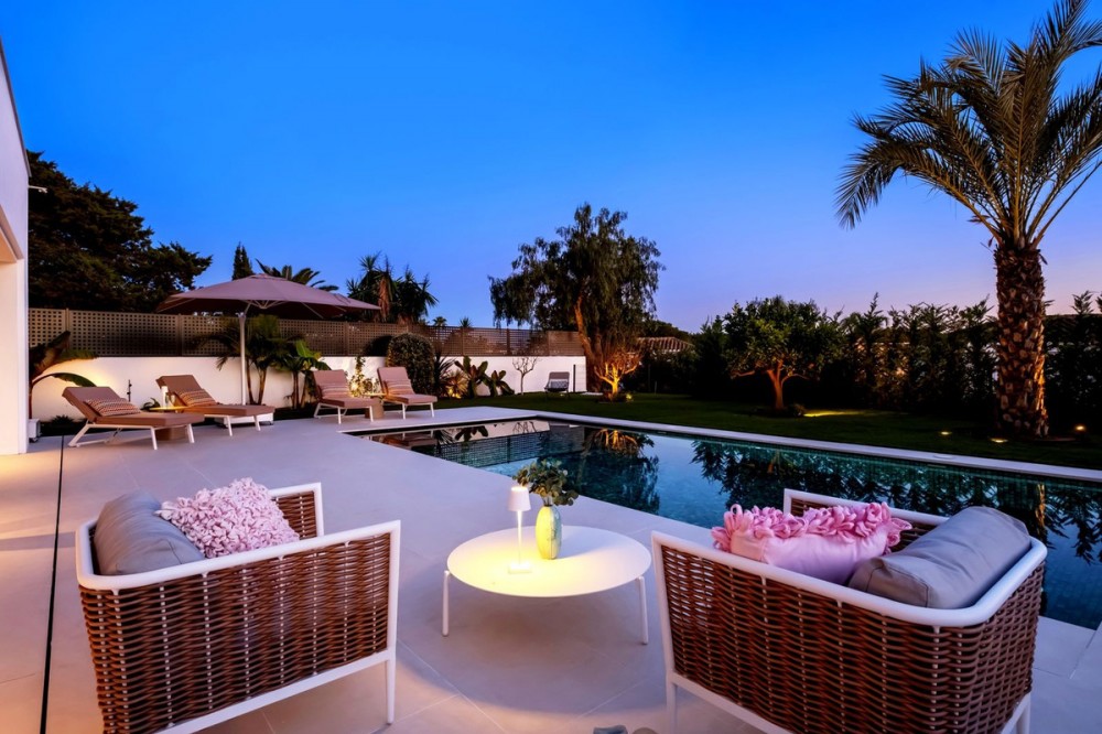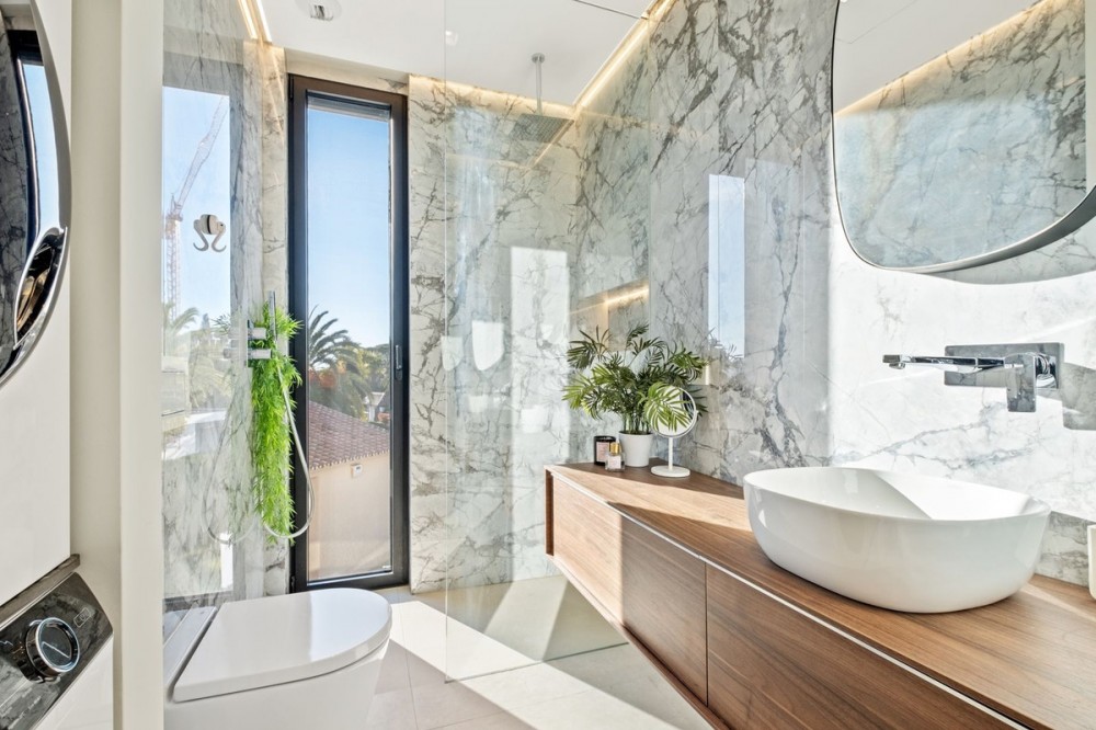 - Exclusivity and Comfort on the Coast of Marbella Located in the prestigious Marbesa area, just steps from the beach, this villa redefines the concept of luxury by the sea. This exceptional property offers contemporary architecture and premium finishes, featuring a spacious 227m² living area, a covered terrace of 44m², seamlessly extending into the garden, a 31m² first-floor terrace with stunning sea views, and a 65m² rooftop terrace complete with a luxurious jacuzzi. This provides the perfect outdoor space for year-round enjoyment. An unparalleled opportunity for those in search of a refined, functional home that combines modern elegance with comfort. Design and Spaces Boasting 4 spacious bedrooms and 5.5 bathrooms and fitness and relax room, this residence has been designed to maximize comfort and elegance. The upper floor features the master suite, with an open-concept bathroom and direct access to an impressive private solarium with a Jacuzzi, perfect for enjoying Mediterranean sunsets. The heart of the home is its open-concept kitchen, equipped with Siemens appliances, a hidden pantry, and a Liebherr fridge, all seamlessly integrated for an impeccable culinary experience. Luxury and Technology This villa stands out not only for its design but also for its state-of-the-art features: ✔ Underfloor heating on all levels ✔ Hot and cold air conditioning in every room ✔ Solar panels for instant hot water system ✔ Alarm detection in and outside ✔ Gas fireplace for a cozy ambiance ✔ Sonos audio system, dimmable LED lighting, and magnetic door locks Outdoor Spaces and Setting With a layout that encourages seamless flow between indoor and outdoor areas, the villa offers expansive terraces, perfect for entertaining or relaxing. The pool, with its Bali-inspired colour, becomes the visual centrepiece of the garden, designed for minimal maintenance (only €250/month for weekly upkeep garden and pool). Additionally, the property features electric awnings and automatic mosquito screens all around the covered terrace, ensuring privacy and comfort year-round. An Exclusive Home in the Best Location Situated in one of Marbella's most desirable areas, Villa Nani is ideal as a permanent residence or for those seeking a luxury second home by the sea. Want to discover everything this spectacular property has to offer? Contact us for more information or to schedule a private viewing.