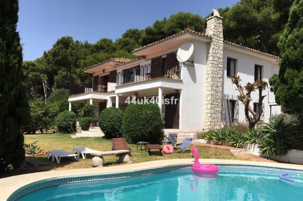 - ***Villa Investment opportunity with lot's of potential in Mijas Pueblo*** "Discover an exceptional investment opportunity with this expansive 500 m² detached villa nestled on a sprawling 3,863 m² plot on the outskirts of charming Mijas Pueblo. This property offers not only a luxurious living space but also the potential to build additional villas or apartments, making it a savvy choice for investors. With stunning views of lush green trees, majestic mountains, and the sparkling sea, this villa promises a serene and private retreat. Boasting 8 spacious bedrooms and 6 bathrooms, this home is perfect for large families or as an Airbnb rental investment. The south-facing orientation ensures ample natural light throughout the day, while the terrace and balcony provide perfect spots for enjoying the breathtaking vistas. The villa is equipped with modern amenities, including built-in wardrobes, storage space, and heating with a cold/heat pump. Accessibility is a key feature, with adaptations for individuals with reduced mobility. The property also includes a garage space and boasts an impressive energy efficiency rating of B, ensuring both comfort and sustainability. Located close to public transport, this villa combines tranquility with convenience, making it an ideal choice for those seeking a private yet accessible haven. Don't miss out on this rare opportunity to own a piece of paradise with endless possibilities!" There is a possibility to build other villas or apartments on a 3863 m2 plot The 500 m2 built detached villa has the most stunning views of green trees, mountain view of Mijas and sea view from the second floor! The property located in a very private area of the outskirts of Mijas Pueblo Ideal for Airbnb rental investment, close to public transport