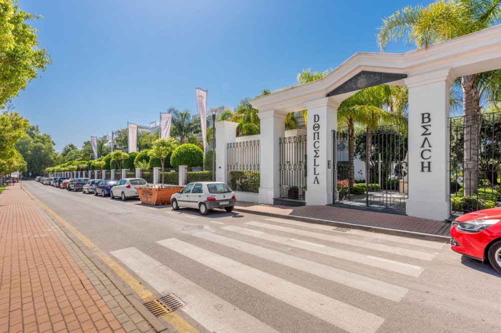 - Beachfront apartment in the prestigious Doncella Beach next to Playa Cristo in Estepona! This stunning beachfront garden apartment offers direct sea views and is perfectly positioned in a prime block of Doncella Beach, an exclusive and highly sought-after gated community in Estepona. Ideally located next to Playa del Cristo, a renowned beach on the Costa del Sol, this exceptional residence provides the ultimate coastal lifestyle—just a short walk from Estepona’s vibrant port and charming town center. Doncella Beach stands out for its iconic architecture, superior finishes, and exceptional security, making it a prestigious address in Estepona. Inside, a welcoming entrance hall leads to a bright and spacious open-plan living area, seamlessly connecting to a large glass-enclosed terrace—ideal for year-round enjoyment. The fully equipped modern kitchen features an adjacent utility room for added convenience. The master suite includes a luxurious en-suite bathroom, while the guest bedroom enjoys its own private terrace and a separate bathroom. This sophisticated apartment is sold partly furnished and includes a private parking space and a spacious storage room. A rare opportunity to own a luxurious beachfront residence in a premier development that blends elegance, comfort, and an unbeatable location.