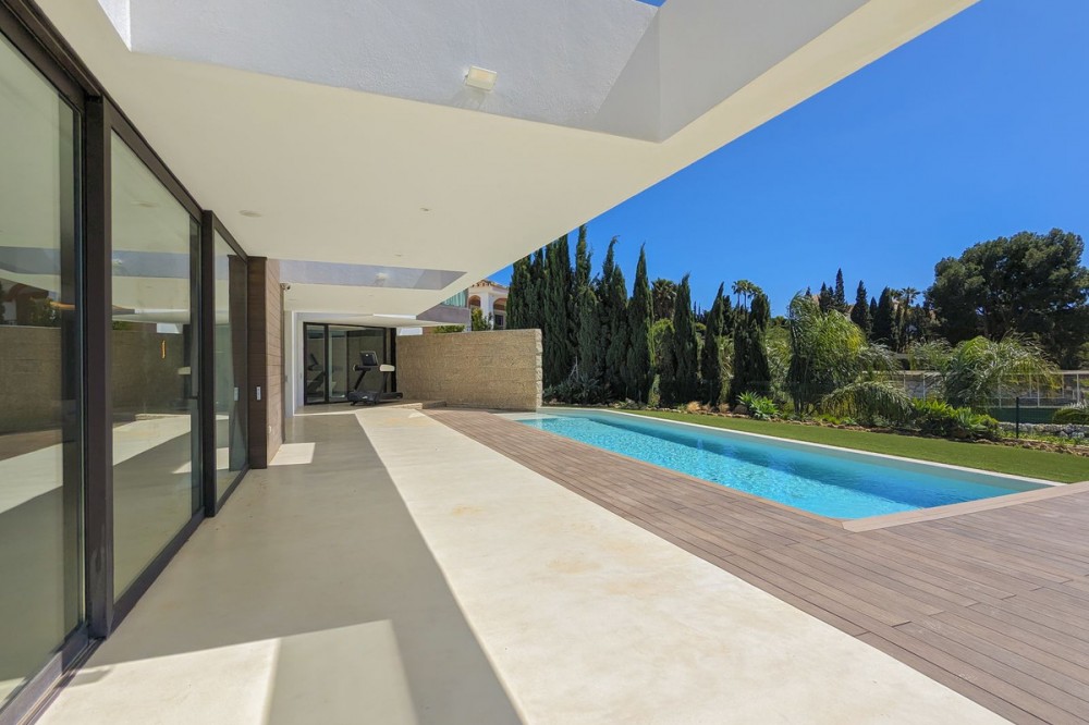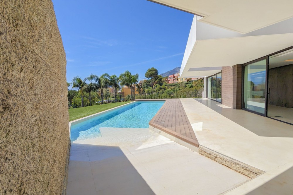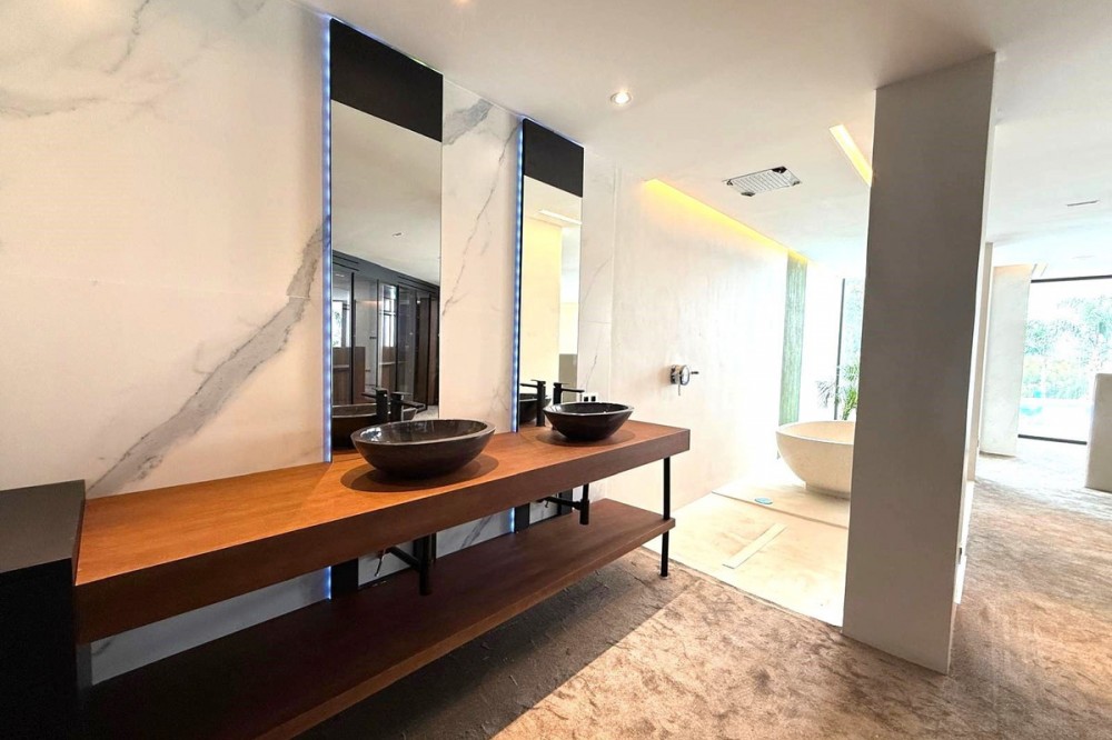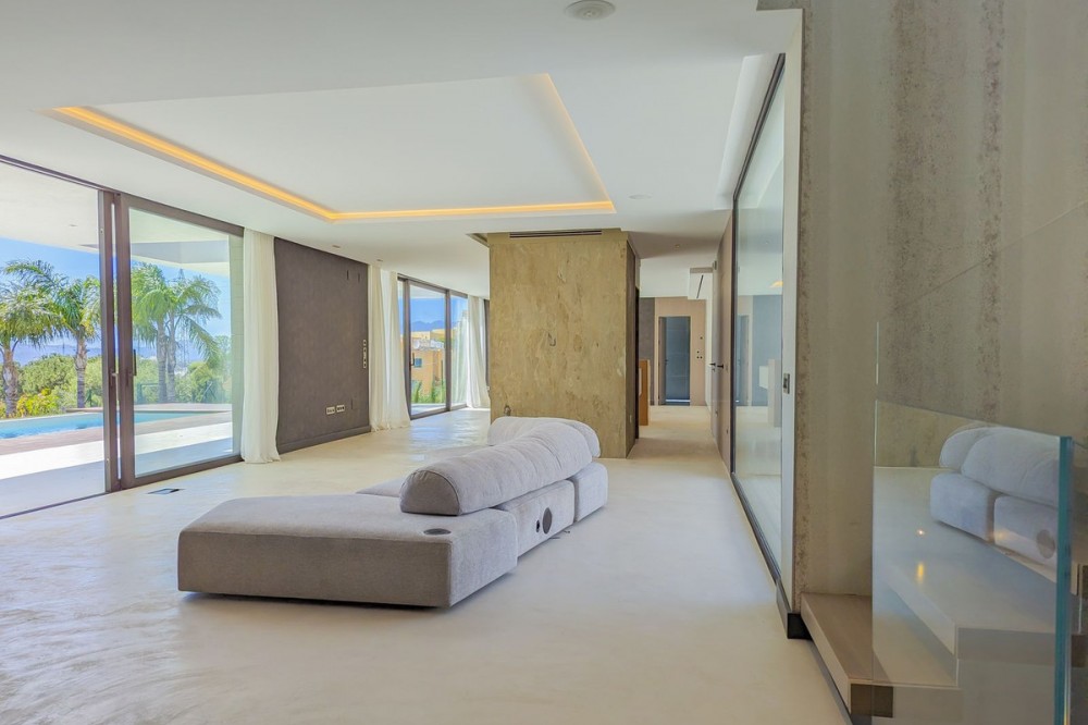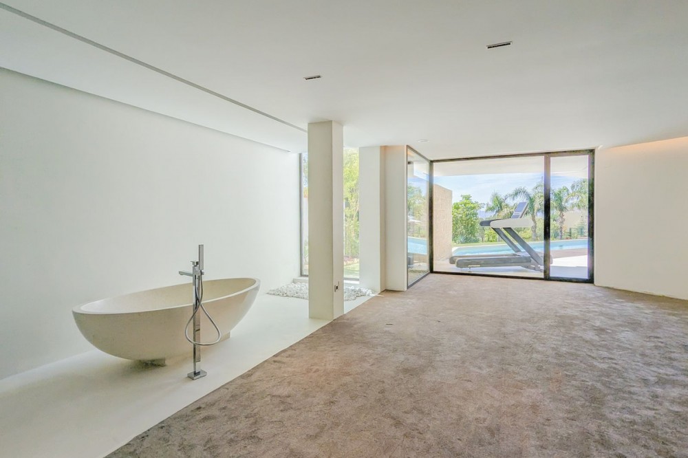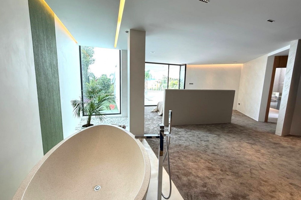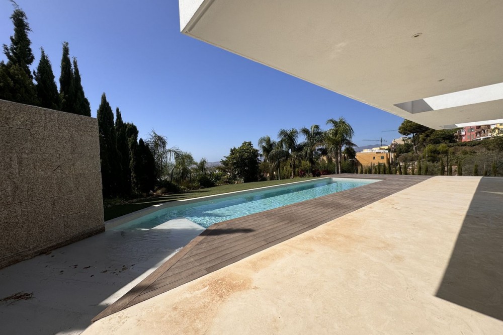 - Wonderful brand new luxury villa, in one of the most sought-after areas of Benalmádena, in the heart of the Costa del Sol. This incredible property has an eight hundred meter garden, with an infinity pool where you can enjoy the warmth and sun of summer.On the first floor we will be greeted by the enormous living room with a fireplace and a door with access to a 150-meter terrace. The master bedroom has its own bathroom en suite and an unparalleled large dressing room.Upon going up to the second floor we will We will find two bedrooms and a bathroom. In the basement we can get in shape with the gym. Without leaving us the garage for two cars included in the property. This home will not leave us immune to its beauty, the luminosity and the energy of a job. well done. The panoramic views will lead us to the majesty of the sea and the mountains.