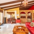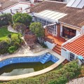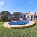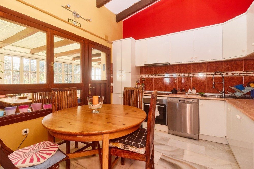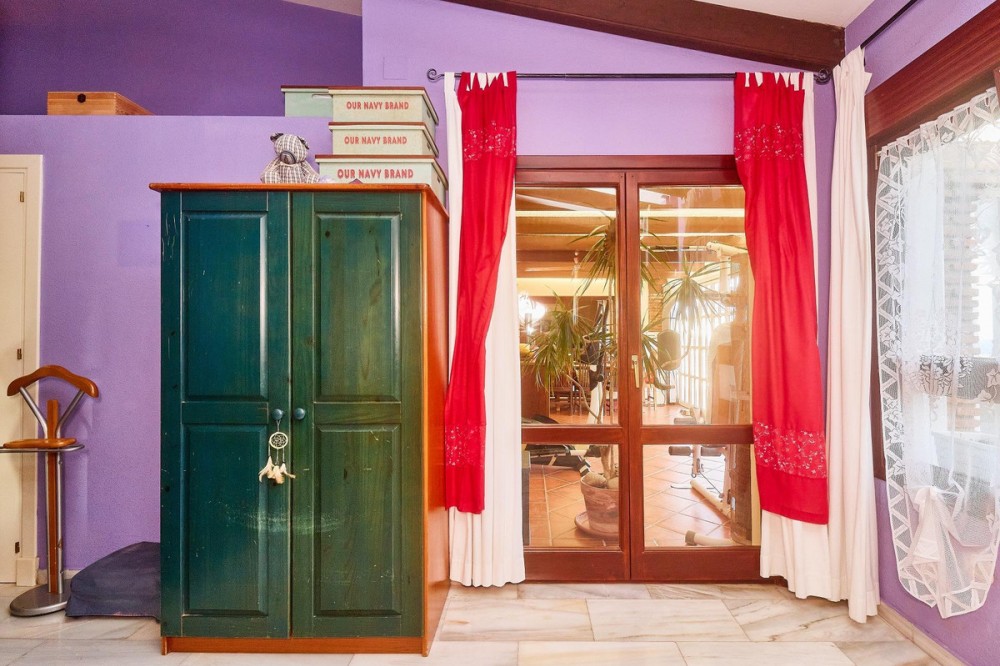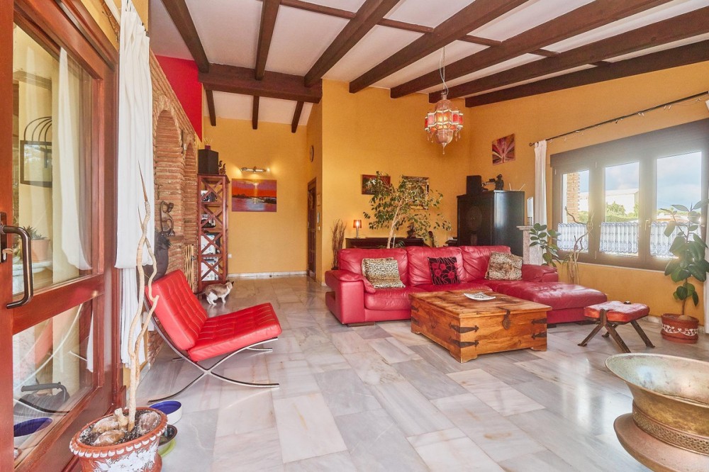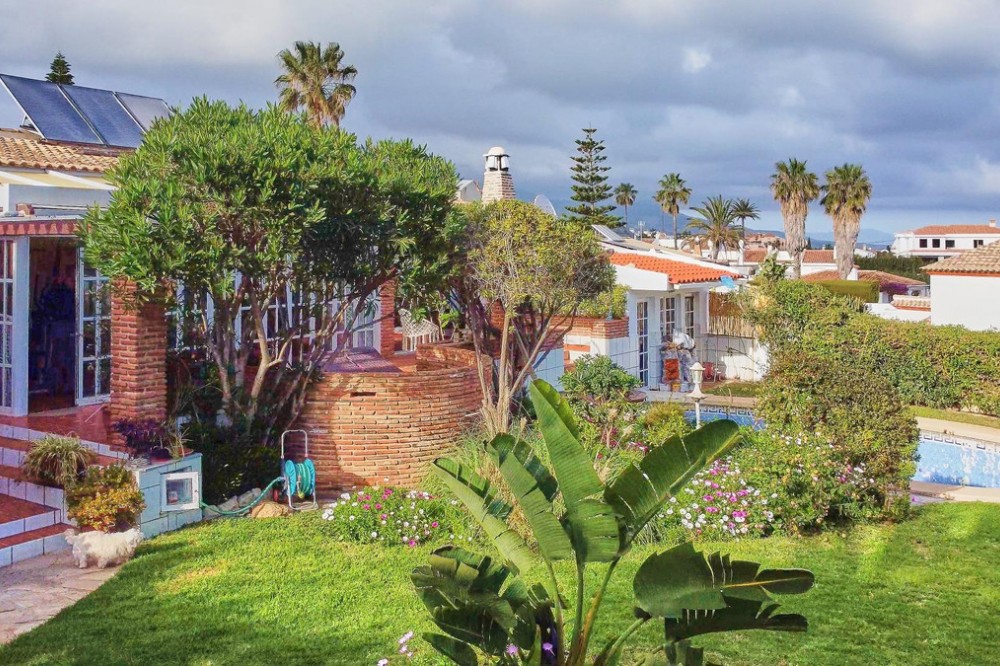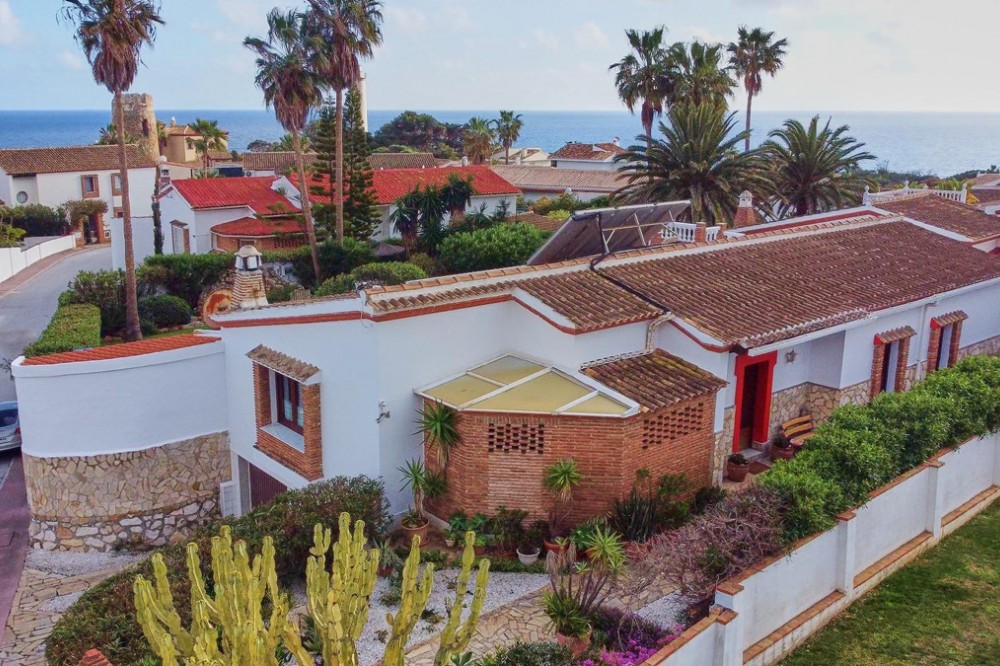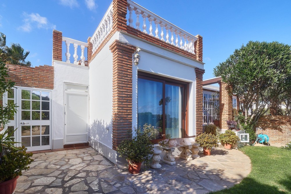- Located in the established urbanization of El Faro, just a few meters from the beach and situated on one of the best plots, offering you stunning panoramic views of the sea and the mountains, is this charming Andalusian-style villa. The property exudes warmth and character, with marble floors, exposed wooden beams and brick arches that enhance its cozy atmosphere. This single-storey villa offers a spacious and functional layout with multiple indoor and outdoor living areas. The carefully landscaped garden is a true private oasis with a swimming pool, several shaded seating areas and lush vegetation that reinforces the feeling of tranquility. Whether enjoying the sun by the pool or relaxing in a cozy corner with panoramic views, each outdoor space is designed for rest and entertainment. Inside, the open-concept layout allows for a fluid connection between spaces, where natural light floods the living room through large windows, with robotic electric blinds, to further enhance the experience. The living area is light and airy, with direct access to a terrace overlooking the beautiful garden and sea views. The feeling of warmth is breathed by fusing the exposed wooden beams with a fireplace, ideal for creating cosy moments. The semi-independent kitchen, with a direct connection to both the living room and dining room makes it perfect for both daily life and entertaining. The villa includes 3 well-proportioned bedrooms within the main house, with plenty of natural light and views of the circulating vegetation. The fourth room is independent with direct access to the garden, which improves the connection with the outside and is ideal for hosting guests who want a little more privacy. Other amenities include 2 underground parking spaces, several storage rooms, solar panels for hot water and automatic robotic blinds. This villa is ideally located within walking distance of the beach, 5 minutes from both Fuengirola and La Cala de Mijas, providing you with supermarkets, golf courses, schools and restaurants. This makes it an excellent choice for those looking for a comfortable coastal home with privacy, charm and comfort.