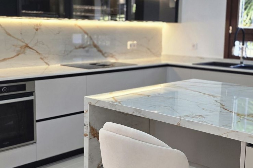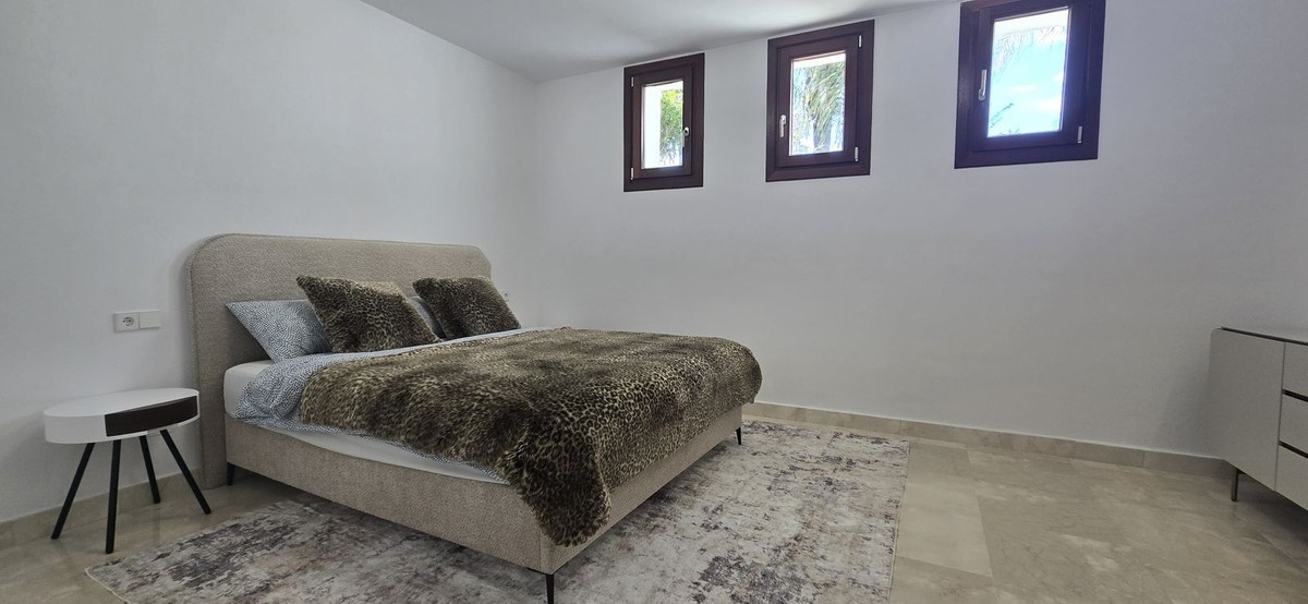 - This beautifully renovated villa is located in the highly desirable gated community of La Capellania Hill Club, on the prestigious Golden Mile. Spanning nearly 500 sqm across three floors, all connected by an elevator, the villa boasts six en-suite bedrooms. The spacious living and dining areas offer stunning views of the lush gardens and the sea, while the large, fully renovated kitchen features a separate dining area. The basement level includes a sizable garage with space for at least two cars, a large living room, two en-suite bedrooms, and a dressing room. The dressing room could easily be converted into a bedroom or office, as it also has its own private en-suite bathroom. Additionally, this level offers machine rooms and ample storage space. On the ground floor, the bright and airy living and dining area overlooks the gardens, communal swimming pool, and the sea. The kitchen is separate, tastefully redesigned with a beautiful breakfast island and high-end appliances. This level also includes a versatile bedroom or office, complete with its own en-suite bathroom. The villa features underfloor water heating throughout the entire home, ensuring optimal comfort. Additionally, four expansive terraces enhance the living space, providing ample room for outdoor relaxation and entertainment. This dream property can be yours!"