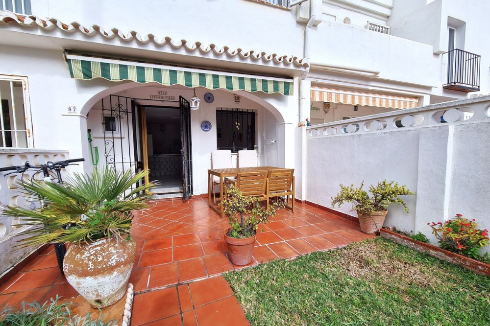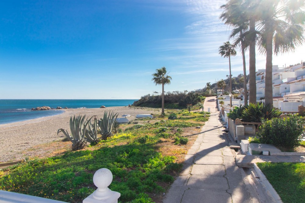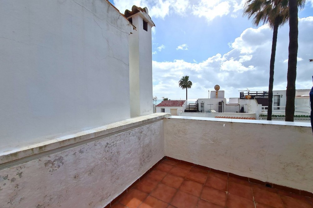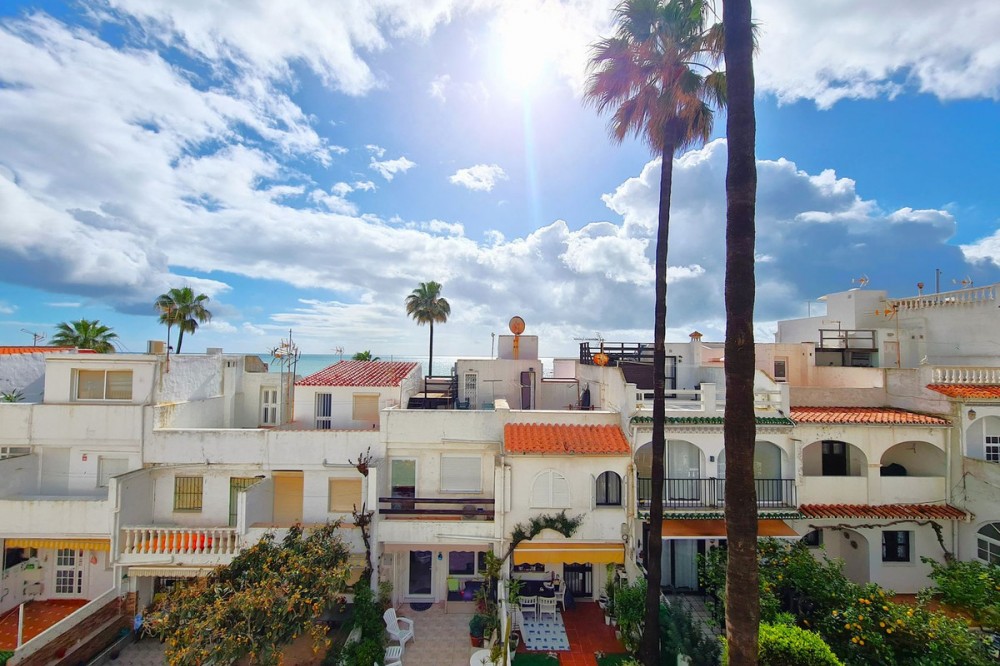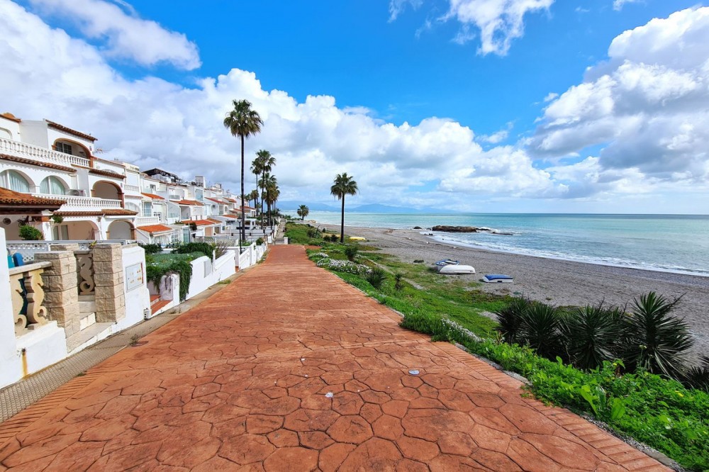 - FANTASTIC 2-BEDROOM TOWNHOUSE WITH PRIVATE GARDEN 50 METERS FROM THE BEACH!! The house is located on the second line of the beach, just steps from the beautiful coastal path that connects the entire Costa del Sol. Sabinillas and the prestigious Sotogrande are just a 5-minute drive away, where you'll find supermarkets, restaurants, and shops. The property is south-facing and has a beautiful private garden with a porch that serves as the entrance to the house, which is spread over two floors plus the solarium. On the ground floor, there is a living-dining room with a fully equipped open-plan kitchen and a guest toilet. On the first floor, there are two bedrooms: a master bedroom and a single bedroom, as well as a shared bathroom equipped with a shower. On the top floor, there is a solarium with partial sea views and a room that is currently used as a laundry room. The house enjoys beautiful gardens and a communal pool. A GREAT OPPORTUNITY TO EXPERIENCE THE LUXURY OF BEACHFRONT LIVING! WE RECOMMEND A VIEWING!