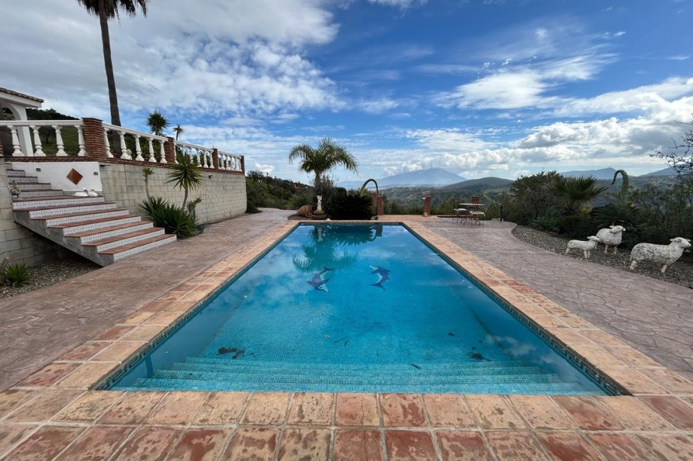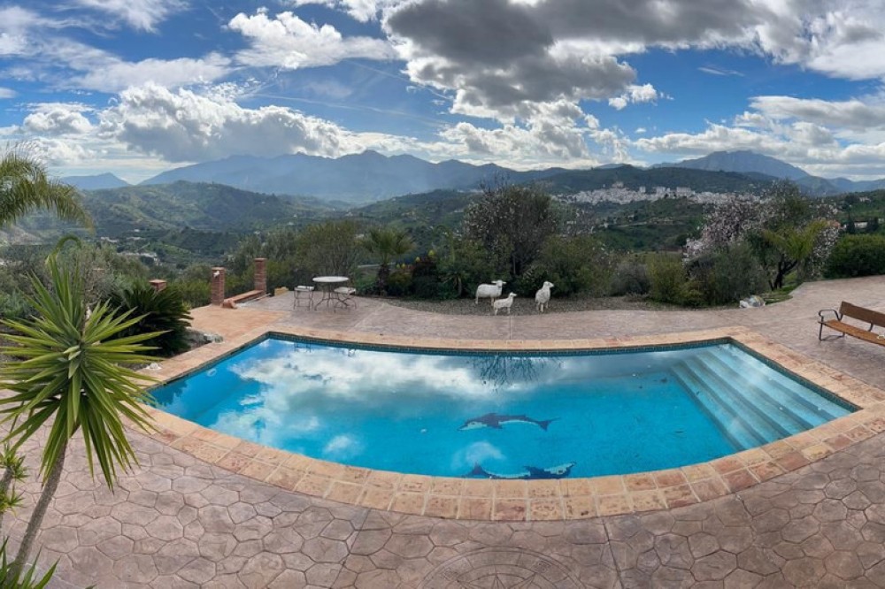 - Your first class bungalow finca with own pool ( 4 x 10 ) in Guaro on the best location from the area, 180º degrees panoramic valley and mountain view, totally open, all green like the best emerald. During most of the days of the year one can see a stripe of seaview towards the east over Malaga city. On an elevated position that garantees the valley views towards the village of Guaro, east & south & west orientation, the most sunniest exposure imaginable. The plot measures 12.124m2 which gives the legal protection we all are looking for. Automatic irrigation. One reaches this dream finca via a tipical finca and rural area road, easy to drive and for all cars suitable Watertank, solarpanels on roof, gas bottles conexion, ample parking for about 11 cars, patio behind the finca, Starlink Mini kit installed for the fastest wifi speed. The house, all on 1 level, has 4 bedrooms, 2 bathrooms, living ding area and kitchen. Installed radiater heating sistem as well as aircos hot & cold. Built area of the house is 150m2 plus terraces of 200m2 by the house plus 150m2 by the pool. All groundfloor level and no stairs. Unique finca !