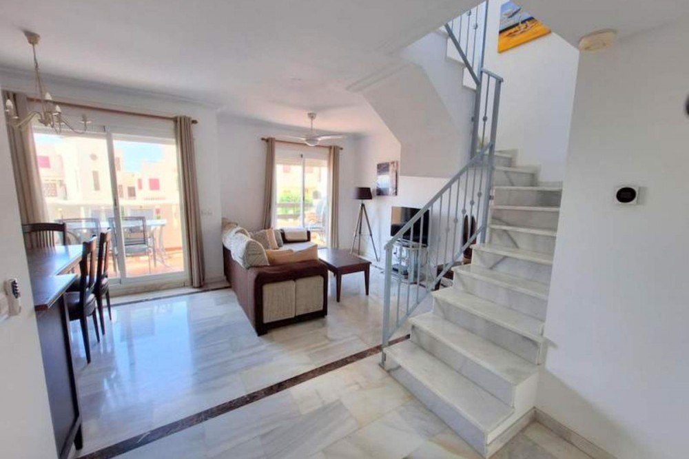 - This is a sought-after gated community in Casares Costa, where breathtaking sea views and tranquil surroundings create the perfect coastal retreat. This spacious 3-bedroom duplex penthouse is a dream home for those seeking luxury, comfort, and endless sunshine. As you step into the entrance hall, you're greeted by an open-plan living area filled with natural light. The patio doors lead to a south-facing terrace, where you can soak up stunning views of the Bay of Casares. The modern kitchen is fully equipped, and this level also features a large bedroom, a stylish bathroom, and ample storage space. Ascend the elegant marble staircase to the mid-level, where you'll find two generously sized bedrooms, each with their own en-suite bathroom and private terrace—ideal for morning coffee or evening sunsets. There is an expansive rooftop solarium on the upper level, offering panoramic coastal views—your private paradise for sunbathing, entertaining, or simply unwinding under the Spanish sky. This beautiful home also boasts marble flooring, sold furnished, and an underground parking bay. With stunning communal pool and lush landscaped gardens, this is an ideal investment for holidays, rentals, or permanent living. Don’t miss this opportunity—your dream coastal escape awaits!