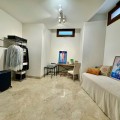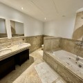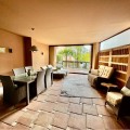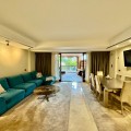 - Modern beachfront apartment in prestigious gated complex, located in San Pedro de Alcantara. This south facing apartment located on the elevated ground floor. There is a spacious living & dining area with the access to the big terrace and to the swimming pool. At the same level there is a fully fitted kitchen (with Bosch appliances), one master bedroom en-suite, one guest bedroom with access to the covered terrace, guest bathroom. Apartment has semi basement where there is another spacious living area with soundproofed music area, an office and guest bathroom. This space can be converted into a third bedroom, a gym, or any other idea. Two underground parking spaces and storage (7 m2) are included in the price. Gated complex has a big swimming pool and spectacular garden with direct access to the beach, 24hrs security and concierge service. Apartment is fully furnished with good quality Italian furniture. Glassed terraces, marble cream color floors. It is within walking distance from all kinds of shops and services, International schools and Marbella. An ideal holiday home or permanent residence!