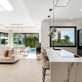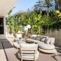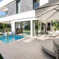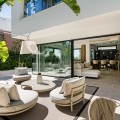 - Located in the prestigious area of Sierra Blanca, this modern villa offers a prime setting just 1.8 km from the Golden Mile’s beaches. Completed in 2022, the property combines exceptional design with the highest quality finishes, delivering sea views from every level and true luxury living in one of Marbella’s most sought-after neighbourhoods. From the moment you enter, the attention to detail is clear. A bespoke modern kitchen with fully integrated Miele appliances connects seamlessly to the open-plan living and dining area, flowing directly onto the expansive terrace, pool, and gardens. Thanks to its south to west orientation and floor-to-ceiling windows, the villa is bathed in natural light throughout the day. Only the finest materials have been used, including Porcelanosa tile flooring inside and out, triple-glazed Cortizo windows, Porcelanosa bathroom fittings, oak carpentry, and ambient lighting throughout. Comfort and convenience are guaranteed with underfloor heating across the entire home, zoned air conditioning, a domotics system for lighting and climate, and a built-in cinema-grade sound system. The outdoor areas are designed for relaxation and entertaining, with Mediterranean planting, citrus trees, and a low-maintenance rear garden with magnolias. The heated pool includes a swim current system, perfect for endless laps under the sun. The villa’s layout offers three bedrooms upstairs and one on the lower level. The master suite enjoys its own en-suite bathroom, while the two additional bedrooms share a high-spec bathroom. Each bedroom opens onto a private terrace with sea views and peaceful seating areas. The lower level features a further bedroom with en-suite, a utility room with Miele appliances, storage, and a large private garage fitted with a Tyssenkrupp car turntable for ease of access. Additional gated driveway parking adds practicality. The showpiece of the property is the spectacular rooftop solarium. With panoramic views stretching from Puerto Banús to Gibraltar and across to North Africa, this level is designed for entertainment and wellness. It includes a dining space for up to ten guests, an outdoor teppanyaki grill, a Porcelanosa kitchen with fridge, dishwasher, and island, a large jacuzzi, an outdoor shower, a Balinese bed, and a bespoke Scandinavian sauna with built-in Bluetooth. An automated retractable roof and heating panels ensure year-round enjoyment. Las Vistas 4 combines prime location, world-class qualities, breathtaking views, and exceptional lifestyle features, making it a rare opportunity to own one of Marbella’s finest modern villas.