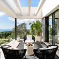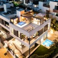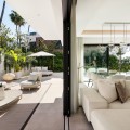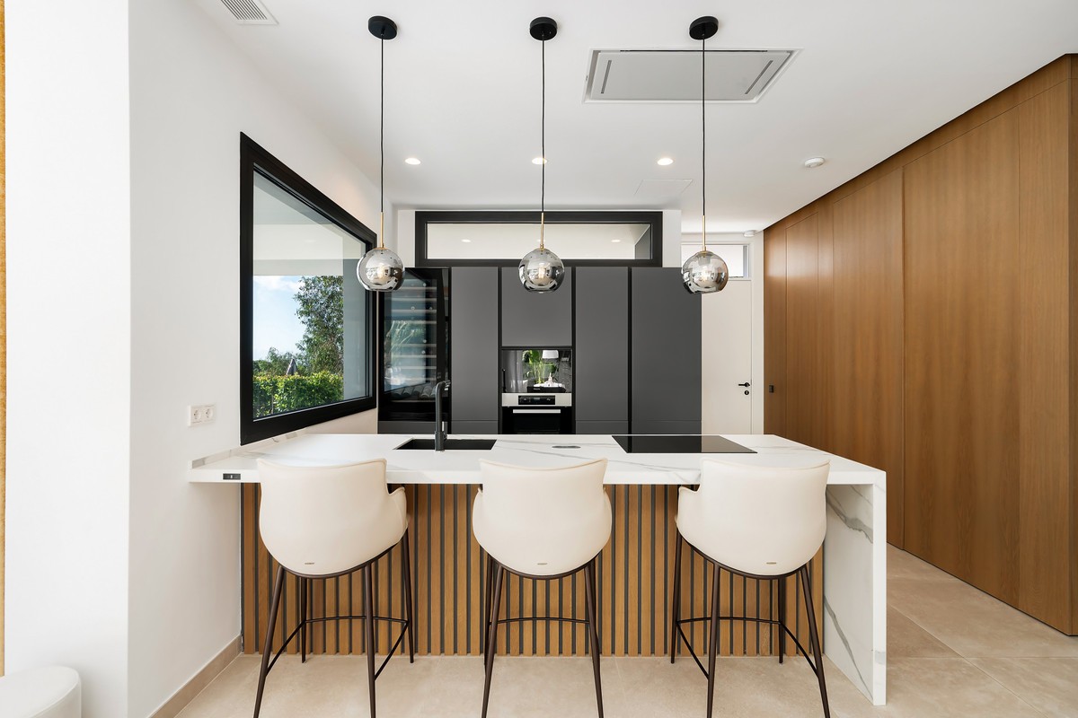 - Ladies and gentlemen, let us guide you home. Located in the prestigious area of Sierra Blanca offering a prime location, the highest of qualities and details through-out, sea views from every single level and located only 1.8km from door step to beach of the Golden Mile. This stunning unique modern semi detached villa, was recently built and completed in 2022 and offers true luxury living within one the best and most sought after areas of Marbella. The moment you enter the property you instantly see and feel the qualities throughout. A modern bespoke kitchen with fully integrated Miele appliances throughout greets you, connecting you with the open plan living and dining area which flows directly out into the expansive terrace, pool and garden area. Due to the properties south/south-west and west orientation, sunlight floods the property which is enhanced by the floor to ceiling widows and doors. Only the best brands and materials have been used, with the likes of Porcelanosa tile flooring indoor and out, Cortizo terrace doors and windows with triple glazing, Porcelanosa washroom hardware, underfloor heating throughout the entire property, zonal AC systems and lighting operated via the domotic systems, built in cinema grade sound and entertainment systems, oak carpentry and ambient lighting through-out amongst more. The main terrace and garden areas seamlessly flows from indoor to outdoor and here you find several outdoor seating and relaxing areas. A beautiful stone wall with built in atmospheric lighting and Mediterranean planting such as aromatic herbs and plants, orange, lemon and lime trees offers a cosy and intimate feeling. To the rear a low maintenance garden with magnolia trees offers you greenery and a fantastic aspect view of the property. The pool has been strategically placed ensuring sun all day long, which is also heated and installed with a swim current machine, meaning endless lengths all day long for keen swimmers. The properties distribution offers 3 bedrooms up and 1 down. From the main living area you can either take the stairs up or down or alternatively use the internal Tyssenkrupt lift which takes you to each level of the property. On the upper bedroom level here you find the 3 bedrooms comprising of a master with ensuite, and 2 further bedrooms sharing a bathroom, with bathrooms fitted out in Porcelanosa and high end finishes. Each bedroom has its own terrace space all offering fantastic sea views and relaxing seating areas to unwind. At the lower level of the property you find a bedroom with ensuite bathroom, utility/laundry room with Miele appliances, storage space and a closed off large private garage. The garage has been installed with a Tyssenkrupt car turn table, ensuing manoeuvring cars in and out an easier process, space on the covered gated drive way outside also allows for a further car to be kept. The piste de resistance of the property is the enormous roof top solarium. Not only does it offer the best panoramic sea and mountain views you can find in Marbella, it also offers coastline views from Puerto Banus to Gibraltar to North Africa. Added to this an incredible entertainment, wellness and relaxation area, fully fitted out with a Balinese bed and seating area a automated retractable roof cover, heating panels, speaker systems, full outdoor dining area for 8-10 people, outdoor teppanyaki grill, Porcelanosa kitchen area with fridge, dishwasher and island, large jacuzzi, outdoor shower and a bespoke high quality Scandinavian sauna with built in Bluetooth, positioned due South giving you the most astonishing sea views. With location, qualities, views, garage space and overall luxurious and high end living, this is a truly exception and rare opportunity to purchase.