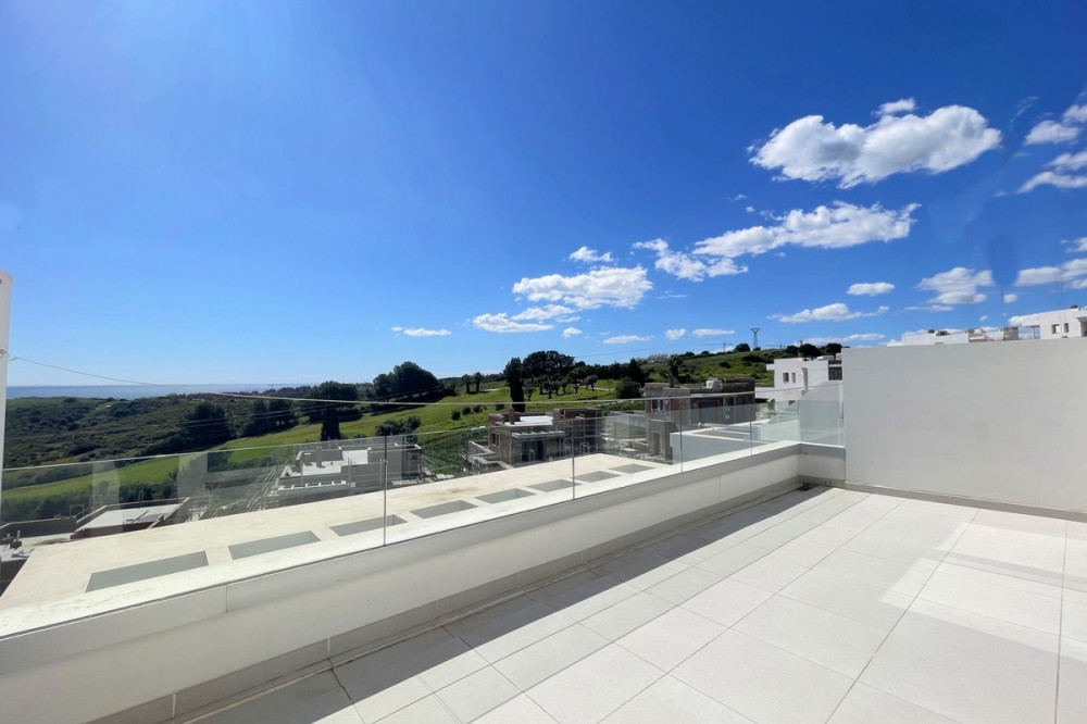 - MAGNIFICENT DUPLEX PENTHOUSE WITH STUNNING SEA AND GOLF VIEWS AND A TOURIST LICENSE This spectacular duplex penthouse, located in an exclusive frontline golf development in Estepona, boasts a privileged south-facing orientation, ensuring abundant natural light throughout the day and breathtaking panoramic views of the sea and golf course from every room in the home.Just 5 minutes from the exclusive Alcazaba Lagoon and close to the new Estepona hospital, restaurants, supermarkets, and schools, this property offers a very convenient and well-connected location.On the main floor, the property features a modern, fully equipped kitchen that seamlessly integrates with the spacious living room, which opens directly onto a private terrace—perfect for enjoying the stunning surroundings. This level also includes two large bedrooms with built-in wardrobes, a full bathroom with double sinks and a walk-in shower, and a small laundry area.Upstairs, you’ll find the spacious master bedroom, complete with a walk-in wardrobe, en-suite bathroom with walk-in shower, and access to a private terrace with sea views—ideal for relaxing in complete privacy. The property also includes a private underground parking space and a storage room. The development offers excellent amenities, including a large swimming pool with views of the sea and mountains, a fully equipped gym, and 24-hour security, all set in a peaceful and well-maintained environment.This property is perfect for comfortable, tranquil living or as a high-potential rental investment, as it comes with a permanent tourist license—making it especially attractive during the peak summer and golf seasons. It’s a unique opportunity on the Costa del Sol!Don't hesitate to schedule a visit and see its full potential!