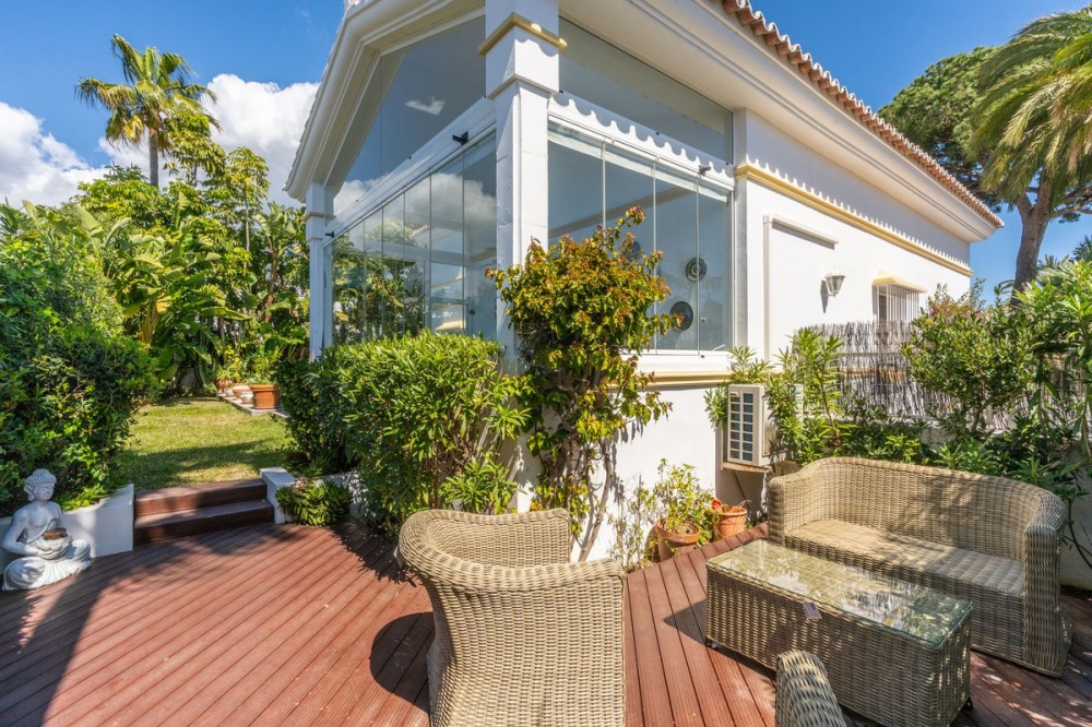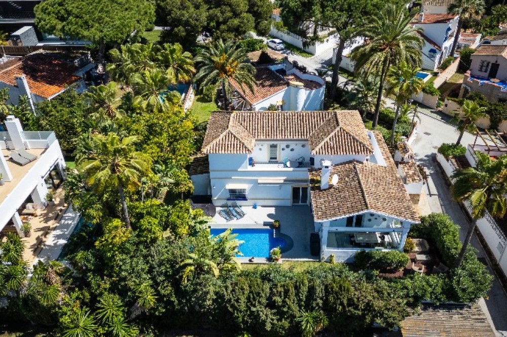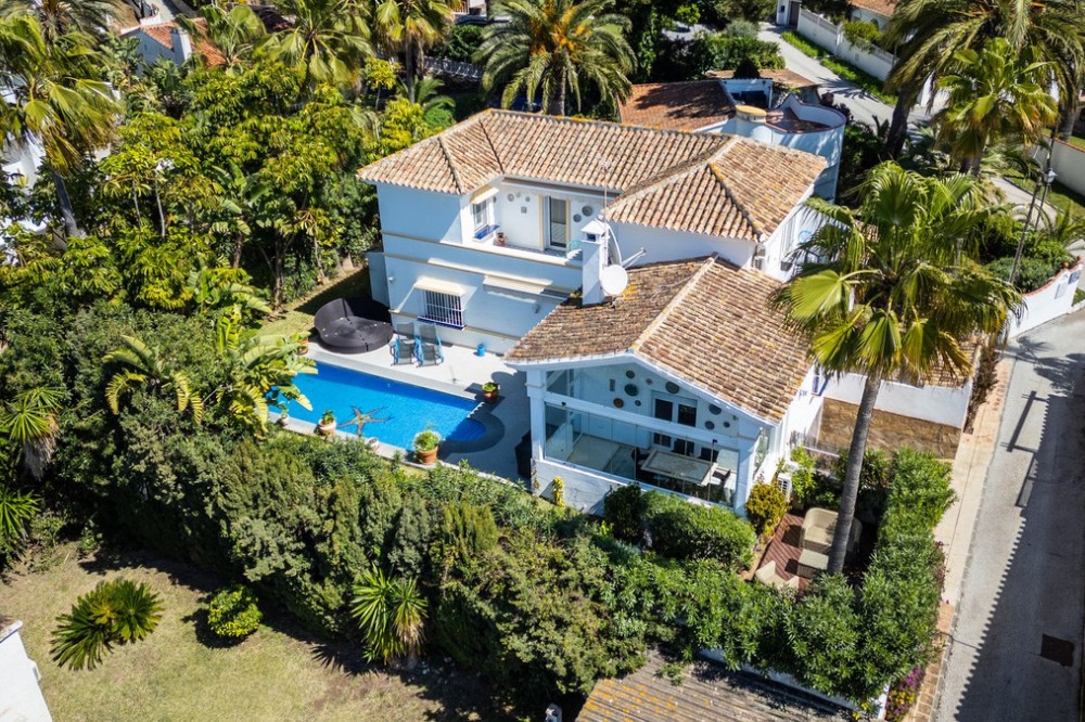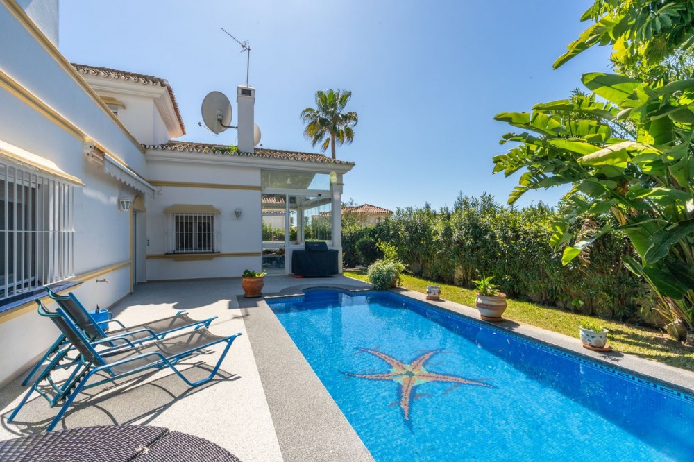 - Located in the peaceful, secure residential area of Marbesa, this warm Mediterranean-style villa offers the perfect blend of comfort, privacy, and convenience. Just a 1-minute walk from the beach, close to all amenities, and only a short drive to Marbella and Málaga Airport. The property boasts a magnificent private garden and pool, creating a serene retreat. The villa features 3 bedrooms all with en-suites across two floors: On the main floor of 126 m2; hallway with guest toilet, spectacular living room adjacent to a modern kitchen and seamless connection to the verandah (porch) and garden & pool of 24m2. 1 bedrooms (delete s)with ensuite bathroom. Upper floor of 88 m2 Two bedrooms with 2 ensuite bathrooms leading onto terrace with lovely sea views, including a master suite with (a dressing room?) and terrace. Basement of 116 m2 with lock up garage for 2 cars plus storage room. The home offers heated floors and wall radiators throughout, ensuring year-round comfort. Private parking for two cars completes this exceptional property. A perfect Mediterranean retreat to enjoy life under the sun. Call us to schedule a visit! -Chlorine pool. --Reverse cycle air con in lounge and all bedrooms. -Gas powered central heating.