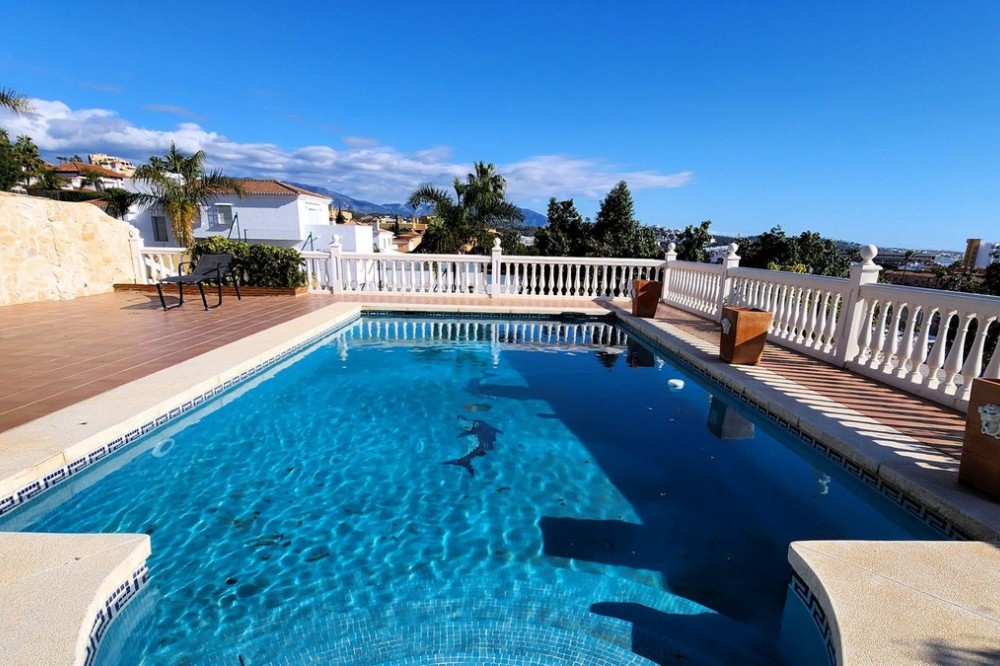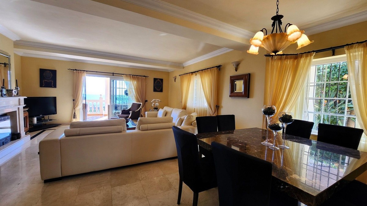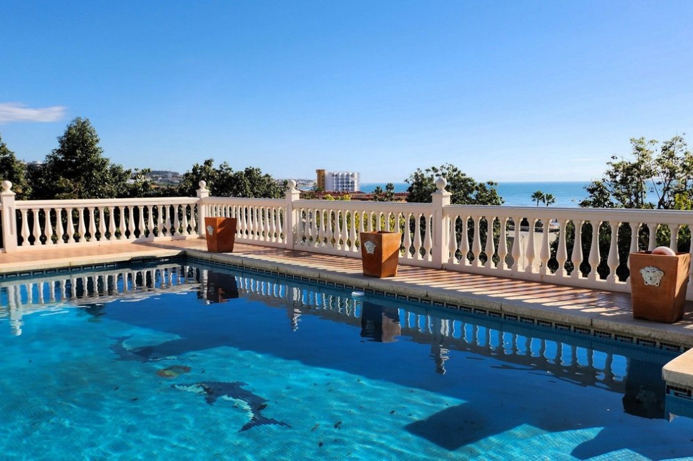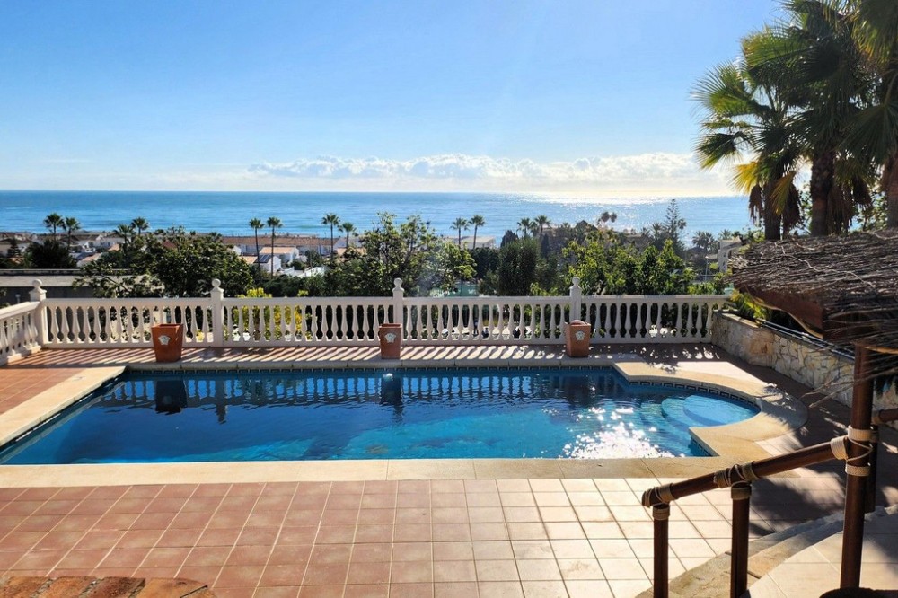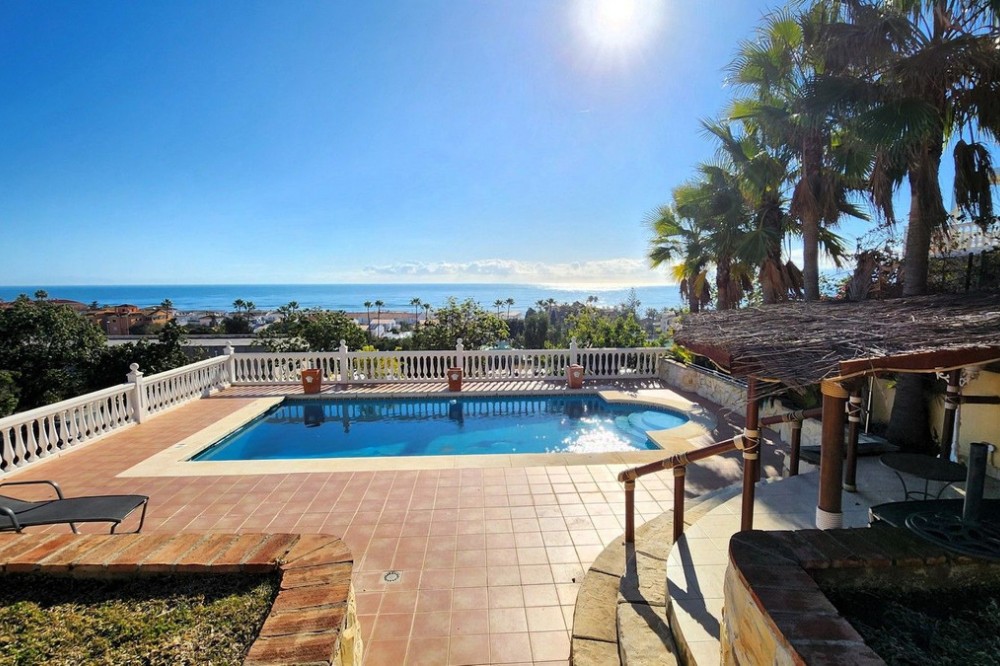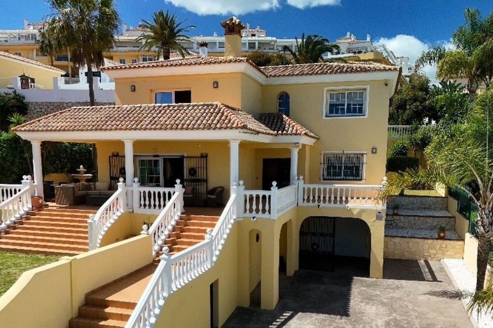 - Experience panoramic sea views that will take your breath away! This stunning villa is just a short stroll to all the vibrant amenities and the pristine beach, offering some of the most breathtaking coastal vistas you've ever seen. Nestled in the coveted Jardin Botanico, just minutes from the heart of La Cala de Mijas, this property is a true gem. Set on a generous double plot, it provides ample space to truly live your dream. With five exquisite bedrooms, each boasting its own en suite, and a stylish guest toilet, comfort and elegance are at the forefront. The vast basement features a massive double bedroom, a lively games room, and a convenient shower room—a perfect retreat for family and friends. Up on the first floor, you'll find another charming bedroom, a stunning lounge graced by a colossal fireplace, and those extraordinary sea views that will forever inspire you. The sleek kitchen with access to the backyard makes everyday living a pleasure. Ascend the grand staircase to discover three additional en suite bedrooms, including the master retreat with its own private terrace—an oasis of peace and luxury. If you’re seeking a remarkable investment or a place to call home that stirs your soul, this property is calling out to you. Don’t miss the chance to make this enchanting haven yours!