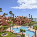 - The crown jewel of Estepona’s New Golden Mile. This exceptional 3-bedroom, 3-bathroom duplex penthouse offers breathtaking south-facing views of the Mediterranean from every level, immersing you in the beauty of beachfront living. Designed by the renowned architect Melvin Villarroel, creator of Marbella’s iconic Puente Romano Resort, this home is a masterpiece of elegance and comfort. The penthouse features underfloor heating throughout, impeccable finishes, and expansive terraces (116m²) that perfectly frame the sea views. Fully furnished and equipped, it includes a built-in BBQ, private storage, and garage. Every detail has been curated to deliver the ultimate coastal lifestyle. The complex offers more than just a home—it’s a private paradise. Exclusive to owners is a private beach zone, where tranquility and luxury combine seamlessly. The community boasts two gyms, including a cardio zone, two spas with his-and-hers saunas, and two stunning communal pools with cascading waterfalls. A coworking and dining zone on the premises adds to the convenience, while landscaped gardens, serene ponds, and direct beach access create a setting of pure relaxation on the most beautiful boardwalk in the Costa del Sol. Conveniently located within walking distance of grocery stores, restaurants, and cozy cafeterias, Cabo Bermejo ensures that all your daily needs are just a short stroll away. Surrounded by five-star amenities, including world-class dining at Tikitano by Besaya and Las Dunas, and flanked by the prestigious 5-star Ikos Andalusia and 5-star Las Dunas Spa Hotel on either side, this location offers the best of the Costa del Sol. Adjacent to a historic first-century Roman villa, the development ensures no further construction in this serene enclave. Perfectly situated, it’s just a 12-minute drive to Estepona and 15 minutes to Puerto Banús. This is more than a property; it’s a lifestyle. Don’t miss the chance to view one of Cabo Bermejo’s most exclusive penthouses.