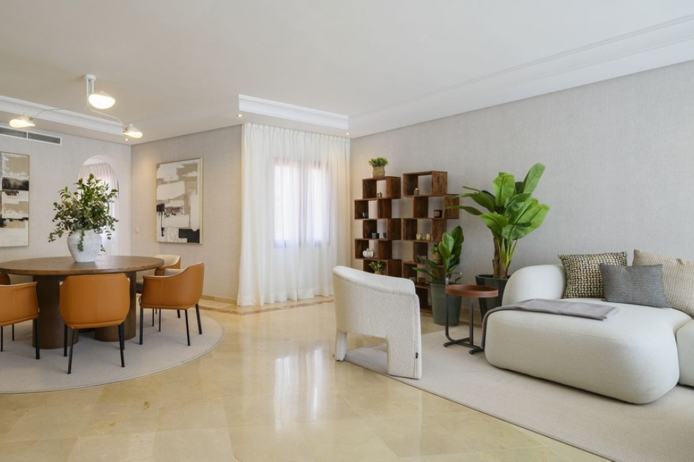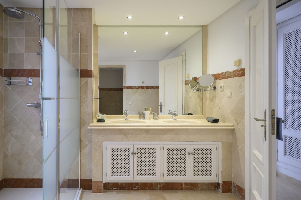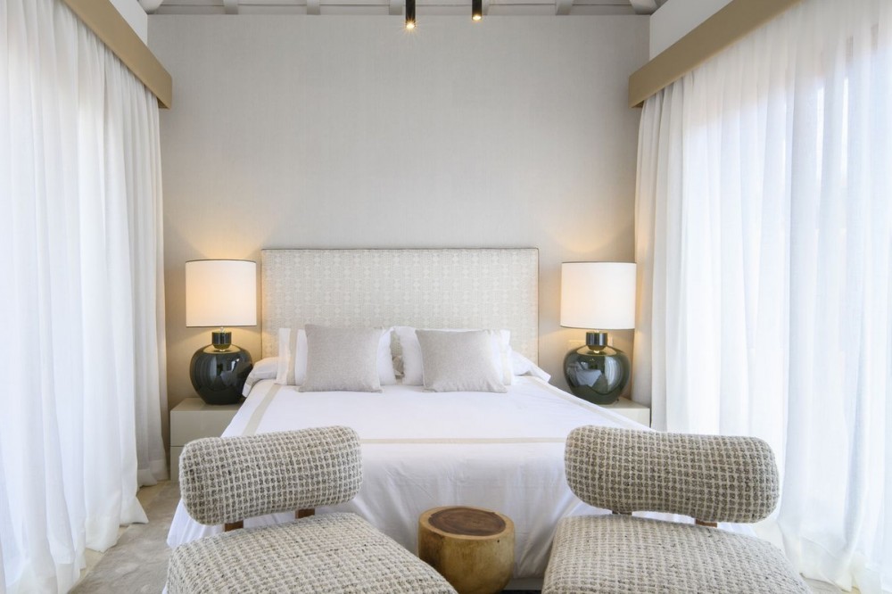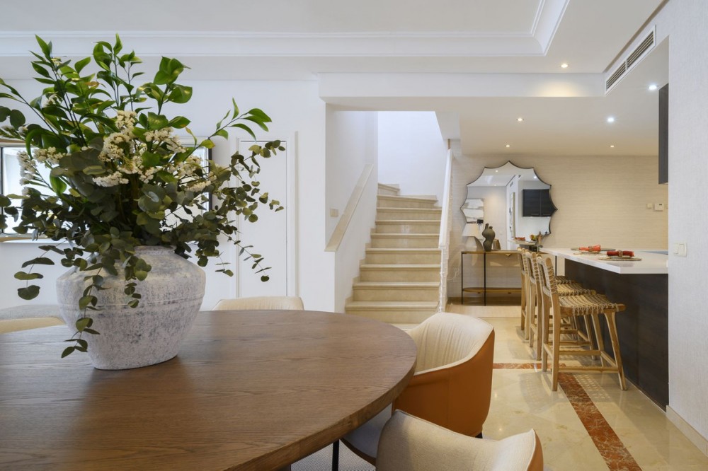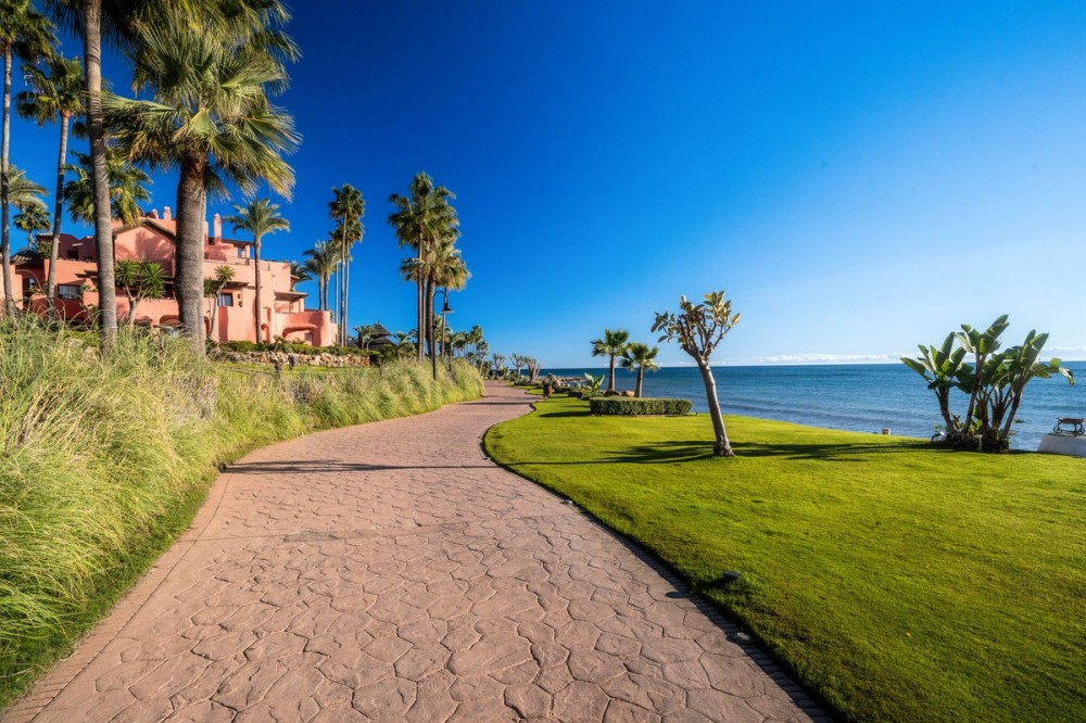 - The crown jewel of Estepona’s New Golden Mile. This exceptional 3-bedroom, 3-bathroom duplex penthouse offers breathtaking south-facing views of the Mediterranean from every level, immersing you in the beauty of beachfront living. Designed by the renowned architect Melvin Villarroel, creator of Marbella’s iconic Puente Romano Resort, this home is a masterpiece of elegance and comfort. The penthouse features underfloor heating throughout, impeccable finishes, and expansive terraces (116m²) that perfectly frame the sea views. Fully furnished and equipped, it includes a built-in BBQ, private storage, and garage. Every detail has been curated to deliver the ultimate coastal lifestyle. The complex offers more than just a home—it’s a private paradise. Exclusive to owners is a private beach zone, where tranquility and luxury combine seamlessly. The community boasts two gyms, including a cardio zone, two spas with his-and-hers saunas, and two stunning communal pools with cascading waterfalls. A coworking and dining zone on the premises adds to the convenience, while landscaped gardens, serene ponds, and direct beach access create a setting of pure relaxation on the most beautiful boardwalk in the Costa del Sol. Conveniently located within walking distance of grocery stores, restaurants, and cozy cafeterias, Cabo Bermejo ensures that all your daily needs are just a short stroll away. Surrounded by five-star amenities, including world-class dining at Tikitano by Besaya and Las Dunas, and flanked by the prestigious 5-star Ikos Andalusia and 5-star Las Dunas Spa Hotel on either side, this location offers the best of the Costa del Sol. Adjacent to a historic first-century Roman villa, the development ensures no further construction in this serene enclave. Perfectly situated, it’s just a 12-minute drive to Estepona and 15 minutes to Puerto Banús. This is more than a property; it’s a lifestyle. Don’t miss the chance to view one of Cabo Bermejo’s most exclusive penthouses.