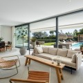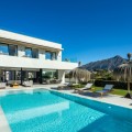 - Exquisite Modern Villa in La Cerquilla – The Epitome of Luxury Living Nestled in the prestigious residential enclave of La Cerquilla, this stunning modern villa seamlessly blends contemporary luxury with unparalleled convenience. Situated in Marbella’s coveted Golf Valley, the property offers breathtaking views of the sea and mountains while remaining just minutes from top-tier amenities, golf courses, and the vibrant Puerto Banús. Designed to maximise natural light and open-space living, the villa boasts floor-to-ceiling sliding glass doors that create a seamless connection between the indoor and outdoor areas. The open-plan layout enhances both functionality and elegance, featuring a state-of-the-art kitchen with a striking central marble island and premium integrated appliances. Tailored for year-round enjoyment, the outdoor spaces include expansive terraces perfect for alfresco dining, a private pool, and a stylish pergola. A fully equipped outdoor kitchenette with a built-in BBQ enhances the entertainment potential, making it an ideal space for hosting gatherings. The floating staircase leads to the first floor, where five luxurious bedrooms provide a haven of comfort and privacy. The master suite stands out with its generous proportions, direct terrace access, and an opulent en-suite bathroom that embodies refined living. For leisure and entertainment, the villa features an impressive lower level, complete with a custom bar, a TV lounge, and ambient lighting that transforms the atmosphere both indoors and across the covered terraces. A private driveway leads to a secure entrance and a covered carport, ensuring exclusivity and privacy. This exceptional villa presents a rare opportunity to experience contemporary elegance in one of Marbella’s most sought-after locations.