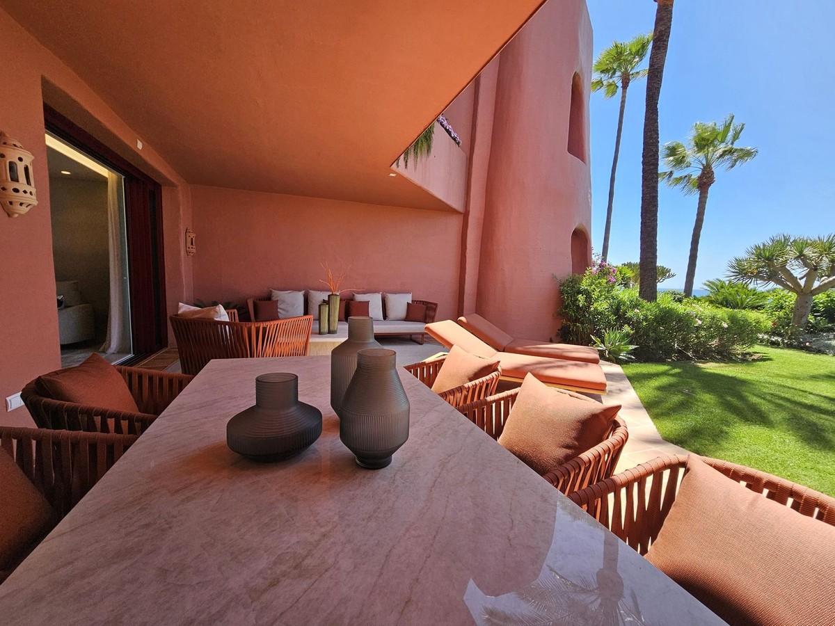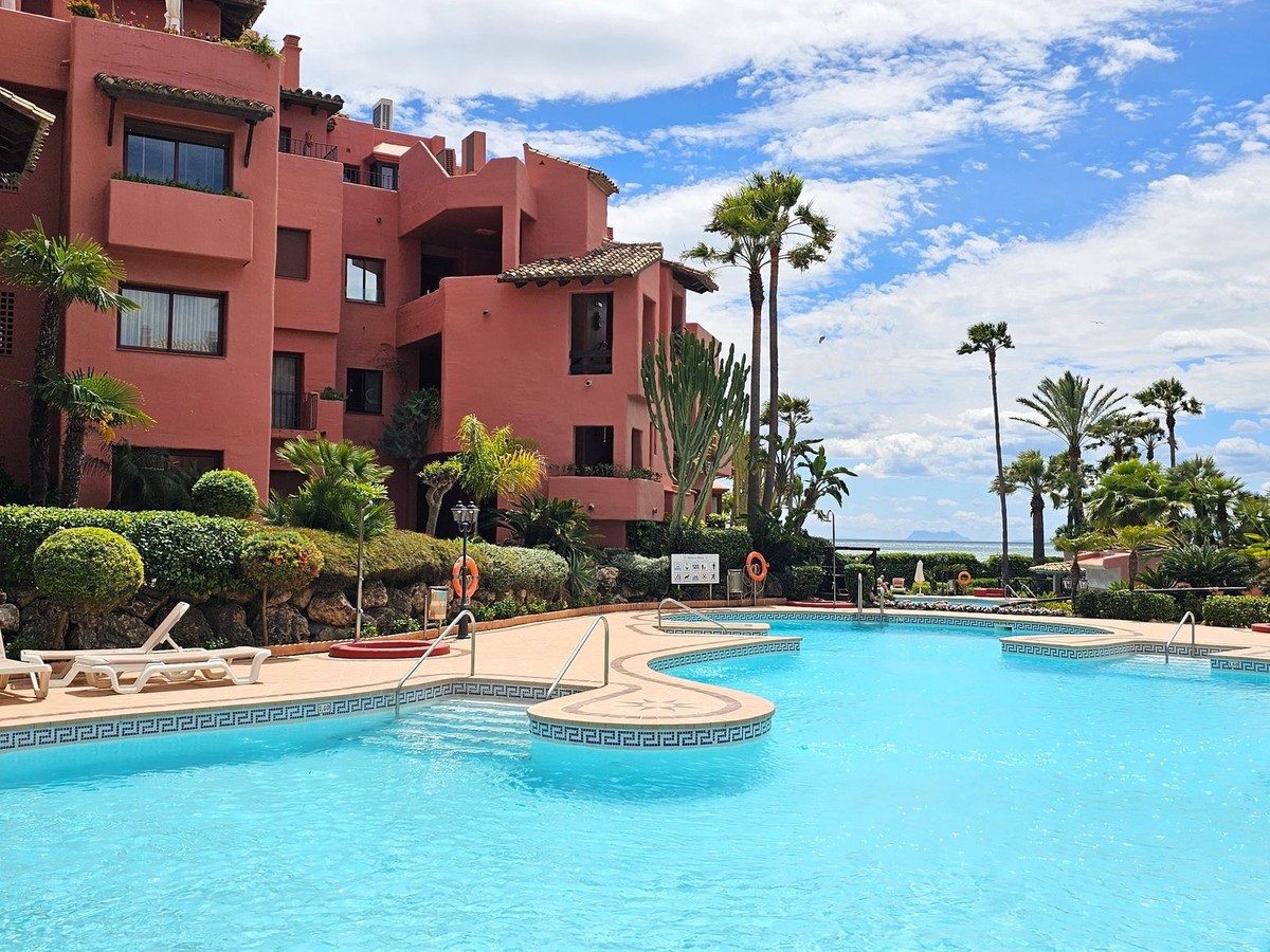 - Stylish Beachfront Living on the New Golden Mile If you are after a relaxed, high-end lifestyle by the sea, this fully renovated beachfront apartment may be just the thing. Tucked away in one of Estepona’s most desirable spots—the New Golden Mile—this place blends modern comfort with a touch of elegance, all right on the Mediterranean. Walking in, you are met with stunning sea views stretching out to the horizon. The living space opens straight onto a large private terrace, making it easy to enjoy that indoor-outdoor lifestyle, whether you're winding down or hosting friends. The sound of the waves in the background just adds to the calm. The apartment has been updated throughout with smart, top-quality features. A premium B&O sound system is built in, giving you rich sound in every corner. The kitchen is sleek and modern, with an invisible hob, wine fridge, and stylish finishes that are both practical and good-looking. There’s a cosy electric fireplace in the lounge, perfect for cooler evenings. The main bedroom includes a spacious walk-in wardrobe—ideal for keeping your clothes and accessories well organised. A hidden laundry area means everything stays tidy and clutter-free, keeping the clean lines and modern feel intact. Menara Beach is a secure, gated community with beautifully kept gardens and direct access to the beach. You’ll have use of two outdoor swimming pools surrounded by palms, plus an indoor heated pool, a gym, and a sauna. The vibe is peaceful and friendly, with a real sense of community among the residents. Whether you're looking for a full-time home by the sea, a stylish getaway, or a smart investment on the Costa del Sol, this apartment offers a standout mix of location, lifestyle, and modern design.
