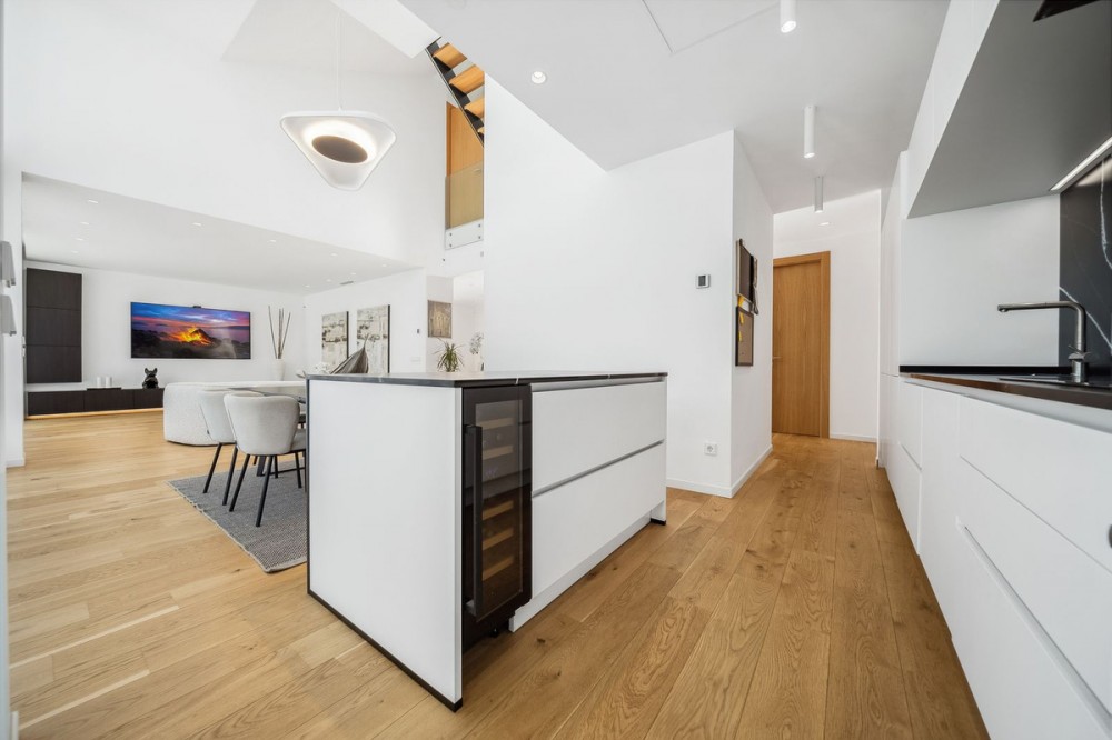 - ABOUT THE VILLA There is a modern style detached house with an excellent location for sale. The house will be completed in 2023 The property is only 350.0 m from the sea and 28 m above sea level. The house''s roof terrace offers a 180 degree free view of the sea and the surrounding mountains. The size of the property is 710,0 m2. The house is a three-storey modern style luxury villa with a 3x10m outdoor heated pool on the patio. The building has a total area of 255,8m2 covered with terraces. The floors of the building are connected by a staircase inside the building and an elevator that runs out to the roof terrace of the last floor. On the 0 floor of the building there is a 186,1m2 garage (4 cars), utility room, toilet, technical room and two additional rooms with windows. On the first floor there is an entrance hall, open kitchen-living room, ceiling height 4,6m, separate toilet, large bedroom with a wardrobe and a separate bathroom. On the first floor there is a sauna. On the second floor there are one large bedroom with a separate bathroom and 2 normal size bedrooms, 1 bathroom. The roof terrace will be equipped with a jacuzzi, shower and an outdoor kitchen. Natural oak parquet is used on the floors of the house. Residential heating is solved on the basis of air-water heat pump, heat transfer with floor collectors, in addition there is an electric floor heating in damp rooms. Each living space also has an autonomous air conditioner. The building is equipped with forced ventilation and a central vacuum cleaner. The building has an alarm system and IT and TV readiness. German ALNO kitchen and Bosch kitchen appliances. The building will be completed in 2023 350 meters to the beach 28 meters above sea level 10 min drive to Marbella 35 min drive to Malaga Airport 180 degrees views from roof terrace