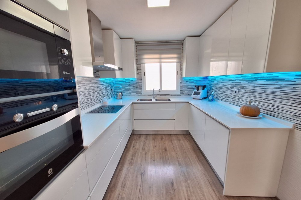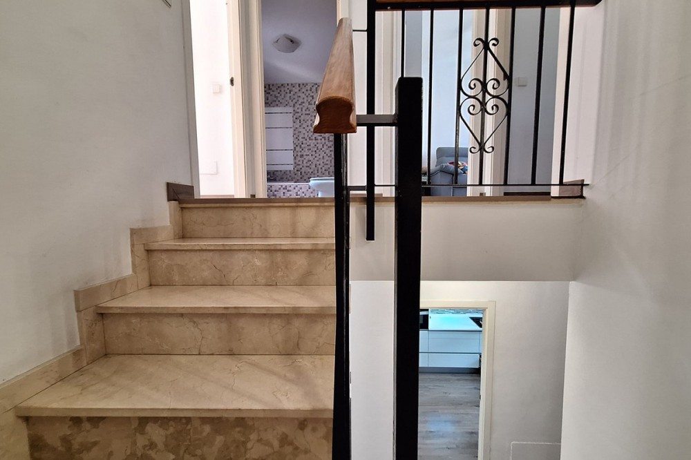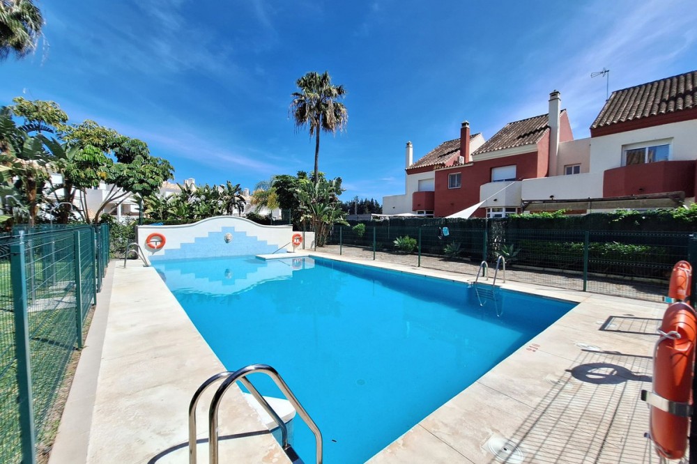 - SELWO, ESTEPONA This 3 bedroom, 2 bathroom renovated family home, is set within a residential area within a few minutes drive of the beach, supermarkets, transports banks, chemist etc. On the doorstep of the American International School. Within a few minutes walk you also have a brand new leisure centre with outdoor paddle Courts, gymnasium etc. Also a local café & restaurant within 2 mins walk. In front of the property you have the option for driveway parking for 2 cars, together with underground garage (electric gates) for a further 2 cars. Plenty of storage also, and a separate area for the utility room, housing washing machine, dryer etc. A very large versatile space. As you enter the main living space you have on your left a shower room with toilet and window. And on your right you have a modern, fully equipped LG kitchen with LED lighting. Ample storage space, with laminate wood flooring, totally reformed. Also on this level you have stairs descending to the garage and utility room. The living area offers a comfortable place to relax, with a sperate dining area. Lots of natural light from its south facing aspect, ensures sun all day! From here you lead out on to the private terrace, with lots of space to entertain in. There is direct access on to the communal pool, making it safe and secure for children and residents. On the top floor you have 3 bedrooms, the master suite has access to x 2 terraces (south facing and views over the pool), also manual window shutters. The second bedroom has a Juliette balcony terrace. All 3 bedrooms are modern in design. A further family modern bathroom with bath and shower on this level. IMPORTANT FEATURES: The property can be extended into the solarium area, by building internal staircase enabling you to construct a further bedroom, bathroom with use of the private terrace.) FURNITURE OPTIONAL & THE IBI INCLUDES THE RUBBISH CHARGES (BASURA) VIDEO AVAILABLE ON REQUEST
